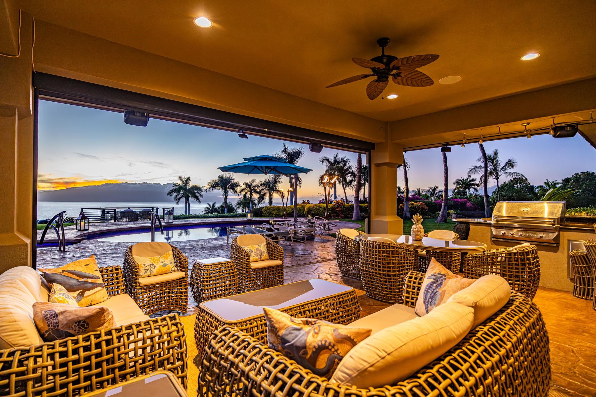 Located in the Kapalua Resort, Mahana Estates is a gated community sitting between the Ritz Carlton and the world-famous PGA Plantation Golf Course. Set across 1.4 acres with sweeping ocean and Molokai views, 710 Mahana Ridge is a bespoke luxury residence defined by exceptional craftsmanship and refined materials throughout. Designed by an award-winning Hawaiian firm whose work has been featured on HGTV, the home pairs architectural distinction with elevated amenities, offering a private, artfully composed living experience. Million-dollar views abound from the property, with the majestic Pacific, Dragon's Pointe, and the emerald green mountains of Moloka'i laid out before you. Kapalua embodies the Maui resort lifestyle. Residents benefit from an easement that allows them to cut through the Ritz Carlton to access Fleming Beach and the golf course. The Plantation Golf Course becomes the focus of the golf world each year when it hosts the annual kick-off to the PGA Tour, the Sentry Tournament of Champions. Residents can literally drive golf carts into town or down for a massage at the Montage Spa – considered the best spa on the island by many on Maui. You can also purchase a membership at the Kapalua Club and enjoy benefits that include access to the Spa Montage, Beach Club, advanced tee times at two championship golf courses and more! Set back behind a gated entrance, the 4,103 sq. ft. 5 bedroom and 6 bathroom home is designed for comfort and livability. Each bedroom has an en-suite bath, and three have outdoor showers. The two Primary Bedrooms feature spacious covered lanais, opulent indoor bathrooms, outdoor showers, luxurious soaking tubs with ocean views, and massive walk-in closets. All bathrooms have custom cabinets designed to complement the home's clean, contemporary aesthetic and feature luxury-grade Kohler plumbing fixtures. The home's elegant design ethos begins with the impressive, covered entry that leads to a massive Great Room, where Western Window Systems aluminum folding-pocket doors open onto a huge, covered lanai. Luxurious Hackwood flooring runs throughout the entire home. In the kitchen, luxury-stone countertops and custom Italian cabinetry by Cucine LUBE feature neutral tones, creating an elegant and functional space. Miele appliances allow for the ultimate food-prep experience, and a butler pantry is strategically positioned for easy access. Outside, steps lead into an incredible pool with spa tub and in-pool Baja Shelf seating, all of which is ideally positioned to take in the captivating views of Molokai. The pool features a cool swim-through channel flanked by fire bowls that leads to the swim-up bar attached to the adjacent covered BBQ pavilion. A fabulous firepit is located on the other side of the pool. The pool system is all top-quality Jandy pool equipment. The quality of the finishes is superb, with a mortarless Blue Rock Veneer Finish used on the pool retaining wall, a pocketing door system with insulated glazing, and custom hardwood garage doors. The entire home uses Lutron Light Switches for home automation, allowing lighting control via the user-friendly system app. The grounds are thoughtfully landscaped to reflect the home’s refined interior, offering an elevated tropical atmosphere with a distinctly Hawaiian feel. Other standout features of 710 Mahana Ridge include quad washers and dryers, and a large 3-car garage with a storage area. With 710 Mahana Ridge, you have an exquisite, brand-new luxury home on Maui without waiting years to build. Just slip into your turnkey Maui resort lifestyle!