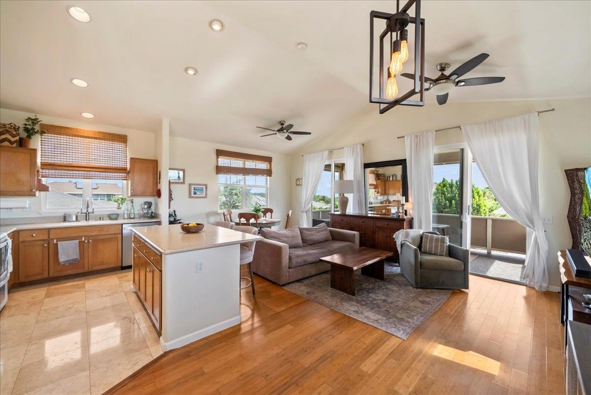 Welcome to 223 Lau Oliwa Loop, Unit 38, a beautifully upgraded home in the Kehalani Master Plan community where comfort, efficiency, and an authentic Maui lifestyle come together. Thoughtfully improved from top to bottom, this residence offers the kind of everyday ease and peaceful living environment that buyers seek in Central Maui’s most loved neighborhoods. Inside, the home feels warm, fresh, and inviting. Updated two-tone and accent wall designs add depth and character throughout, while new LED lighting brightens each room with a clean, modern feel. New switches, receptacles, and ceiling fans in all bedrooms and the living room elevate comfort and convenience. The primary and secondary bathrooms were updated in 2025 with new vanities, and every bathroom features new lighting, mirrors, and toilets. The kitchen features a new sink, refrigerator, stove, and Bosch dishwasher, creating a bright, functional space perfect for relaxed mornings, meal prep, or hosting friends. The home is designed for low-maintenance living with meaningful upgrades that support long-term value. Four air handlers service the AC system, ensuring consistent comfort throughout. Energy efficiency is a standout benefit thanks to the SunRun photovoltaic system with Tesla batteries installed in 2024, along with a new water heater. New flooring and upgraded closets in the bedrooms and stairwell, along with a custom closet system in the primary suite, create clean, well-organized living spaces. The garage includes new shelving and a work bench, and the mini fridge, mini freezer, and lawn mower convey. The outdoor living environment truly embodies Maui’s indoor-outdoor lifestyle. A large 510-square-foot lanai becomes an extension of the home, perfect for morning coffee, evening gatherings, or simply relaxing with mountain views. The 12 by 20 foot gazebo, paired with a 24 by 5 foot roof extension, adds approximately 360 square feet of covered outdoor space ideal for dinner parties, weekend barbecues, or quiet afternoons with a book. Drop-down blinds provide shade and comfort, and the fully fenced yard allows pets and children to play freely. Fresh landscaping installed in 2024, lush plantings, new stepping stones, and a 5-by-7-foot shed complete the space. The owners have cherished the lifestyle this location provides. Short walks or quick drives lead to grocery stores, medical facilities, schools, and Wailuku town. The neighborhood offers scenic walking paths by day and by night, where you can enjoy the cool breezes and changing light across the mountains. One block away, the 13-acre pet-friendly Kehalani Mauka Park is a favorite spot for morning strolls, picnics, and playtime with pets. Natural light fills the home throughout the day, and the views of the East and West Maui Mountains bring sunrise colors, glowing sunsets, and a sense of connection to the island’s beauty. Weekends can take you from a freshwater swim in Iao Valley to a sandy beach in roughly fifteen minutes.
