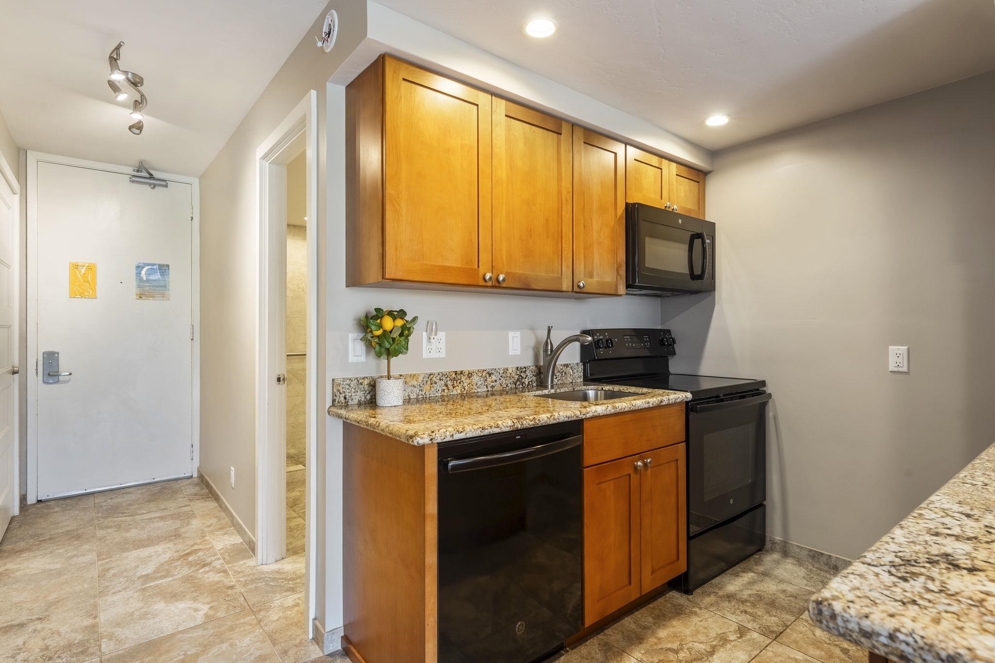 Lahaina Shores has officially re-opened!!! This is a unique opportunity to own an extremely rare hotel/resort-zoned, beachfront condo in Lahaina Town. Unit 332 features gorgeous mountain views and recently underwent an extensive interior remodel. A new refrigerator has been delivered, and a new AC fan coil unit has been installed. Existing furnishings are included. Lahaina Shores’ common areas have also received a major refresh, including fully remodeled hallways, a new parking lot, and updated landscaping. Witness the rebirth of Lahaina for yourself from your lanai—and be a part of the beloved town’s future.