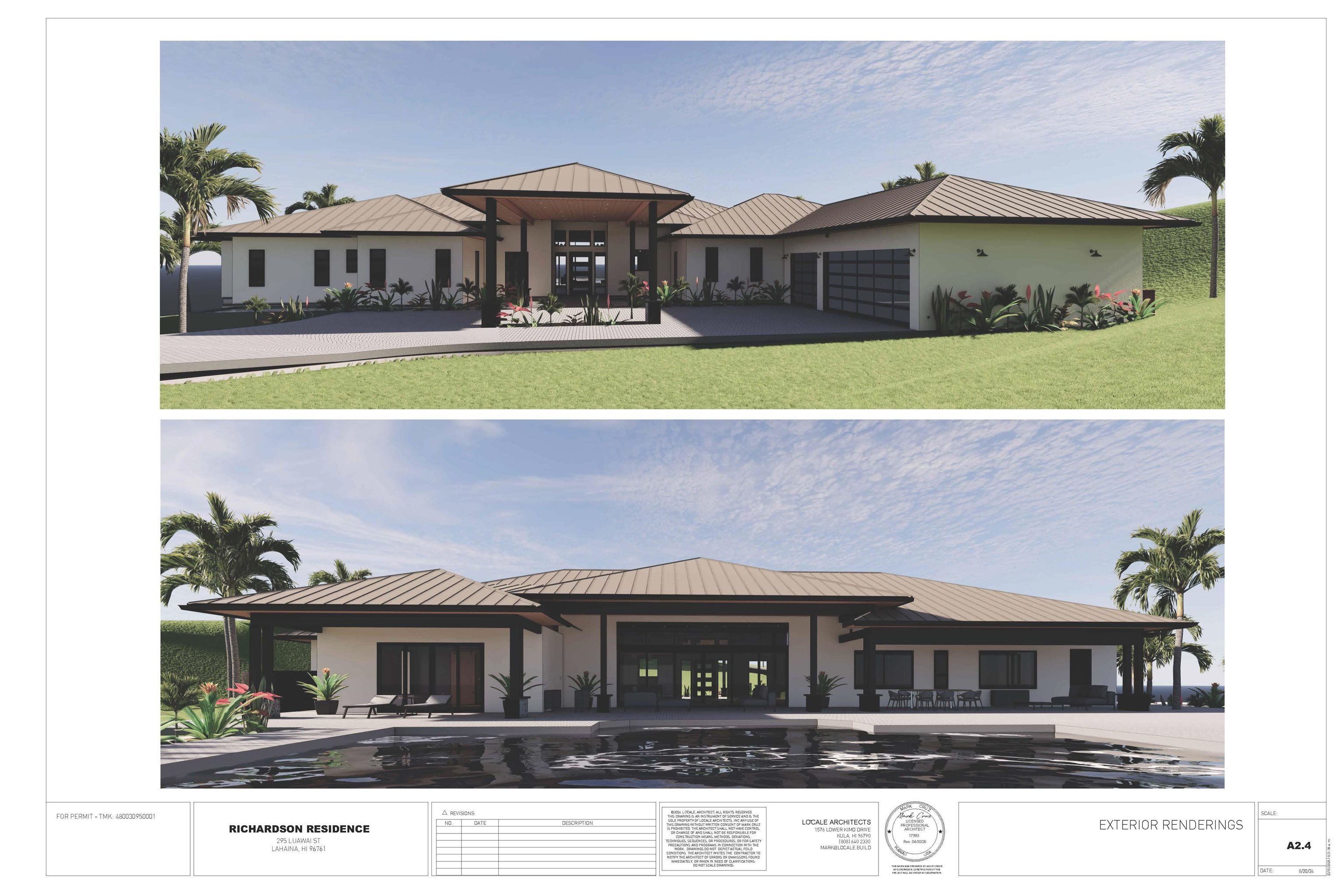 Build your dream estate on Maui's exclusive gated enclave of Olowalu Mauka. This premiere 2.5+ acre CPR Unit A is designated for a Main House and Barn, offering a rare opportunity to create a legacy property with breathtaking tri-island views of Lanai, Molokai, and Kahoolawe. Perched on a bluff overlooking crystal-clear blue waters, the property comes fully prepared and ready to build. Included in the sale is a complete set of architectural plans for a stunning 3,143 sq ft, five-bedroom home with an infinity pool, all ready to submit for permitting—saving you time and fast-tracking your new home. The building site is already developed and cleared, ideal for someone looking to move quickly on construction without the delays of planning and design. Located in a boutique 14-lot subdivision, Olowalu Mauka features underground utilities and both potable and non-potable water meters via Olowalu Water Co. Just minutes from Lahaina Town and a short drive to Central and South Maui, you’re also near pristine beaches, a charming open-air farmers market, convenience store, and the beloved Leoda’s Kitchen and Pie Shop. Olowalu is historically known as a sanctuary of harmony, balance, and peace—a fitting backdrop for your future dream home. Some photos shown are renderings based on the included architectural plans for this residential condo estate.