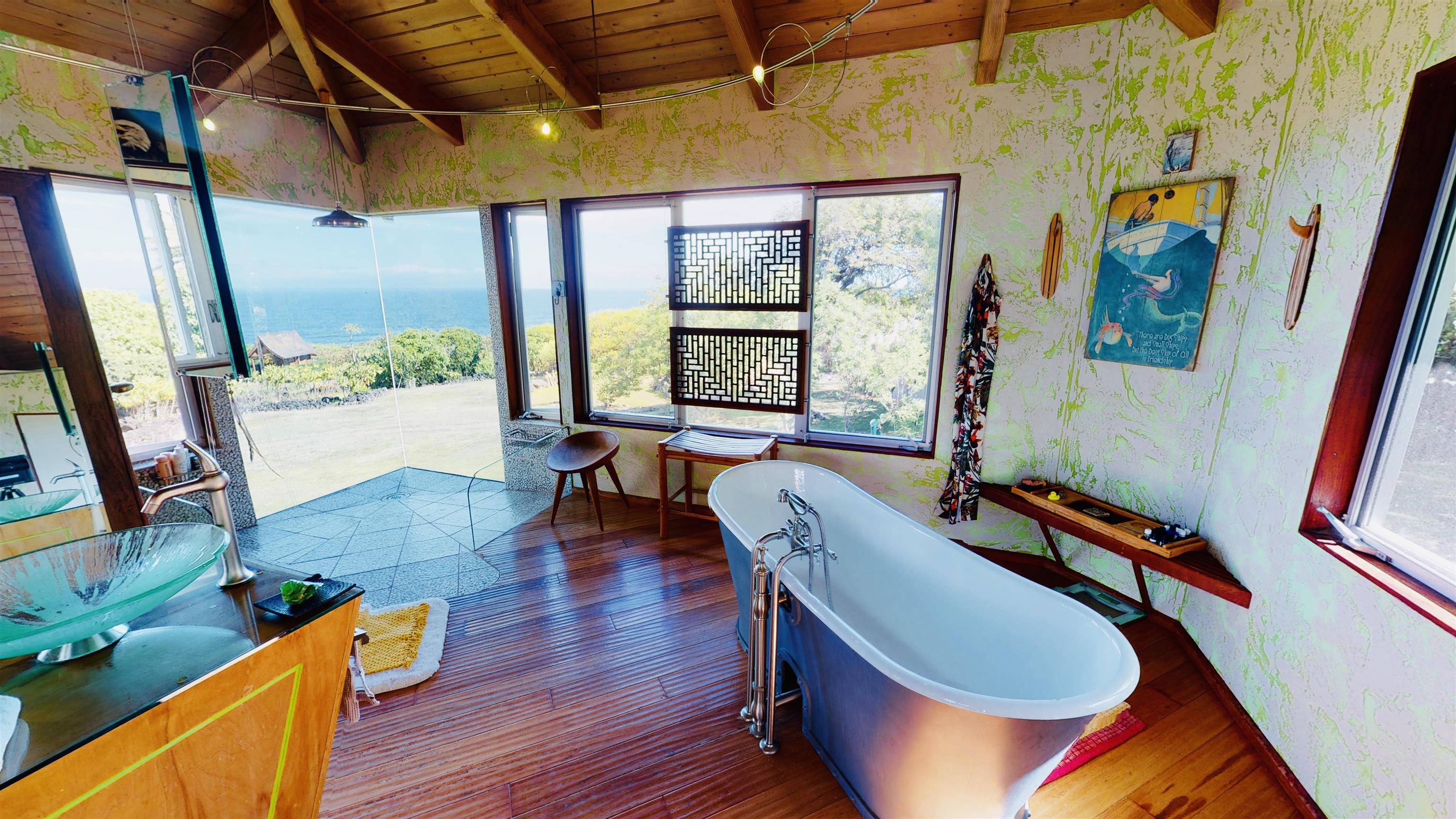 Paradise Found “Waterfall, Freshwater Stream, Rainbows and Gorgeous Ocean Views, and walk to the shoreline”… Experience the abundance of these visual delights from the privacy of your extra large lanai. Full moon rising, endless stargazing, and unobstructed Big Island Views, just to name a few aspects of this serene and blessed estate known as, Pu’uhonua”, Place of Refuge. This 1,520 sq ft home with an expansive covered and uncovered lanai, being thoughtfully designed to connect indoor and outdoor, which creates a seamless flow of natural environment living. Having been cared for with loved holistic bio-dynamic land cultivation methods and practices. This Estate features a spacious and manageable 1.72 acres. Whether your intention is to install a helipad, or to grow additional food, the opportunities are almost endless. A peaceful Life away from the busy world. Operating completely off grid and self-sustaining with an Owned Photovoltaic Electrical system, 6KW 240VAC, Single Phase. Sixty five solar panels and new gel, no maintenance, batteries installed April 2025 by Ray Meyers, Solar. When needed, switch on Star-link, which is currently used for seamless internet connection, or connect to underground phone hard-line, at the top of the property. 200 sf foot Bali Hale to host visiting family and friends. 20K Gallon water catchment tank for fire protection standpipes, with pumps, and a high quality drinking water filtration-purification system. 200 sf storage/office with Photovoltaic building, and much much more... Views - Massive Ocean, Haleakala, Big Island and it's amazing volcano views, and whales gathering. Ocean and mountain views (Haleakala and Big Island). Hear the whales calling as they gather at the mouth of the Manawainui Stream as it enters the Pacific Ocean. Great Kaupo Community, wonderful feeling of neighborliness and support. Such a rare offering in a peaceful environment, and an amazing place to call home. Call your favorite Realtor!