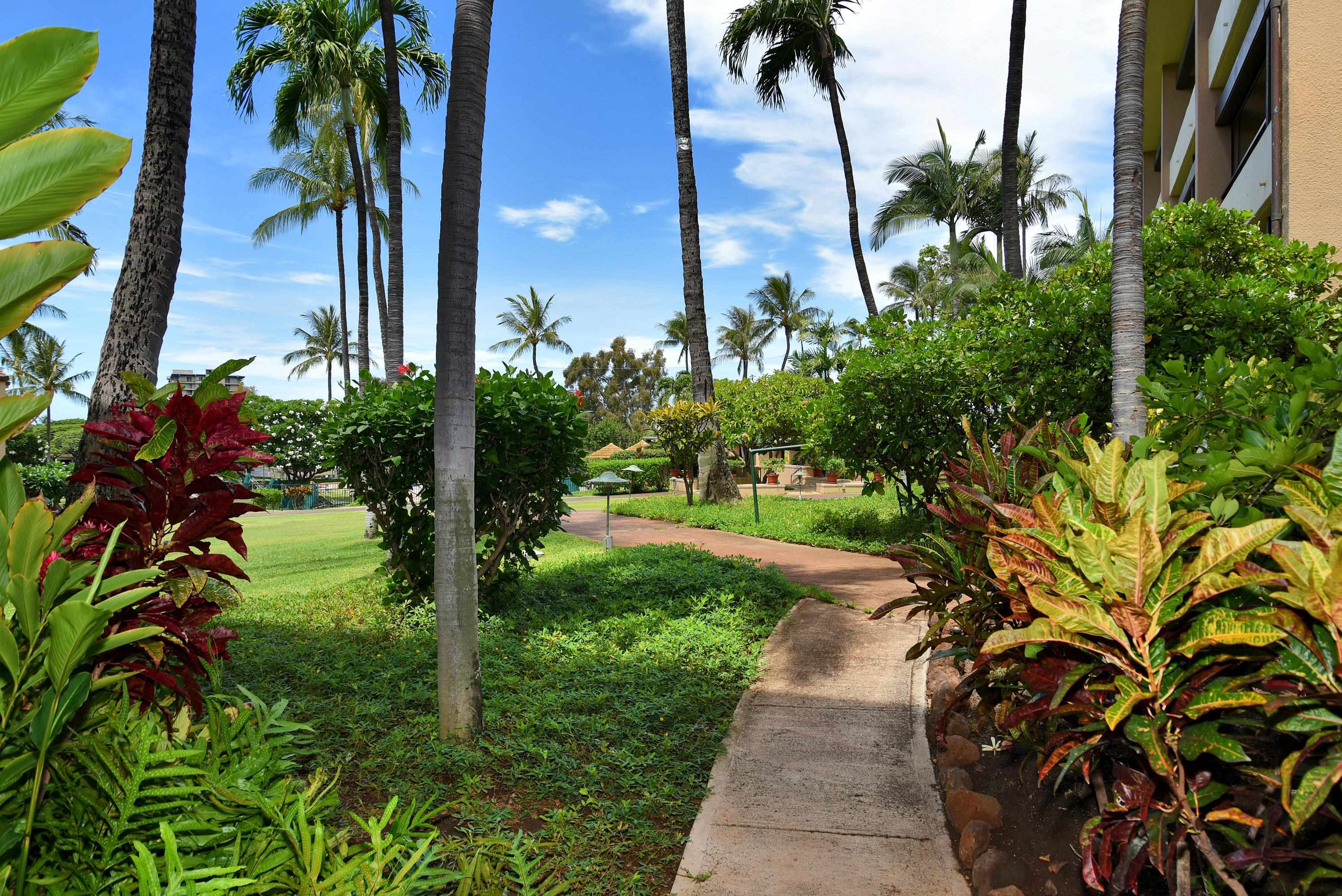 Price to Sell!! Welcome to Kaanapali Royal…your opportunity to live inside the world-renowned Kaanapali Resort, right on the edge of the 17th hole of the Royal Kaanapali Golf Course. This fabulous ground-floor 2-bedroom 2-bath condo offers 1,580sqft of open-concept living that flows seamlessly from indoors to outdoors. Step directly from your spacious lanai onto a large grassy area that feels like your own private backyard, leading to tropical palapas, BBQ areas, and the heated pool and spa—perfect for watching Maui’s magnificent sunsets. The property also features a full-size pickleball and tennis court complex with restrooms for added convenience. Inside, the condo is tastefully furnished in a relaxed tropical style, complete with a fully appointed kitchen with granite counters, a full-size washer and dryer. The floor plan even includes a cozy nook affectionately called the “kids cove”—a favorite spot for little ones to snuggle in after island adventures. Every detail embraces the natural beauty of Maui, from double rainbows arching over the golf course, to seasonal whale breaches just offshore, to snorkeling with green sea turtles at world-famous Kaanapali Beach—all just a stroll away. Whaler’s Village, with its shopping and world-class dining, and the Kaanapali Golf Clubhouse are also within easy reach. Kaanapali Royal is a gated community, beautifully landscaped and wonderfully quiet year-around, with a welcoming front desk to assist owners and guests. Whether you are seeking a primary residence, a second home, or a vacation retreat, this condo offers the perfect balance of resort living and everyday comfort. Currently part of a top-performing vacation rental program, it is being sold turnkey. The property is zoned Apartment (A-2) within the H-1 district and is currently permitted as a transient vacation rental under the Maui County Code. Kaanapali Royal is included on the Minatoya List. The Seller will be doing a 1031 exchange, so the property is contingent on seller finding and closing on a suitable replacement property. This is your piece of Paradise. Don’t miss the chance to make it yours—call your favorite realtor today!