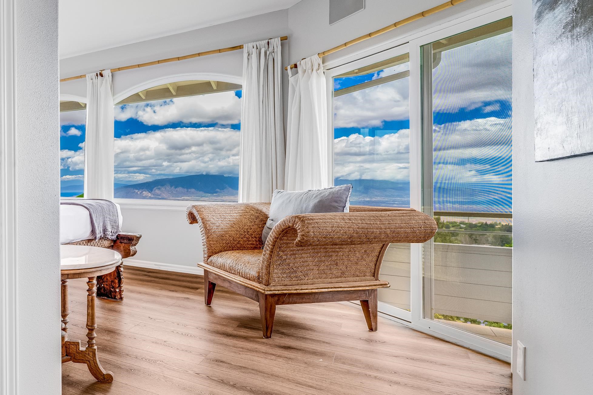 Upcountry Maui Living at Its Finest. Perched in the heart of Kula, this Upcountry home captures Maui’s most breathtaking vistas—spanning bicoastal ocean, sunsets between multiple islands, and the majestic West Maui Mountains. The upper level welcomes you with an open-concept design where the kitchen, dining, primary bedroom and living areas flow as a single level home. A cozy fireplace and expansive picture windows frame the island’s beauty, creating the perfect setting to gather. Downstairs, three spacious bedrooms enjoy equally stunning views, offering plenty of room for family, guests, or creative spaces. Both floors open to lanais with brand-new railings—perfect spots to take in the landscaped grounds, flourishing fruit trees, and ever-changing skies. Here, mornings begin with birdsongs, days are filled with sunshine and cool Upcountry breezes, and evenings bring unforgettable sunsets over the coastline. The photovoltaic system is connected through net metering, which significantly reduces electricity expenses and enables efficient, worry-free use of the air conditioning. This is more than a home—it’s a tranquil retreat where the very best of Maui’s climate and natural beauty converge.