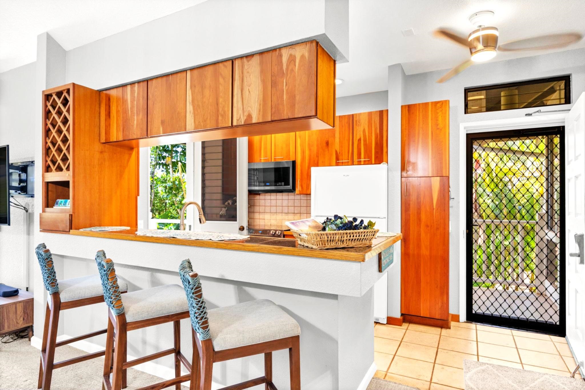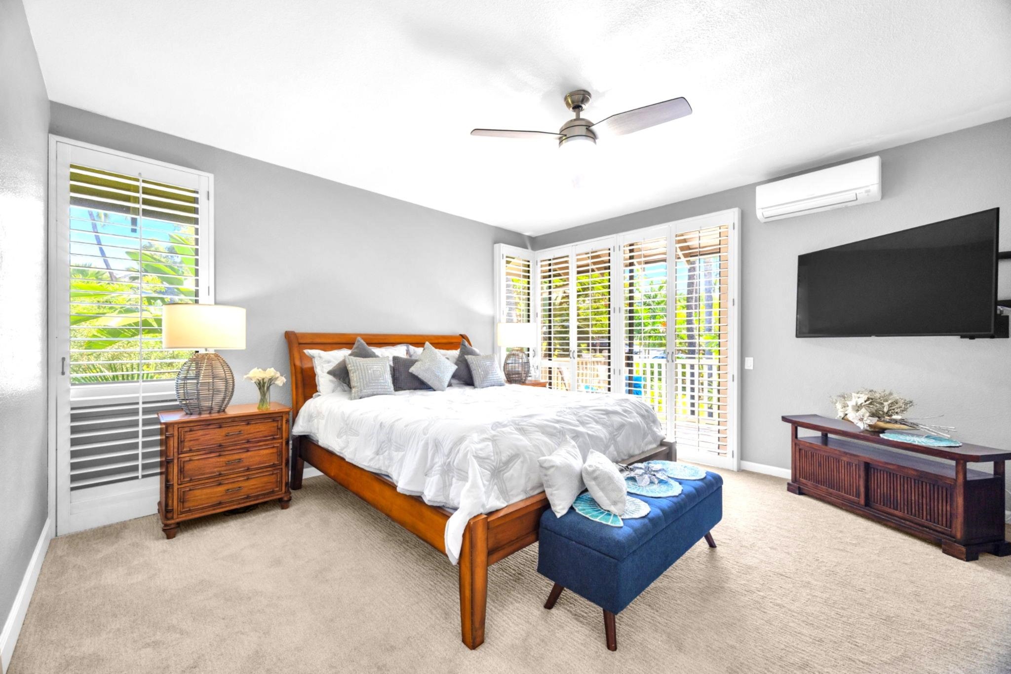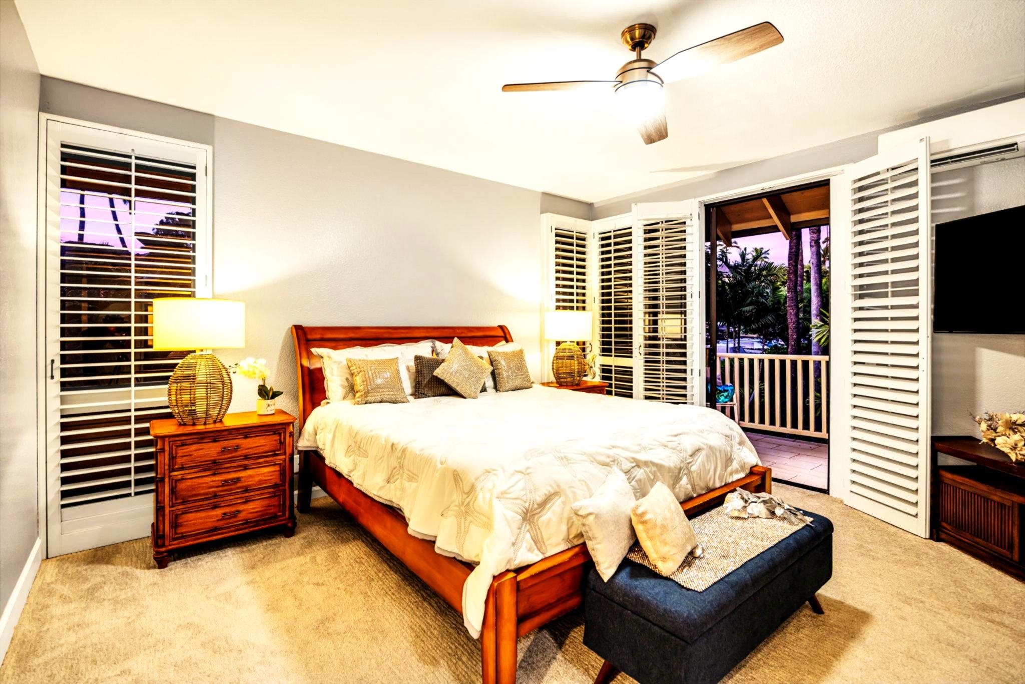 Rarely available and exquisitely appointed offering of a spacious 3-bedroom home, or home away from home, nestled in the heart of Wailea’s world-renowned resort community. Enjoy island luxury at Grand Champions, Wailea, a sanctuary situated in the heart of Wailea. Pleasantly and privately located, this beautifully appointed home flows with light, and blends luxury, privacy, and convenience with tropical charm and ambiance. Soaring ceilings and an expansive open-concept layout complement the beautifully upgraded interiors, featuring elegant designer furnishings throughout, and fine finishes that echo the gentle elegance of lush surroundings.. Walls of glass slide open, gentle tropical breezes delicately caress, and manicured vistas whisper serenity. The kitchen is a true showpiece, featuring rich, tropical hardwood custom cabinetry, paired with granite countertops and sleek black appliances, opening seamlessly to the vaulted-ceiling great room and spacious dining area. The expansive primary suite features its own private lanai, a spa-like en-suite bath, and an impressively large designer walk-in closet with custom built-ins. The two additional bedrooms are perfectly positioned within the home and are served by a newly remodeled, high-style bathroom, offering space and tranquility for guests or loved ones. Awaken to brilliant-hued sunrises of Haleakala, and unwind each evening on multiple lanais aglow with magentas and the golden light of sunset as the day draws to a close. Beautiful luxury vinyl flooring, tasteful designer furnishings, split A/C, and an in-unit washer/dryer complete this turnkey offering. As island ambiance carries you through each room, imagine a lifestyle where artistry meets ease — your private retreat in one of Maui’s most prestigious resorts. Whether entertaining in style, creating magical memories, or simply savoring joy-filled moments, this home offers a rare harmony of comfort, space, sophistication, and Aloha. Grand Champions 134 offers a turnkey lifestyle of comfort and class—complete with access to two resort pools, hot tubs, and barbecue areas. Moments from Wailea’s world-class Golf, golden sandy beaches, Surfing, shopping and fine dining. Experience quiet elegance and effortless luxury—wrapped in the spirit of Aloha. Experience the refined warmth of Wailea living at its finest. The buyer(s) are aware that this condominium complex is in A1 or A2 zoning which may be affected by Maui County's future ordinance to discontinue the allowance of short term rentals. Buyer(s) should do their own due diligence on the future use of this property, Buyer(s) understand that there is no guarantee of future rental income. A short term rental is defined as a domicile rented out for less than180 days.