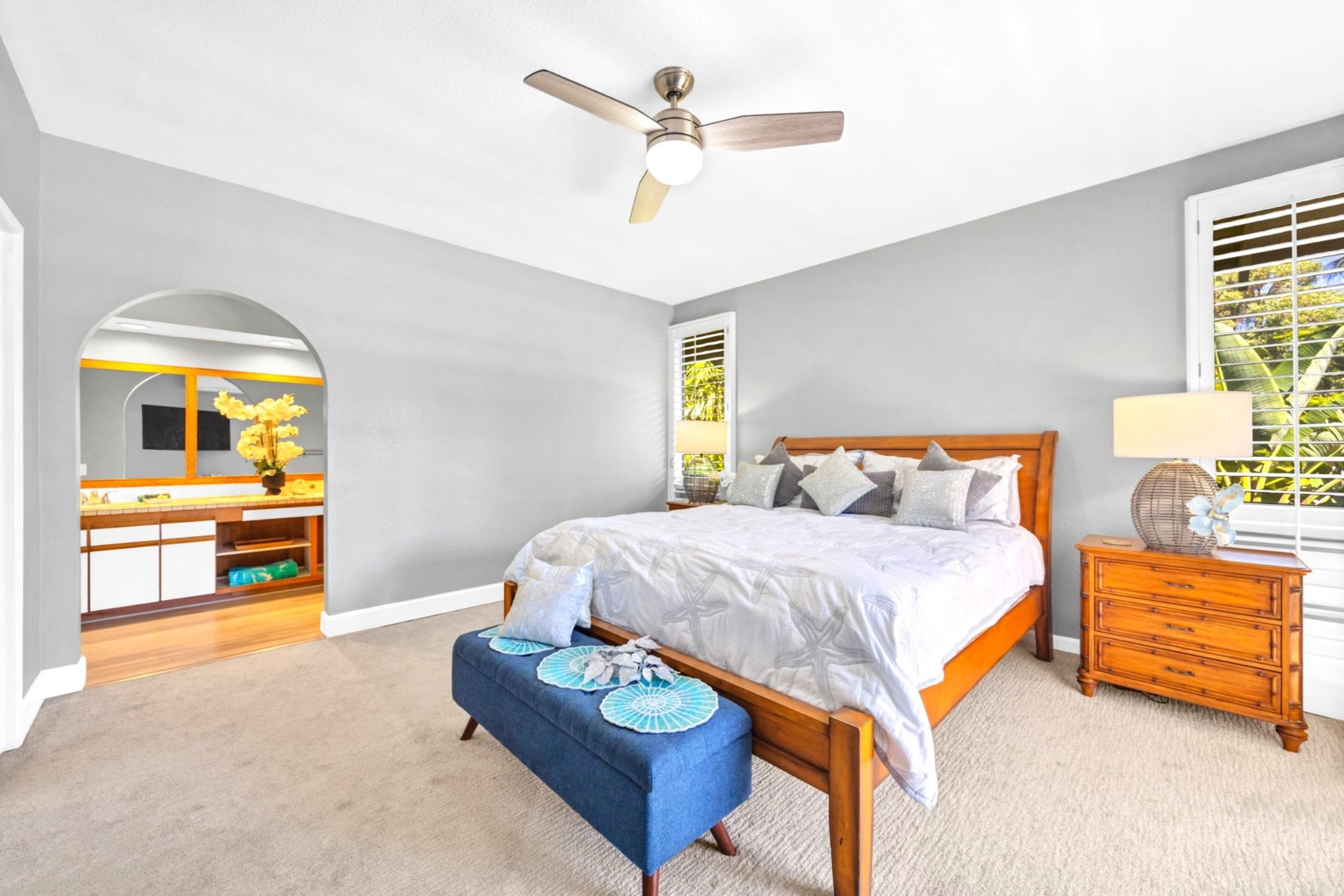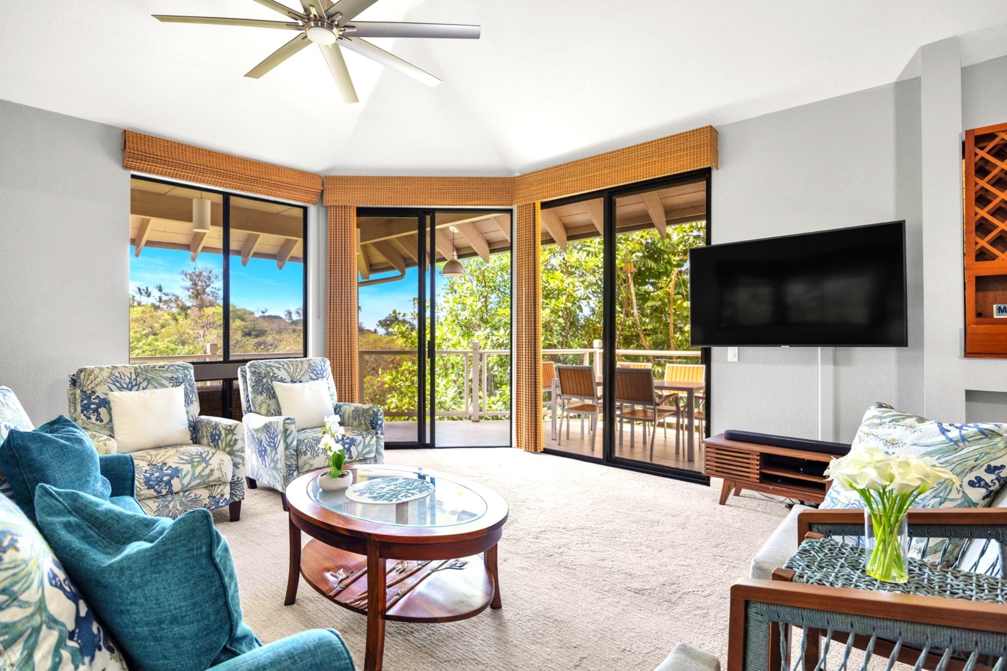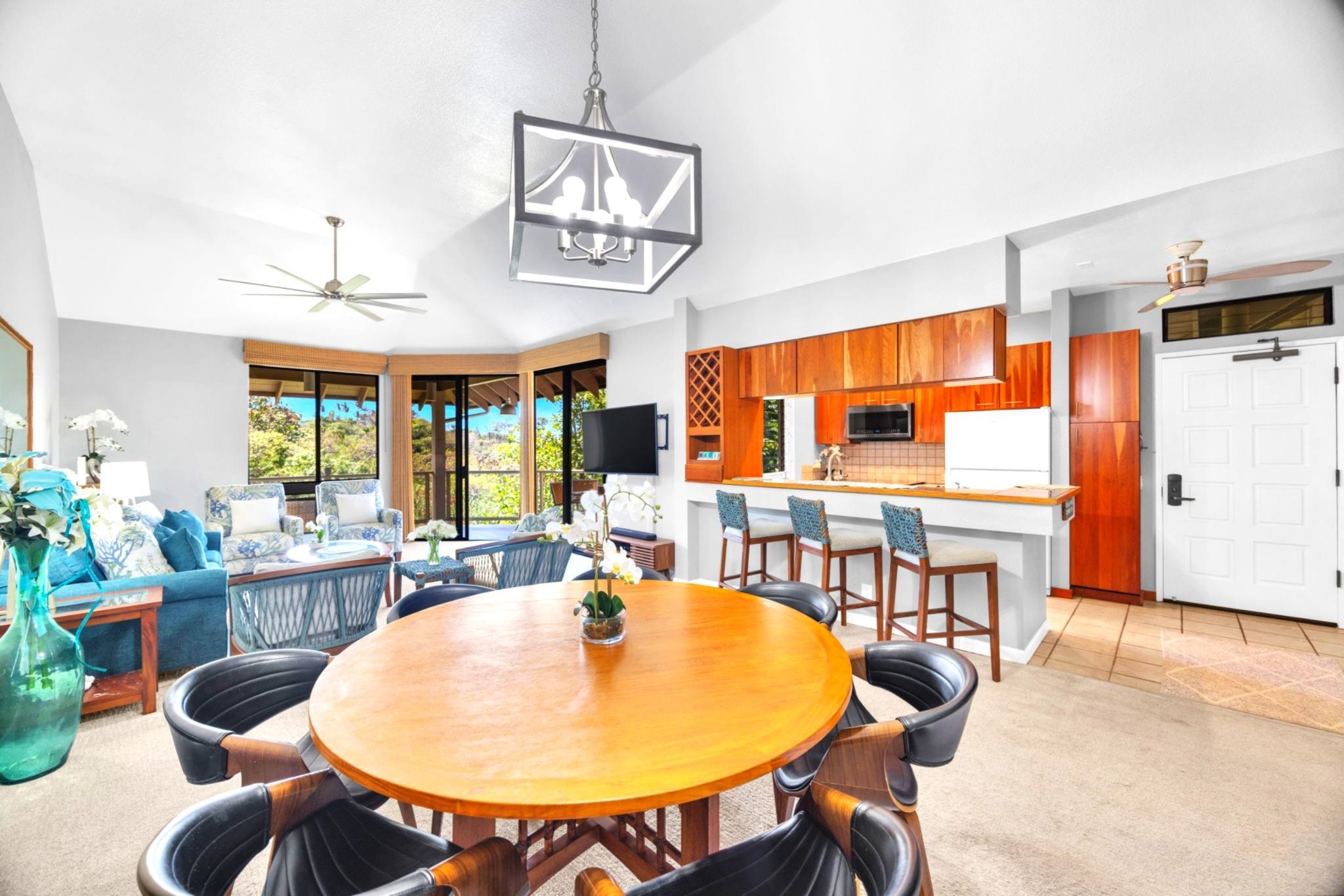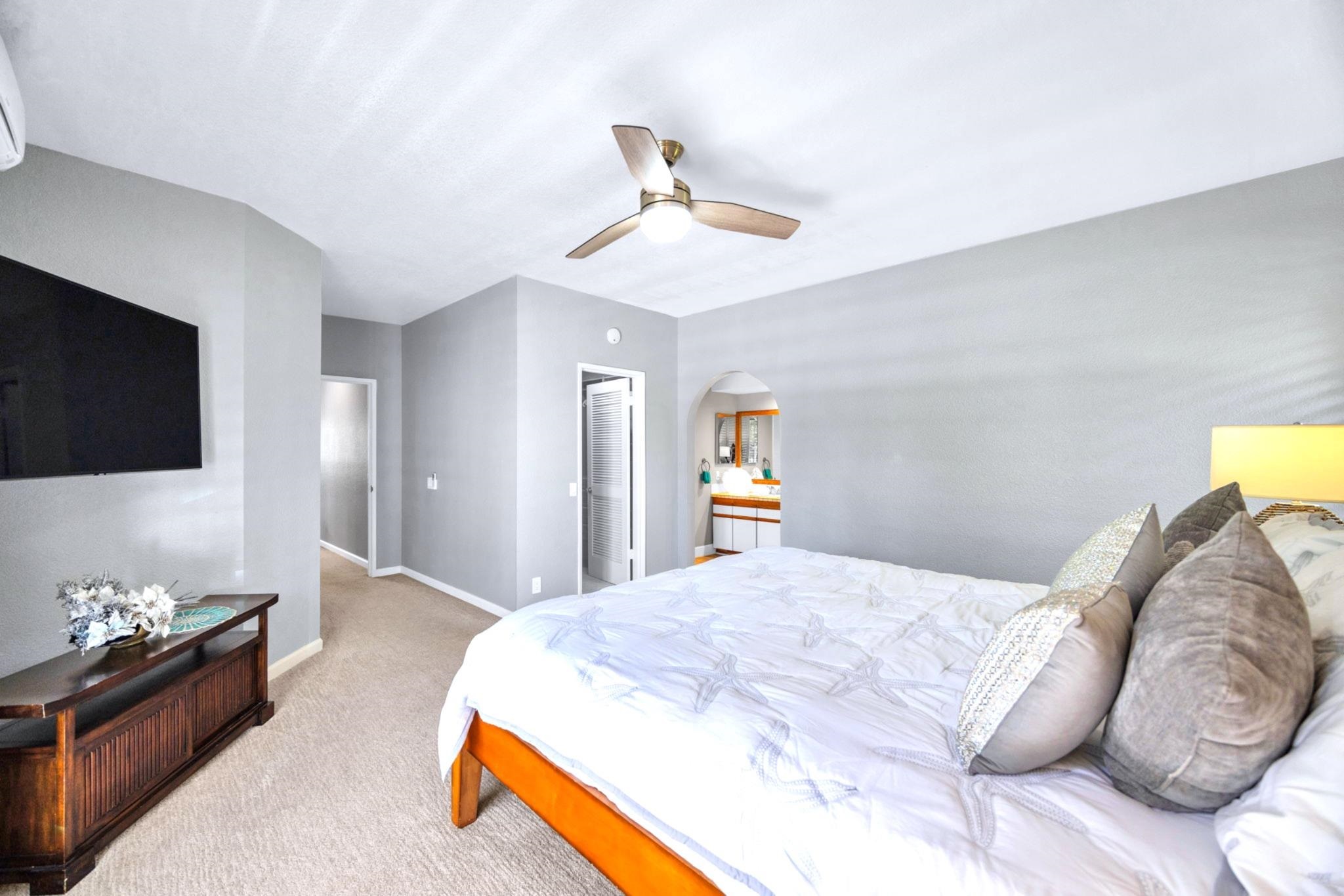 Rarely available and exquisitely appointed offering of a spacious 3-bedroom home, or home away from home, nestled in the heart of Wailea’s world-renowned resort community. Enjoy island luxury at Grand Champions, Wailea, a sanctuary situated in the heart of Wailea. Pleasantly and privately located, this beautifully appointed home flows with light, and blends luxury, privacy, and convenience with tropical charm and ambiance. Soaring ceilings and an expansive open-concept layout complement the beautifully upgraded interiors, featuring elegant designer furnishings throughout, and fine finishes that echo the gentle elegance of lush surroundings.. Walls of glass slide open, gentle tropical breezes delicately caress, and manicured vistas whisper serenity. The kitchen is a true showpiece, featuring rich, tropical hardwood custom cabinetry, paired with granite countertops and sleek black appliances, opening seamlessly to the vaulted-ceiling great room and spacious dining area. The expansive primary suite features its own private lanai, a spa-like en-suite bath, and an impressively large designer walk-in closet with custom built-ins. The two additional bedrooms are perfectly positioned within the home and are served by a newly remodeled, high-style bathroom, offering space and tranquility for guests or loved ones. Awaken to brilliant-hued sunrises of Haleakala, and unwind each evening on multiple lanais aglow with magentas and the golden light of sunset as the day draws to a close. Beautiful luxury vinyl flooring, tasteful designer furnishings, split A/C, and an in-unit washer/dryer complete this turnkey offering. As island ambiance carries you through each room, imagine a lifestyle where artistry meets ease — your private retreat in one of Maui’s most prestigious resorts. Whether entertaining in style, creating magical memories, or simply savoring joy-filled moments, this home offers a rare harmony of comfort, space, sophistication, and Aloha. Grand Champions 134 offers a turnkey lifestyle of comfort and class—complete with access to two resort pools, hot tubs, and barbecue areas. Moments from Wailea’s world-class Golf, golden sandy beaches, Surfing, shopping and fine dining. Experience quiet elegance and effortless luxury—wrapped in the spirit of Aloha. Experience the refined warmth of Wailea living at its finest. The buyer(s) are aware that this condominium complex is in A1 or A2 zoning which may be affected by Maui County's future ordinance to discontinue the allowance of short term rentals. Buyer(s) should do their own due diligence on the future use of this property, Buyer(s) understand that there is no guarantee of future rental income. A short term rental is defined as a domicile rented out for less than180 days.