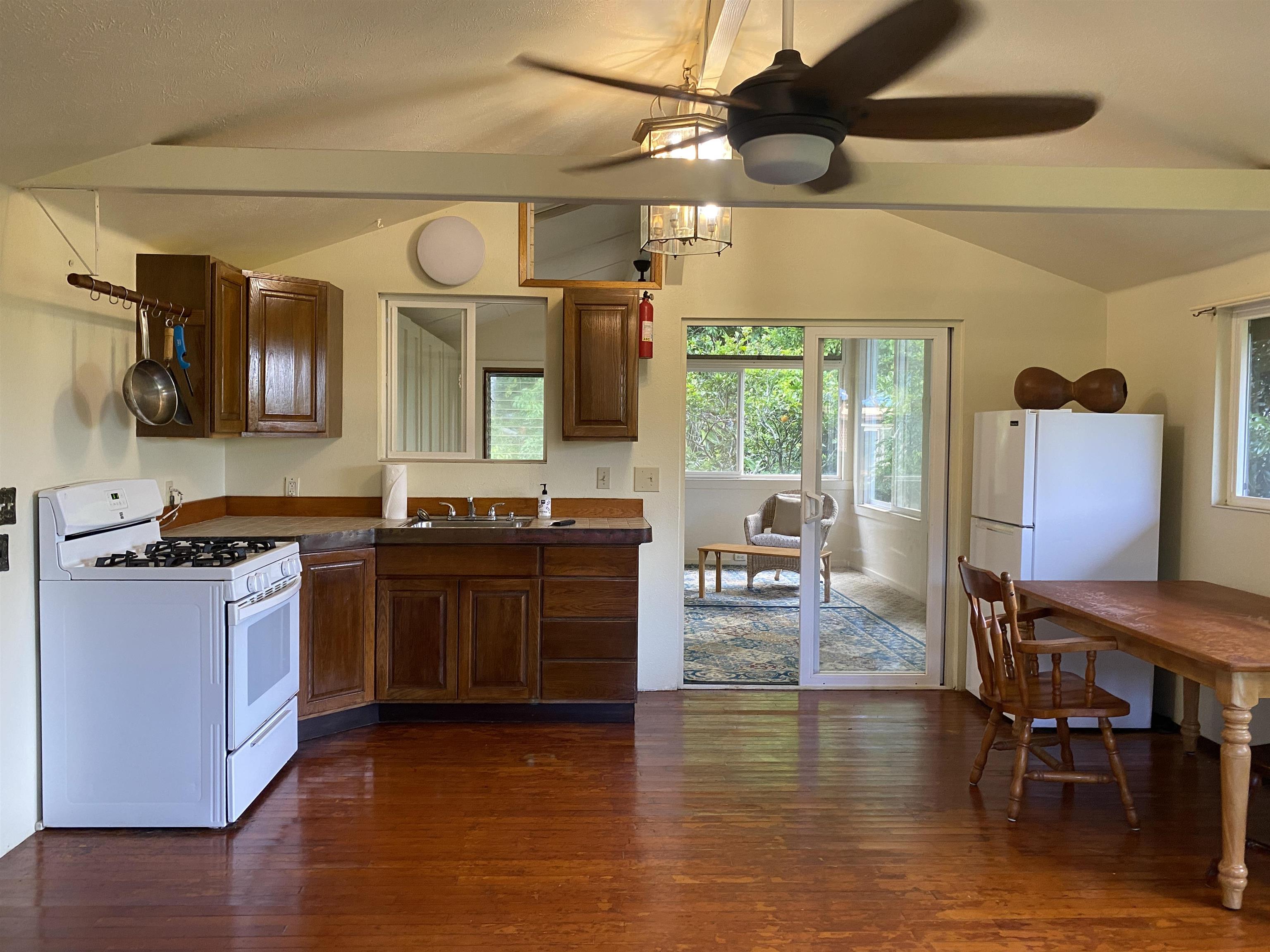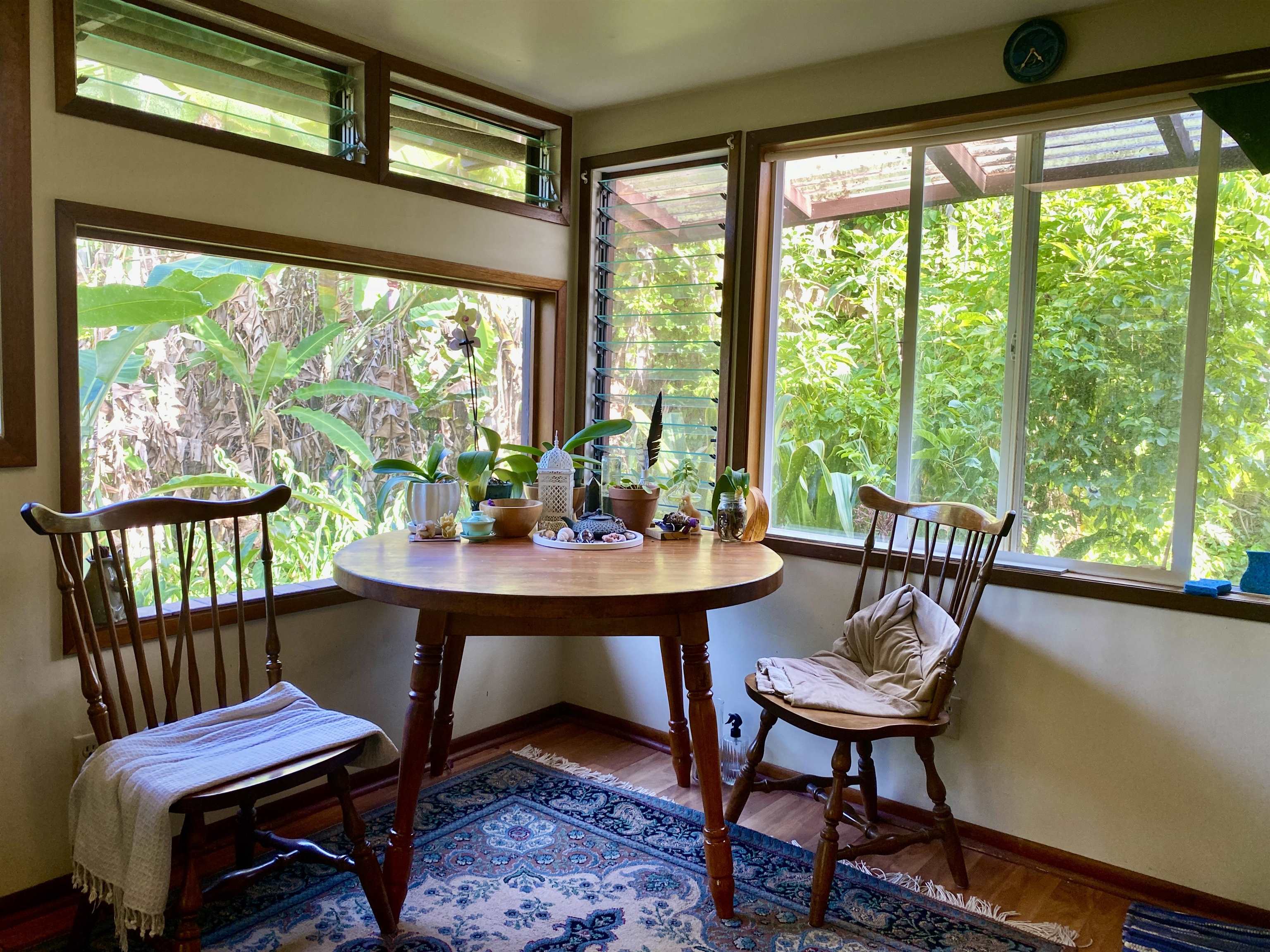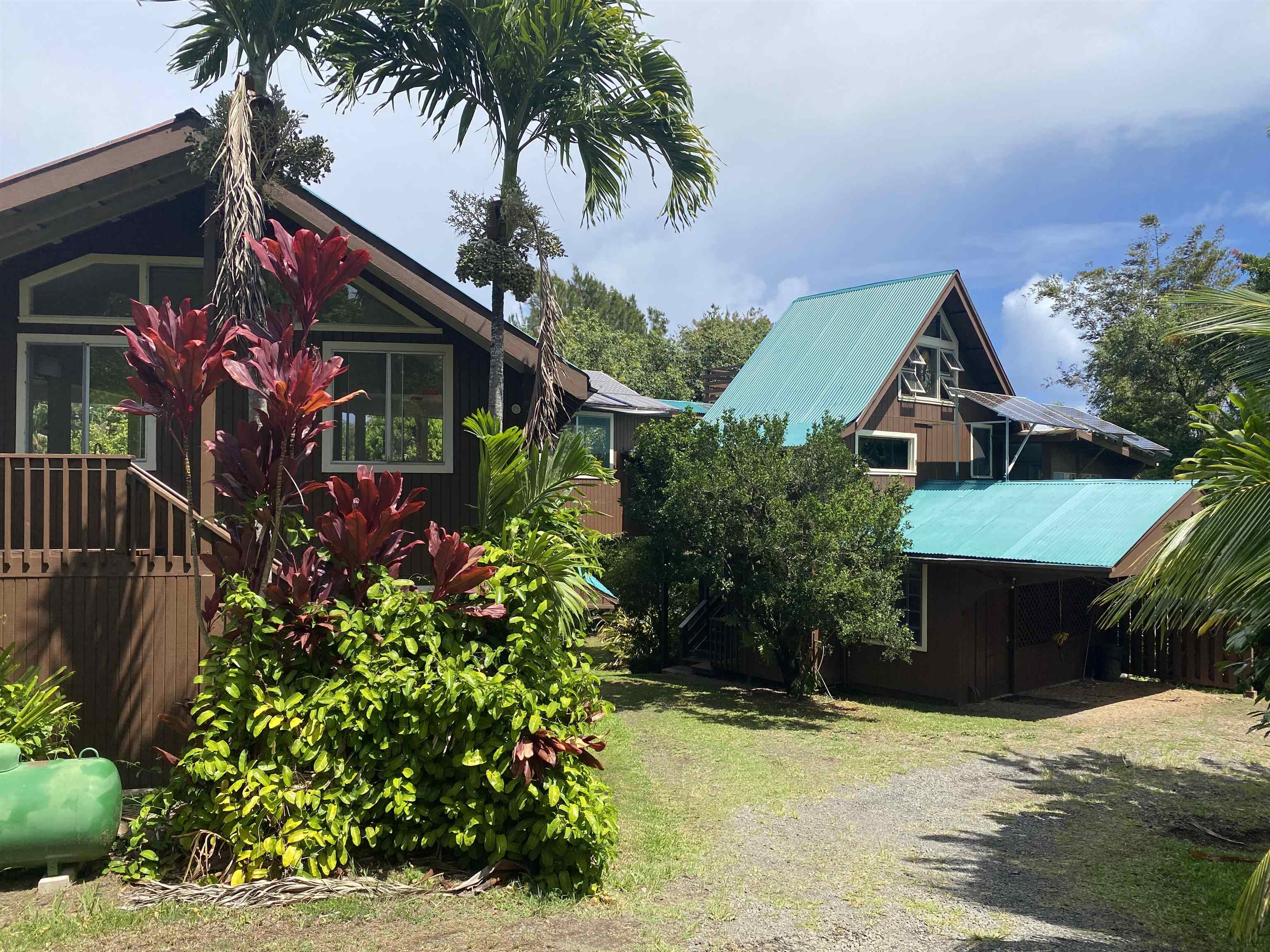 A beautiful tropical oasis in the country, with 2 off-grid homes on the ocean side of the Hana Highway. Very private and self sustainable, with updated solar power, catchment water and a perennial stream. Grow your own food. Fiber optics. Propane delivery service. No HOA. Not a CPR. Electric gate. The Ulalena Loop neighborhood near Twin Falls offers a country lifestyle that's only about a 15 minute drive from all the conveniences of the north shore towns of Haiku and Paia. Walk or drive to the natural swimming hole/waterfall at Ho'olawa Stream. Housing: The 2-story main house has a flexible floor plan with room for everybody. It feels like 2 homes with a covered walkway joining them. Climb up to the loft with a mountain view deck. Brand new kitchen appliances. Old fashioned hardwood floors. Bathrooms with jungle views. The detached cottage has living quarters accessed from one level, and a garage below. Lots of room to park and turn around on the paved driveway. Both homes have been recently re-roofed. Grounds: You get a lot of bang for your buck on this 1/3 acre home-site. The smaller lot means less upkeep, but you'll enjoy lush plantings, exotic flowers and fruit trees. Behind the gated entrance lies a nature filled sanctuary, like a breath of fresh air. Mature fruit trees include: avocado, citrus; banana, papaya, lilikoi, mangosteen, egg fruit, longan, Suriname cherry, ice cream bean. Colorful tropical flowers everywhere you look. You can feel secure here with so many sustainable features like independent utilities and nature's bounty. Stay and get comfortable, you won't need to go anywhere. Very few neighbors, adjacent to 60 vacant acres.