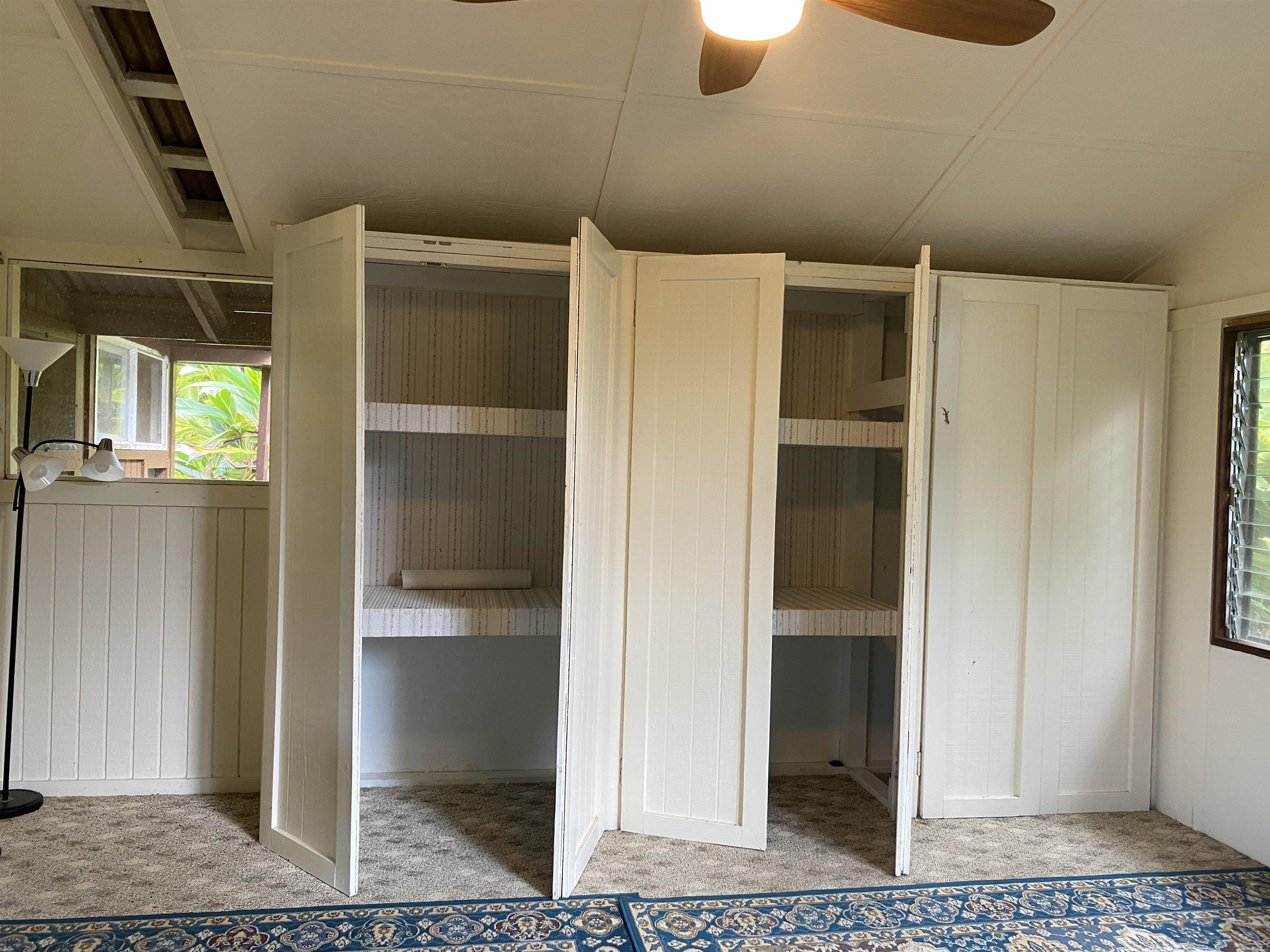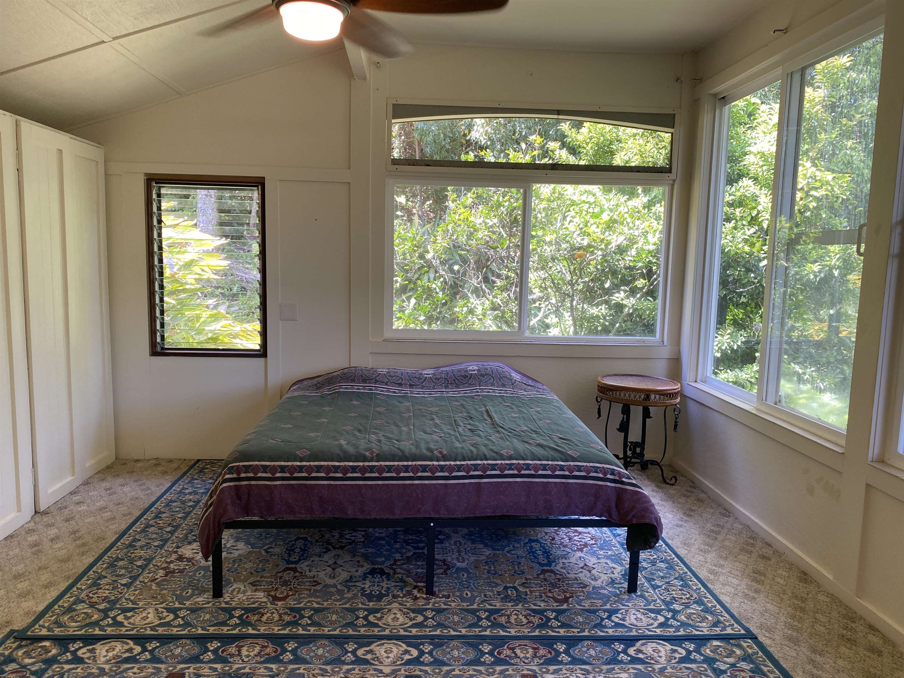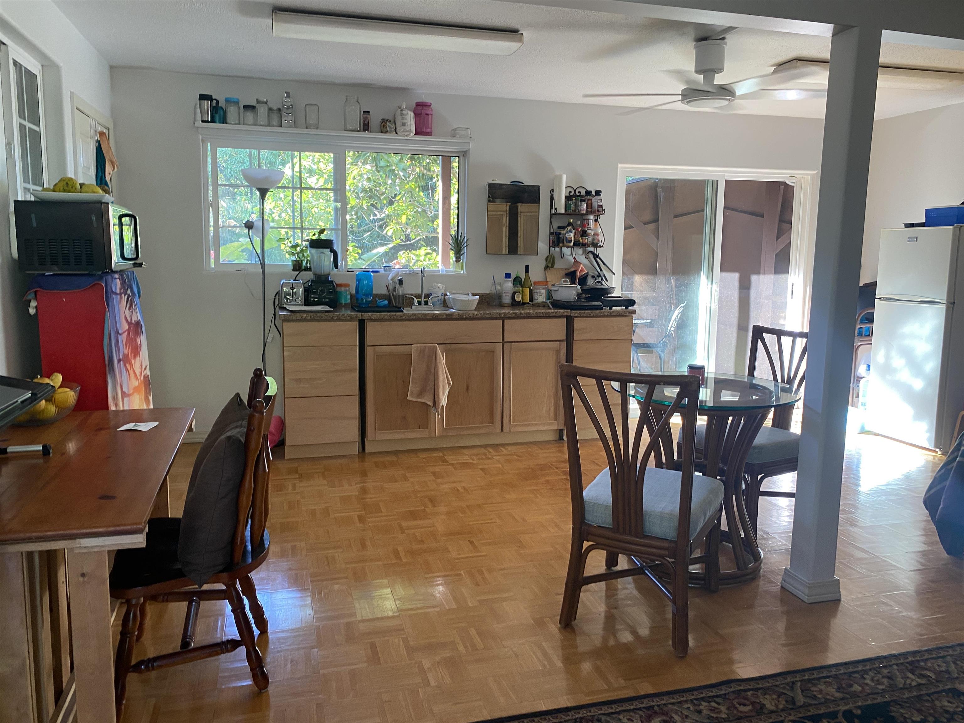 A beautiful tropical oasis in the country, with 2 off-grid homes on the ocean side of the Hana Highway. Very private and self sustainable, with updated solar power, catchment water and a perennial stream. Grow your own food. Fiber optics. Propane delivery service. No HOA. Not a CPR. Electric gate. The Ulalena Loop neighborhood near Twin Falls offers a country lifestyle that's only about a 15 minute drive from all the conveniences of the north shore towns of Haiku and Paia. Walk or drive to the natural swimming hole/waterfall at Ho'olawa Stream. Housing: The 2-story main house has a flexible floor plan with room for everybody. It feels like 2 homes with a covered walkway joining them. Climb up to the loft with a mountain view deck. Brand new kitchen appliances. Old fashioned hardwood floors. Bathrooms with jungle views. The detached cottage has living quarters accessed from one level, and a garage below. Lots of room to park and turn around on the paved driveway. Both homes have been recently re-roofed. Grounds: You get a lot of bang for your buck on this 1/3 acre home-site. The smaller lot means less upkeep, but you'll enjoy lush plantings, exotic flowers and fruit trees. Behind the gated entrance lies a nature filled sanctuary, like a breath of fresh air. Mature fruit trees include: avocado, citrus; banana, papaya, lilikoi, mangosteen, egg fruit, longan, Suriname cherry, ice cream bean. Colorful tropical flowers everywhere you look. You can feel secure here with so many sustainable features like independent utilities and nature's bounty. Stay and get comfortable, you won't need to go anywhere. Very few neighbors, adjacent to 60 vacant acres.