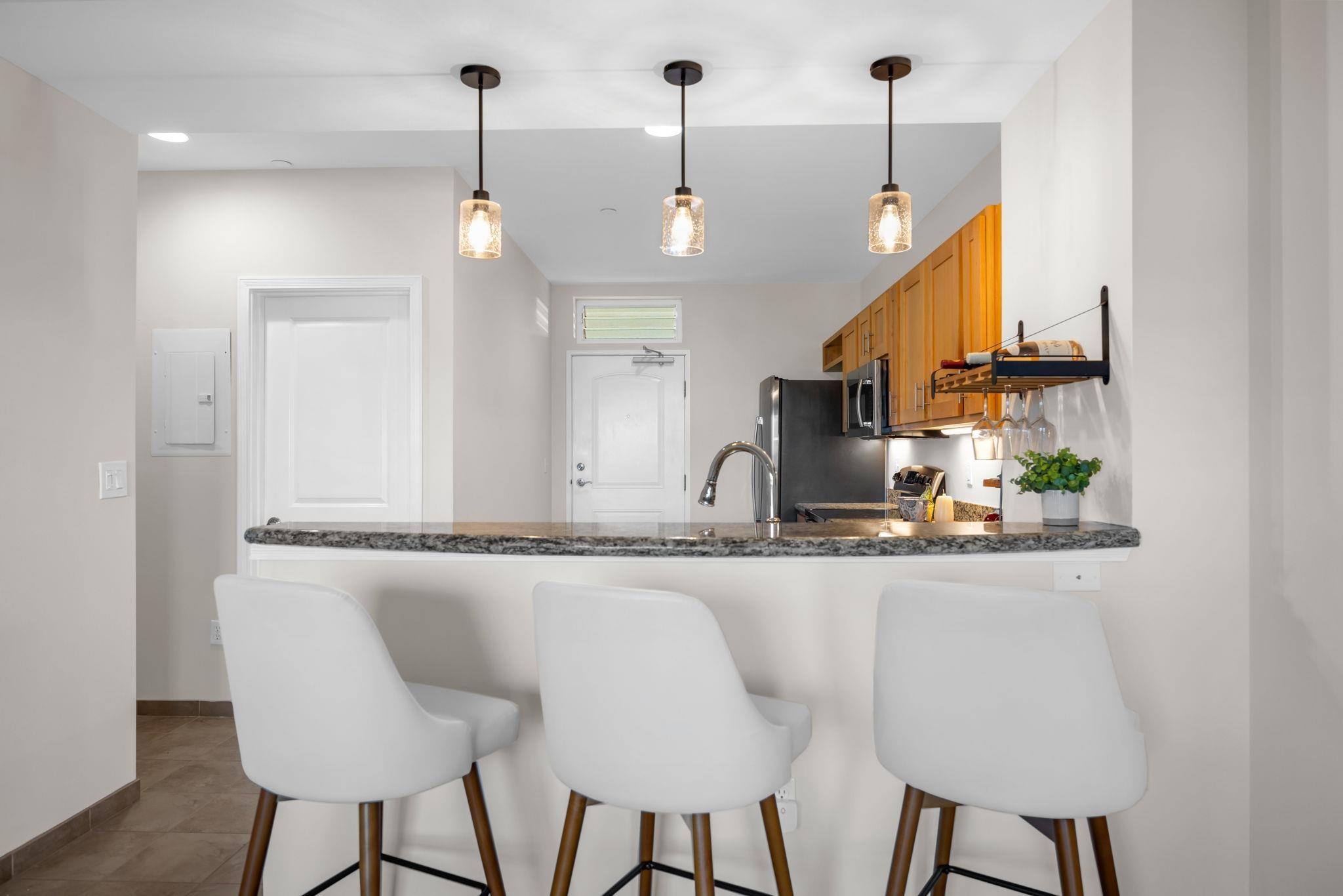 The Breakers E-33 showcases pride of ownership with thoughtful upgrades and ocean views from a generous double-size lanai—the perfect spot to take in Maui’s colorful sunsets. This 1-bedroom, 1-bath condominium offers 584 sq. ft. of comfortable living space featuring warm luxury vinyl plank flooring, fresh interior paint, and a modern kitchen with granite countertops and stainless-steel appliances. A Fujitsu split A/C system, full-size washer and dryer, and a recently remodeled walk-in shower—converted from the former tub—add convenience and contemporary appeal. Previously owner-occupied, the unit is now lightly staged, allowing the next owner to envision their own personal touches. The Breakers is a pet friendly, well-maintained, low-density community located across from Honokowai Beach Park, with amenities including a large pool, fitness center, and tropical landscaping. Near local cafés, the Farmers Market, and the beaches of Ka‘anapali and Lahaina, this home offers easy access to all that West Maui has to offer. With its generous lanai, modern upgrades, and well-cared-for condition, E-33 is a standout opportunity for those seeking quality and comfort in a desirable coastal setting.