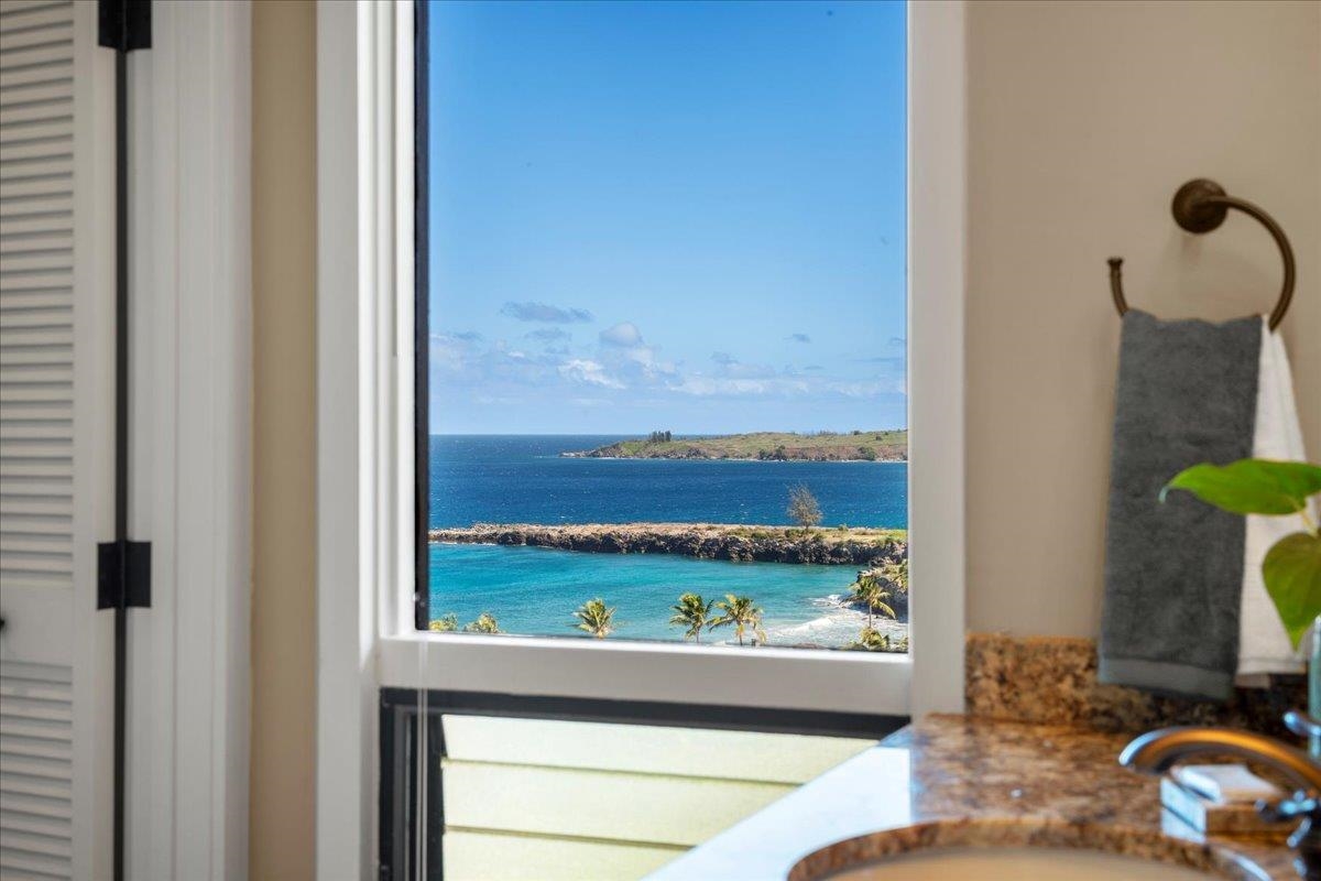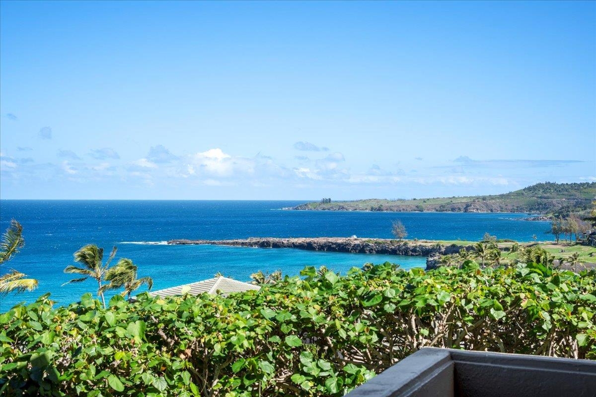 Spectacular 240-degree ocean views from the minute you enter this unit. Kapalua Ridge Villa 2915 has a full view of the island of Molokai, all the way to the waves of Honolua Bay and Lipoa Point, as well as the verdant hills of Plantation Estates. It is very rare to enjoy sunrise views from Kapalua Ridge Villas and the location of this unit affords not only that, but stunning colorful sunset views as well. Situated in the world renown Kapalua Resort, Kapalua Ridge Villas is a low-density development with a park like setting, with beautiful Hawaiian flora. Owners and guests can entertain at the Ridge Pavilion featuring a complete kitchen, large covered sitting area and barbecues and large pool. Every unit has one covered parking stall and one exterior storage unit. 2915 is a very private corner unit, with a two-story floor plan, that allows fantastic ocean views from the primary bedroom. Enjoy your morning coffee and the first rays of sunshine, on any of the two lanais, while watching the ocean, with sail boats going by, rainbows over the island of Molokai and whales jumping out of the water in season.