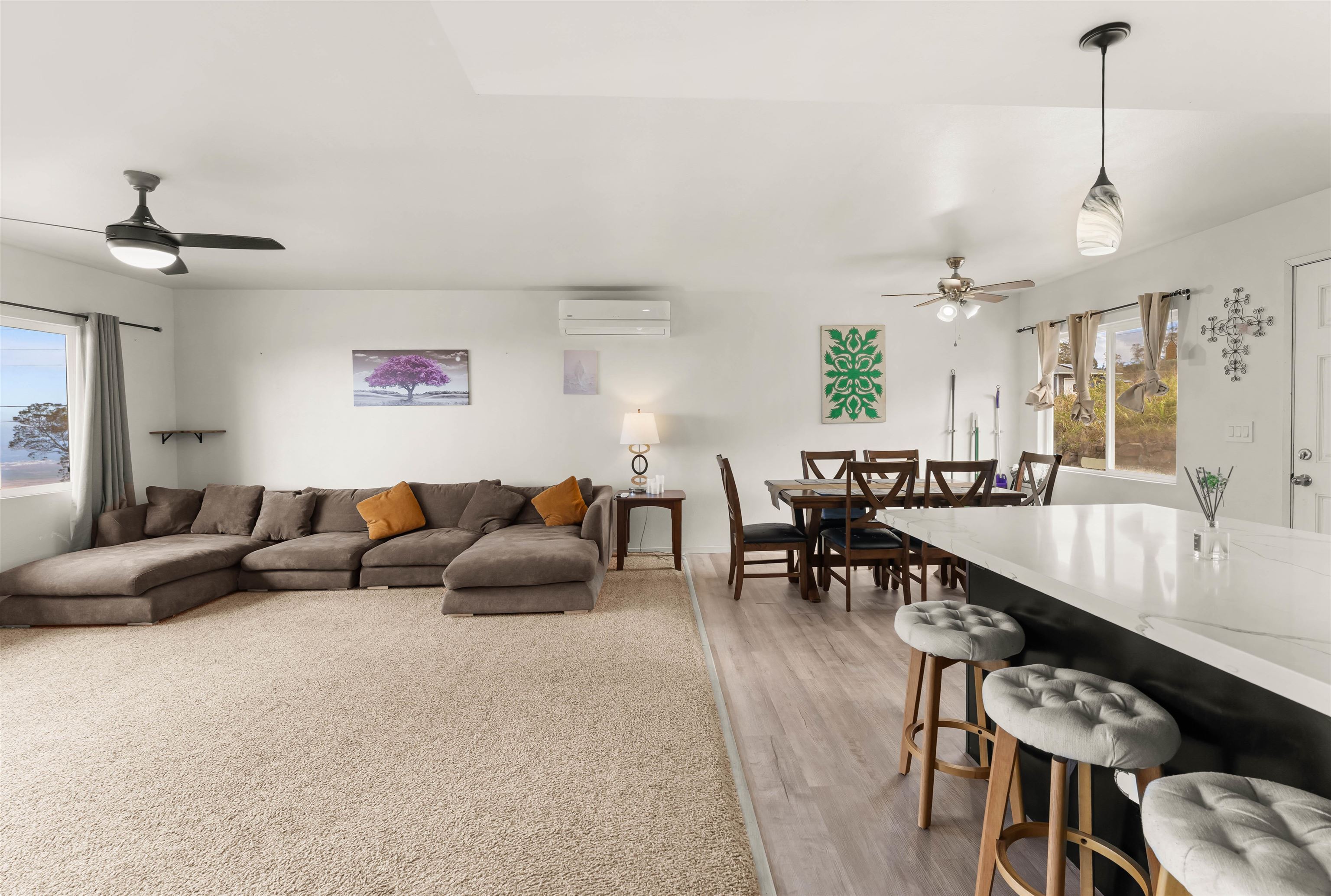 Kula Hawaiian Homestead Residence This distinguished 4-bedroom, 2-bath home, built in 2005, sits on a sprawling 36,155 sq. ft. (0.83 acre) cleared Hawaiian Homes lot, offering rare space and flexibility for gardens, fruit trees, or creative outdoor living. The interior boasts a completely renovated open-concept kitchen, ideal for entertaining and modern living. Additional features include 20 owned solar panels, a 2-car garage, a two-unit split AC system, and a handi-accessible ramp at the rear of the home, blending comfort, functionality, and thoughtful design. From the property, enjoy panoramic views of Lana‘i and Molokini, along with the refreshing cool Kula evenings, creating an idyllic upcountry lifestyle. The sellers offer the option to leave the home fully furnished or deliver it cleared prior to closing. A rare Hawaiian Homestead opportunity on the slopes of Kula — abundant land, energy-efficient amenities, modern comforts, and breathtaking vistas. Buyers must qualify with Department of Hawaiian Homelands to purchase the leasehold property. Showings are available by appointment only, and all interested parties must be accompanied by their licensed Realtor.