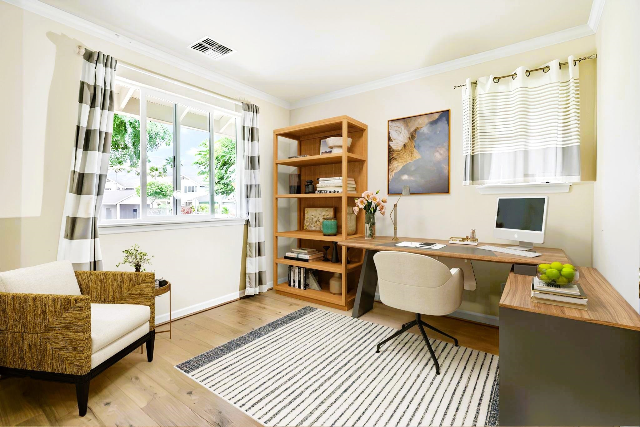 Welcome Home – A Rare Single-Level, Remodeled 3-Bedroom Retreat. Discover the ideal blend of comfort, convenience, and island living in this beautifully upgraded three-bedroom residence - complete with a private yard, no one above or below, and parking conveniently located close by your doorstep. A gentle ramp leads to your entry, offering true single-level living with no stairs and effortless access. Set within a charming community adorned with lush lawns and stately shade trees, this home embraces a serene lifestyle while keeping you close to everything Maui has to offer. Enjoy easy proximity to stunning beaches, surf breaks, windsurfing, hiking and biking trails, golf and country clubs. shopping, and the island’s vibrant outdoor adventures. Majestic views of the West Maui Mountains and the iconic I‘ao Valley paint your backdrop with soft tropical skies and sunset hues of magentas, gold,. and violet. Inside, experience an inviting, spacious, light-filled, open-concept floor plan that flows seamlessly from the generous living and dining area to your private backyard - perfect for relaxing, entertaining, dining al fresco, or cultivating your own private garden sanctuary. The thoughtfully designed kitchen features striking black granite with creamy soft white-beige marbling, complemented by light cabinetry, elegant black and stainless coordinating appliances, a large pantry, and a charming farmhouse-style sink. Upgraded luxury vinyl flooring enhances the home’s modern, move-in-ready appeal. The generous primary suite is privately positioned on one end of the home, offering peace and comfort away from the two guest bedrooms and second bath - ideal for loved ones, guests, or remote work. Priced to sell and offering exceptional value, this residence is perfect as your full-time home, your Maui home away from home, or an investment opportunity. Your new Maui lifestyle begins here - E Komo Mai - welcome home!.