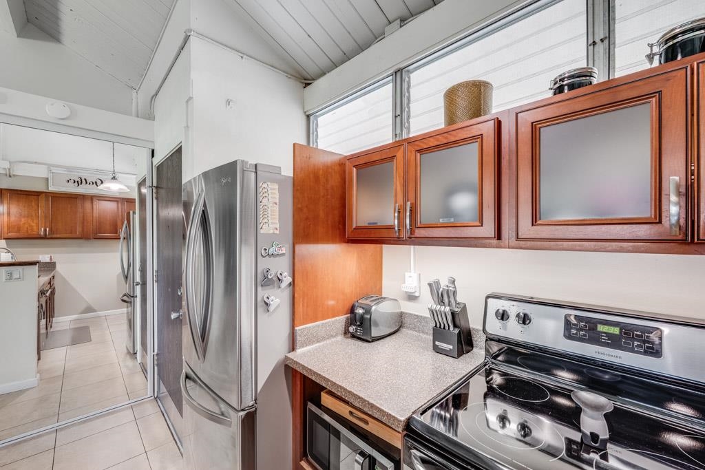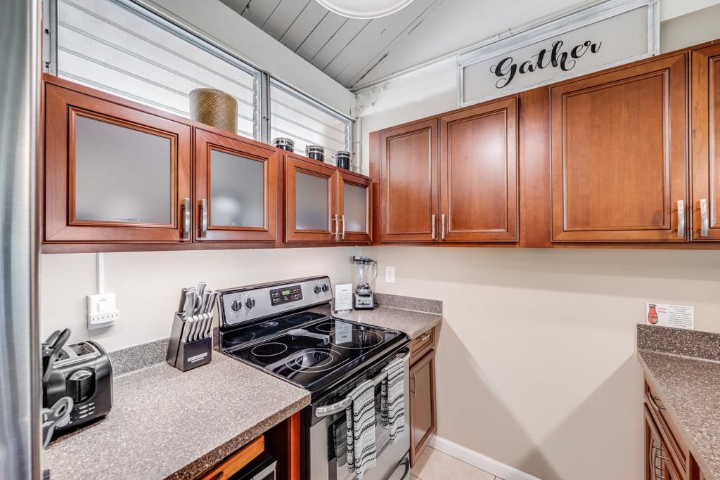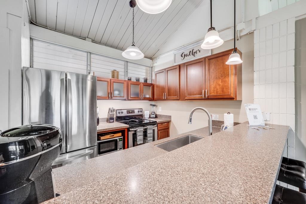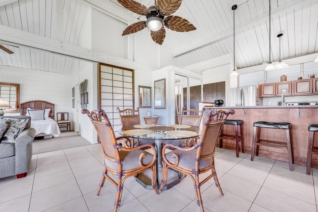 Haleakala Shores A409: Your Maui Beach Escape Awaits. Discover the perfect opportunity to own a highly sought-after TOP FLOOR unit at Haleakala Shores, ideally positioned directly across from the world-famous golden sands of Kamaole Beach Park III, renowned for excellent snorkeling, swimming with sea turtles, and spectacular sunsets. This beautifully updated and spacious 2-bedroom, 2-bathroom condominium features VAULTED ceilings with an airy open-concept design, air conditioning, and COVERED PARKING to keep your vehicle cool. The primary suite offers a serene retreat with a queen bed, en-suite bathroom featuring a large walk-in tiled shower, and direct access to the private covered lanai where you can enjoy partial ocean views while catching the breezy trades. The generous guest suite includes two twin beds, its own full bathroom with walk-in shower. No detail is overlooked in this turn-key offering, including a fully equipped kitchen with modern appliances, new large capacity in-unit washer/dryer, new hot water tank, and storage for beach gear (plus additional surfboard/kayak storage near the pool). Residents enjoy resort-style amenities including a beautiful community pool, sun deck, covered lounge area, BBQ facilities with gas grills, and tropical garden grounds—all in South Kihei's most walkable location near popular restaurants, shopping, and just a short drive to world-class golf courses in Wailea and Makena. Whether you're seeking full-time island living, a second home, or a highly desirable vacation rental, Haleakala Shores A409 offers the ideal blend of convenient location, resort-style amenities, and spacious comfort.