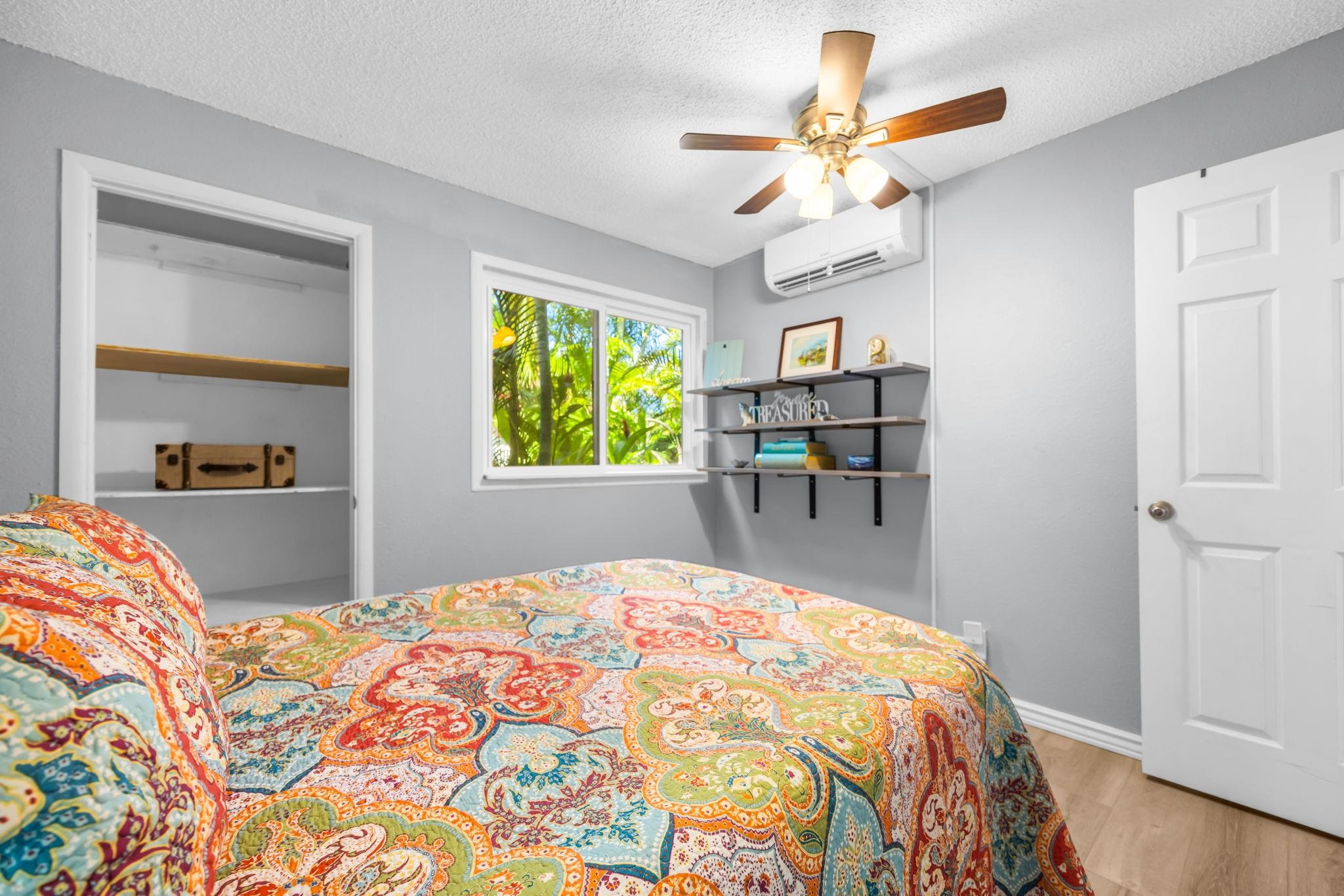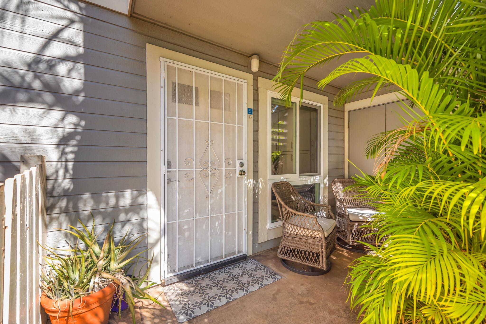 Don't miss this opportunity for a very private ground floor unit in Building #36! This remodeled 2-bedroom, 1.5-bath home features an owned 9-panel photovoltaic system to lower your electric bills, a fully remodeled kitchen with wall to wall soft-close cabinets, and an updated 1.5 bathroom with a walk-in shower. The living room showcases a built-in entertainment wall system, coastal wood accent wall, and sliding glass door with built-in blinds. Both bedrooms and the living area have split air conditioning, and the primary bedroom boasts a walk-in closet. The unit is painted in soft grey and white tones and includes a spacious yard with a privacy fence and tropical plants, perfect for outdoor living and entertaining. The secure outdoor closet provides even more storage for the unit. There is one assigned parking space (#675) with visitor parking nearby. Conveniently located on the ocean side of Kihei Villages, you’re just minutes from the local Farmer’s Market, Kihei Canoe Club, and Sugar Beach. Act fast—this unit won't last long!