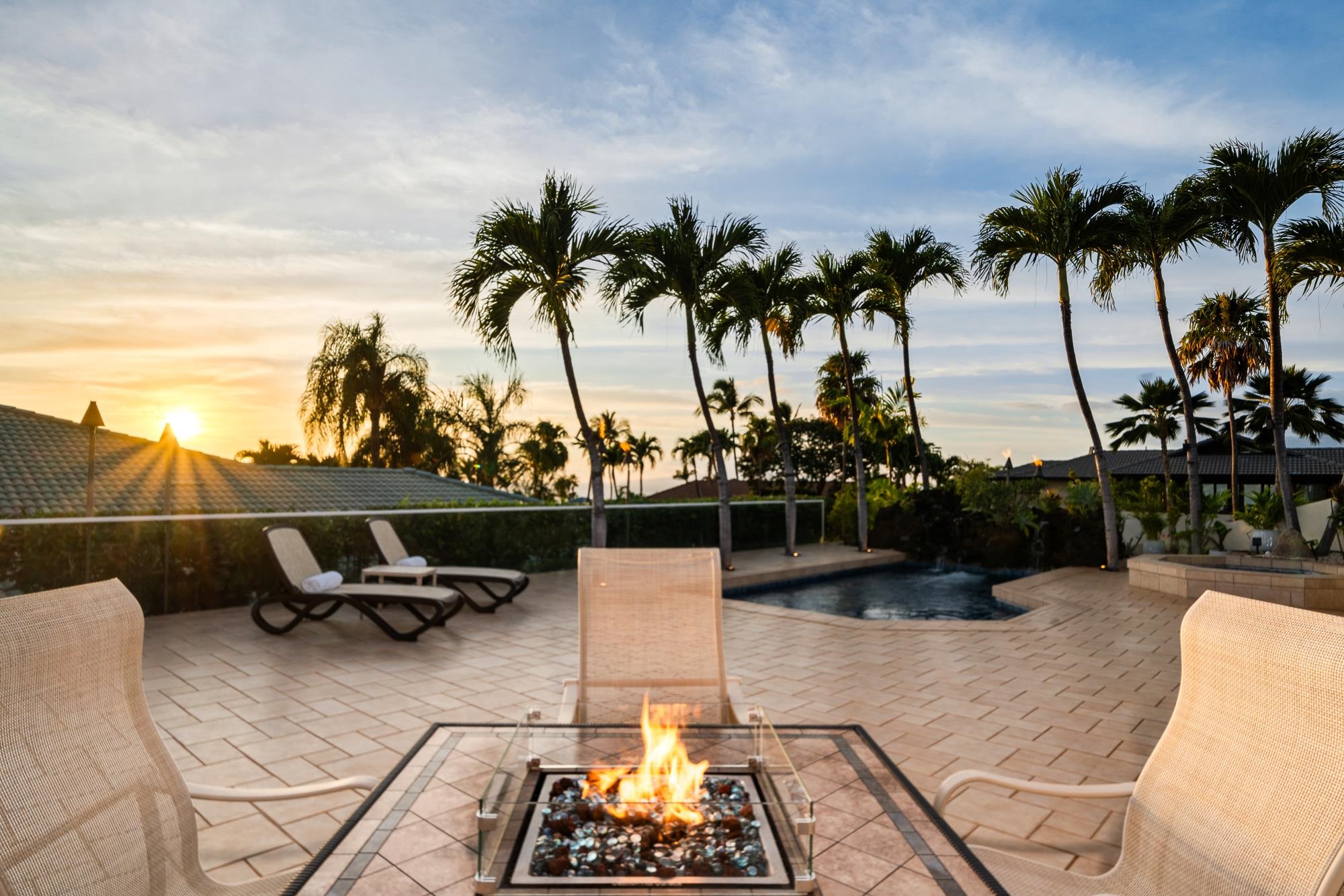 Capturing breathtaking sunsets over the Pacific and tranquil views of Haleakala and the surrounding mountains, this exceptional Wailea Kialoa residence embodies the essence of refined island living. Perfectly positioned near the top of a private cul-de-sac within this gated enclave, the home rests on a 10,128 sq ft lot along a lush greenbelt, offering both privacy and serenity in one of Wailea’s most exclusive neighborhoods. Beautifully reimagined and structurally reinforced with steel beams, this 3,934 sq ft two-level home was designed for seamless indoor-outdoor living. More than a dozen Fleetwood sliding glass doors open entire walls to expansive tile lanais, a resort-style heated pool and spa, and multiple outdoor entertaining areas. An outdoor bar and theatre area, gas tiki torches, and mechanical awnings create an inviting setting for gatherings, while LED architectural and landscape lighting accentuate the home’s beauty after sunset. A photovoltaic systemenhances energy efficiency, and the community’s 24-hour security gate ensures peace of mind. Inside, custom window and door coverings balance light and privacy. The primary suite offers a true retreat with a lava rock accent wall, a custom indoor-outdoor tiled shower, and a private sauna. A two-car garage, refined finishes, and proximity to Wailea’s beaches, dining, and championship golf complete this remarkable residence—where every day begins and ends in timeless Maui beauty.