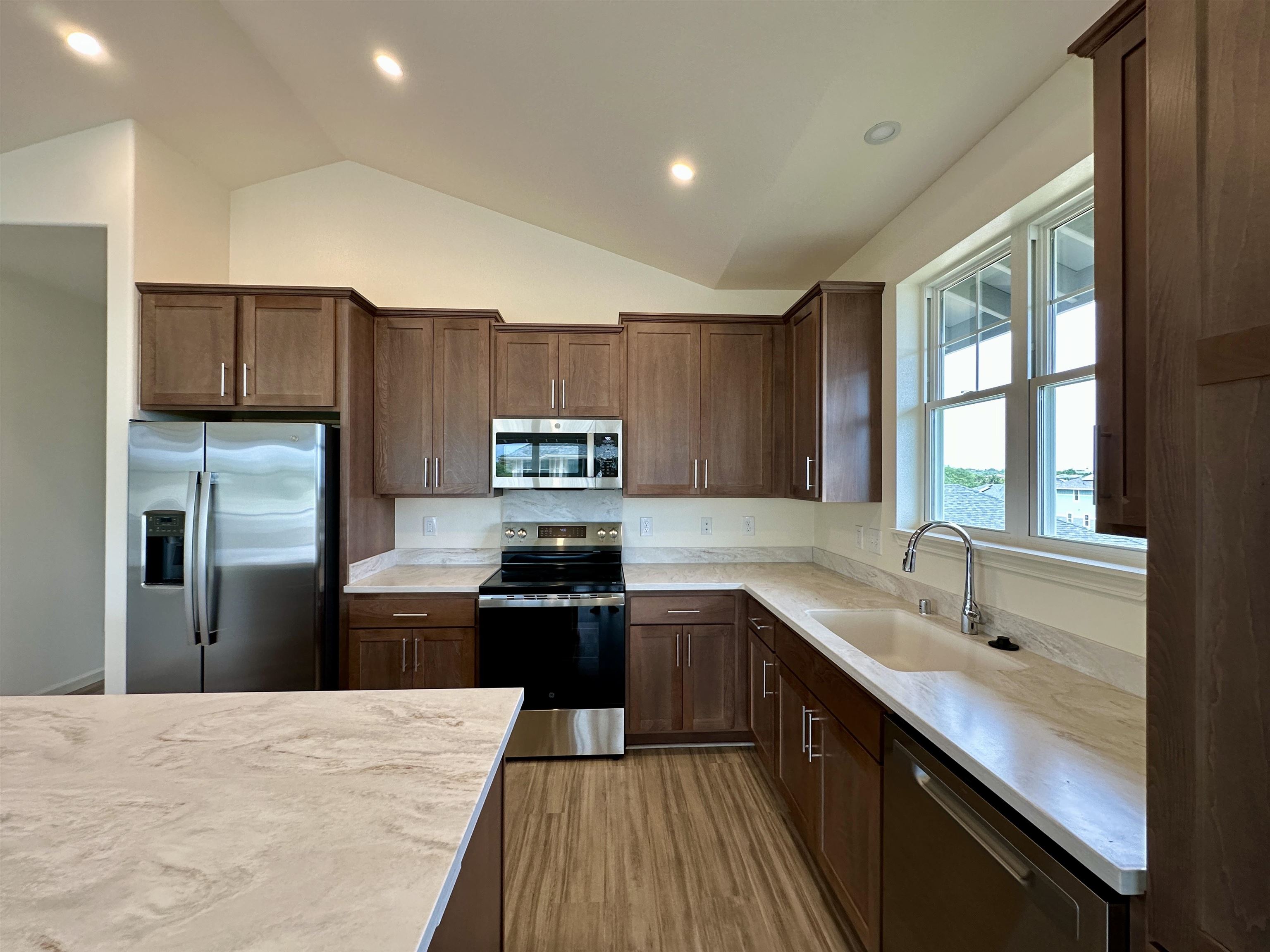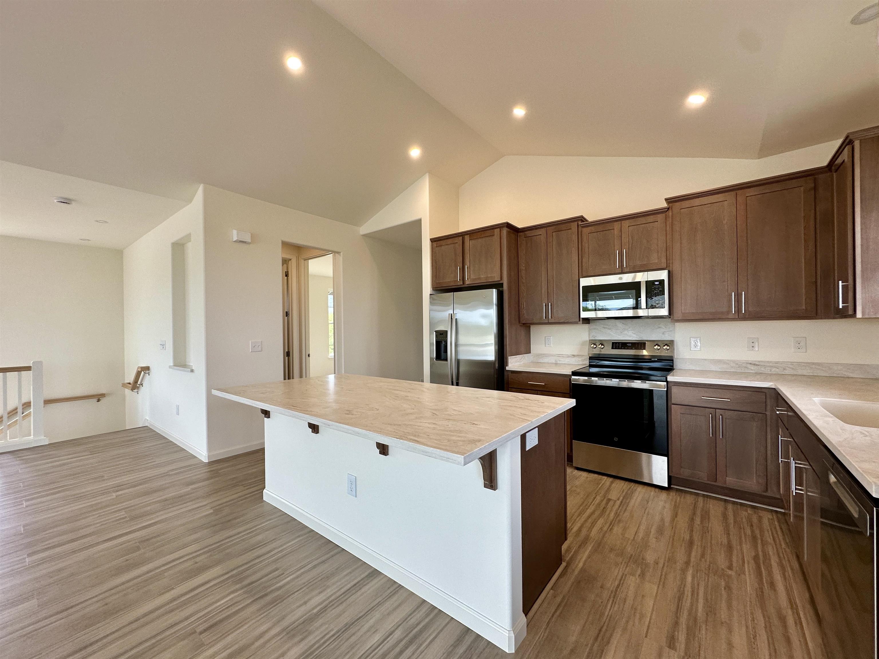WELCOME HOME! This BRAND-NEW & Move-In Ready home is located in a highly desirable new community, The Parkways at Maui Lani-final Phase 5. The Parkways is conveniently located in central Maui within the Maui Lani Master Planned Community and is in close proximity to Maui Lani Regional Park and trails, medical facilities, the airport, shopping, beaches and schools. This brand-new floor plan is a split level, K6 floor plan is a very spacious 4 bedroom, 3 bath home with approximately 2,474 s.f. of living space. All homes within this community include 9-foot ceiling, and 8-foot custom doors. Additional bonus features include laundry room, exterior insulation, and solar hot water heater. The home will also include a private E-one sewer system. This home has many upgrades including, upgraded Corian countertops, upgraded tile in bathrooms, LVP flooring upgrade on stairs, designer carpeting & pad in bedrooms, EV receptacle with 50 AMP breaker in the garage for electric vehicles, PV prep ready, LED lighted mirrors in all bathrooms, Refrigerator, washer & dryer and custom drop zone. All information subject to change at any time.