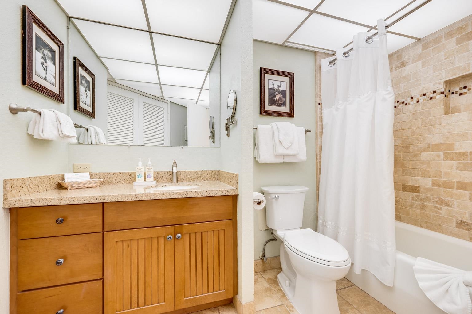 HOTEL zoned. Ka'anapali Shores #322 is one of the LARGEST 1BR units featuring the "C" floor plan within this Aston luxury resort. This unit has a spacious great room with a full-size kitchen that features GRANITE counter tops and custom cabinets. The lanai is spacious and the perfect spot to enjoy bird song and your morning coffee as you plan the day's adventures. The primary bedroom is much larger than the smaller 1BR floorplan most commonly available. Maintenance fees cover electricity and the cost of operating the CENTRAL AC within the unit — a huge bonus! Convenient access to North building parking makes those daily quick trips a breeze. Ka'anapali Shores is a hotel zoned, 10-acre, luxury resort with a welcoming lobby, two swimming pools (one oceanfront and one resort-style with water features), two spa pools, a poolside restaurant, saunas, a fitness center, two tennis courts, and a pickleball court. Convenient gift shops, a food pantry store, and beauty salon are also located on the premises. Across the street are supermarkets, restaurants, and shops; and within a 5-minute drive are the Whaler's Village Shopping Center and Ka’anapali Golf Course.