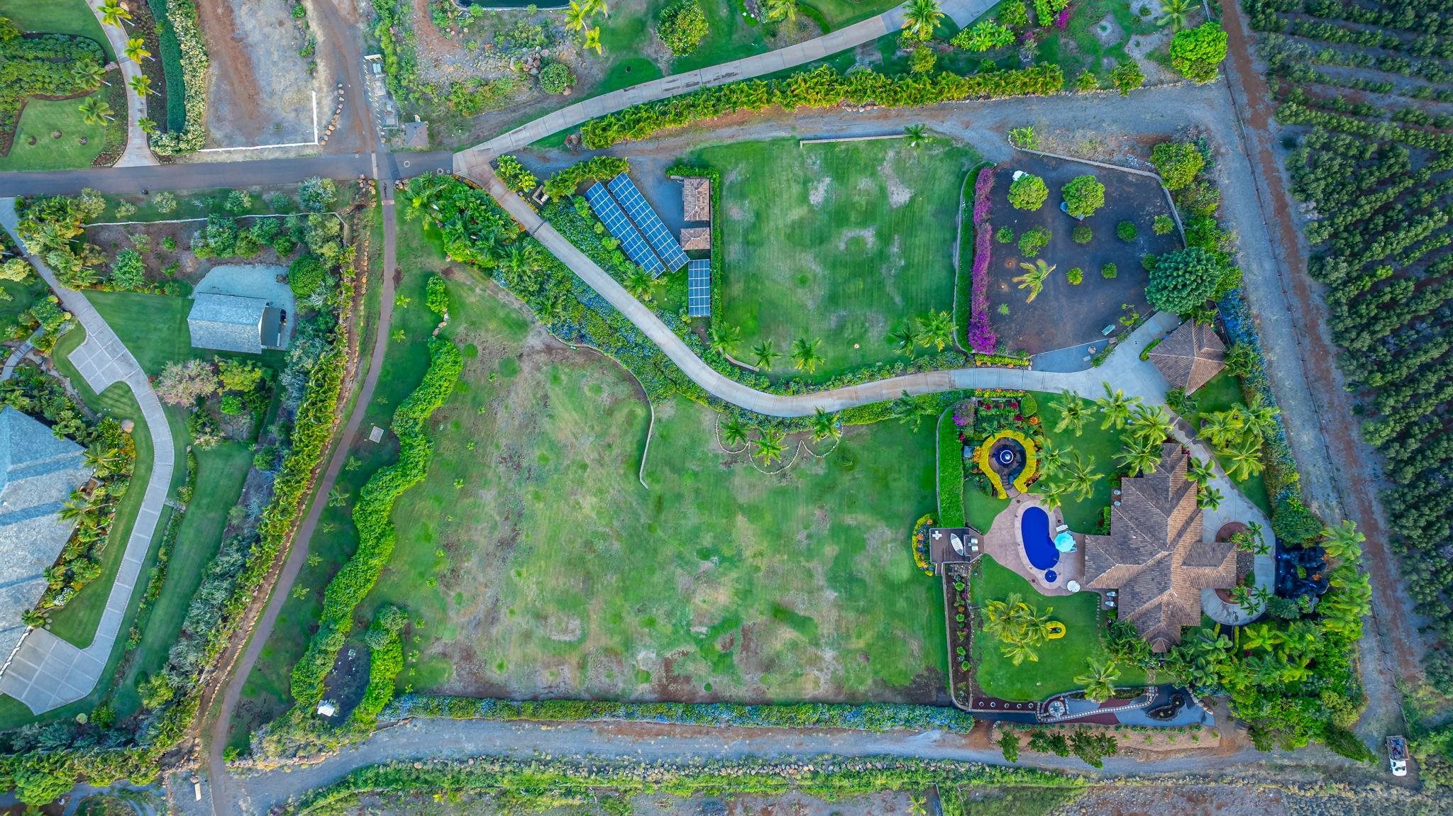 Nestled on what may be the finest parcel in all of West Maui, this expansive five-acre-plus sanctuary claims the premier position within Puunoa Estates. Thoughtfully designed landscaping combines with the property's naturally secluded setting to deliver complete seclusion. Within the exclusive, gated enclave of Puunoa only 24 estate properties exist, each spanning a minimum of five acres. The discerning owners who call Puunoa home have the means to reside anywhere globally, yet they've deliberately chosen this remarkable community. What draws them? An enviable lifestyle where perpetual summer weather meets effortless beach access, all framed by breathtaking vistas of the Pacific, neighboring islands, the West Maui Mountains, spectacular sunsets, and seasonal whale migrations. 67 Wili Okai Way stands apart with distinctive features rarely found among West Maui's current luxury offerings. The private entry drive makes a stunning first impression—majestic royal palms line the approach, framing spectacular mountain and ocean panoramas. An elegant water feature accented by tiki torches creates a welcoming threshold to this sophisticated single-story residence. The entire five-acre grounds showcase meticulous care, with indigenous flora, tropical plantings, and pristine emerald lawns throughout. The property's infrastructure allows for future expansion, including an ideal site for an Ohana cottage and a detached barn structure—both positioned to preserve the main residence's sweeping, uninterrupted views.