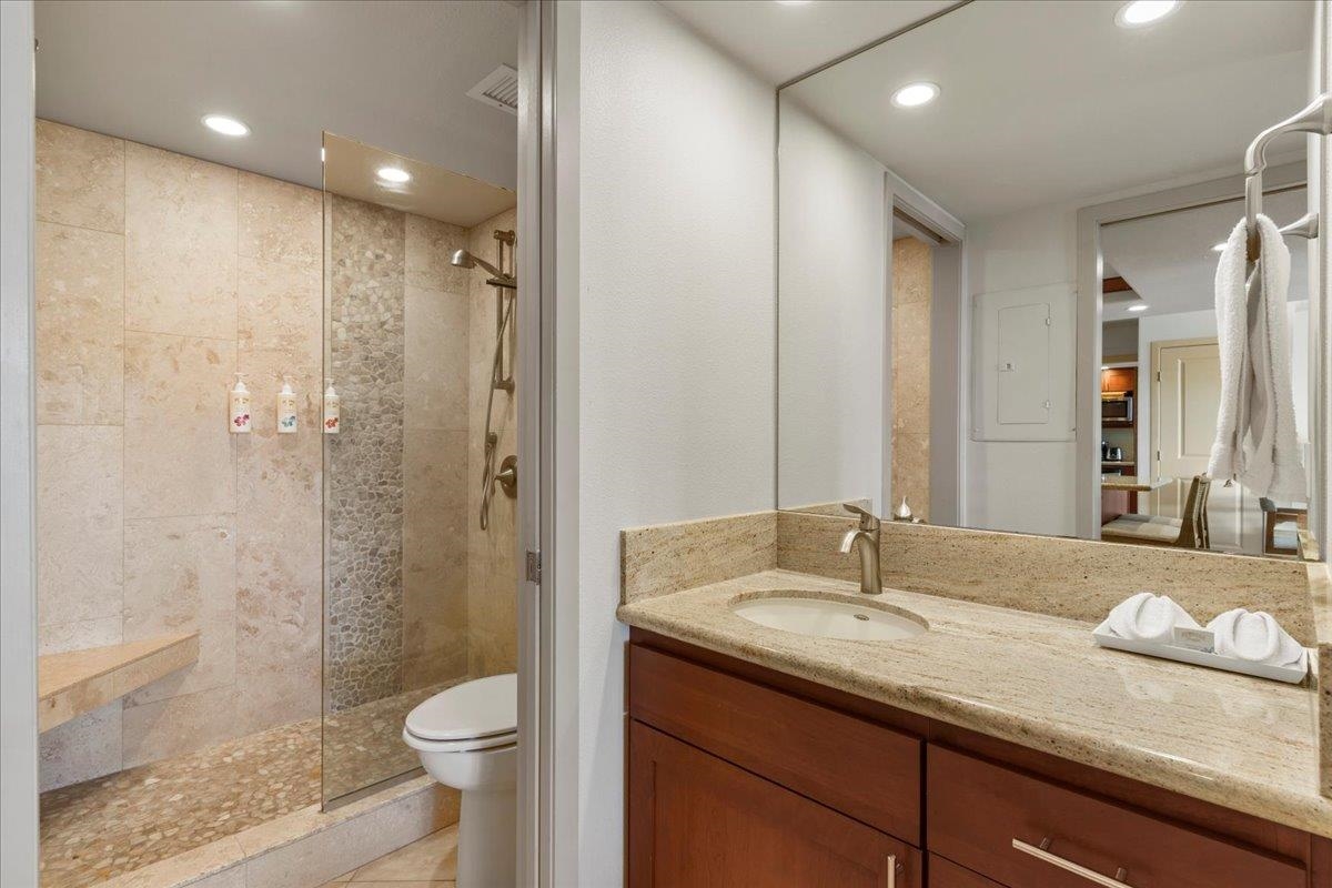 Nestled in a fabulous upper-floor location, this beautiful unit offers breathtaking ocean views that you can enjoy from the comfort of the spacious lanai. G409 is ideally positioned across the street from pristine Kamaole Beach II with perfect sand and turquoise waters. Whether you want to relax and soak in the views or stroll to the nearby shops and restaurants, everything you need is just moments away. This property is ideal for those seeking the perfect blend of convenience and south Maui living. The unit has a lock-off layout with 2 entrances creating the possibility of 2 rentals (a 1-bedroom and a studio or as a full two-bedroom). Maui Banyan has 2 pools, 2 hot tubs, several BBQ's and a tennis court. This unit also comes with a covered parking stall. Don't miss the chance to make this Hotel-zoned gem your own!