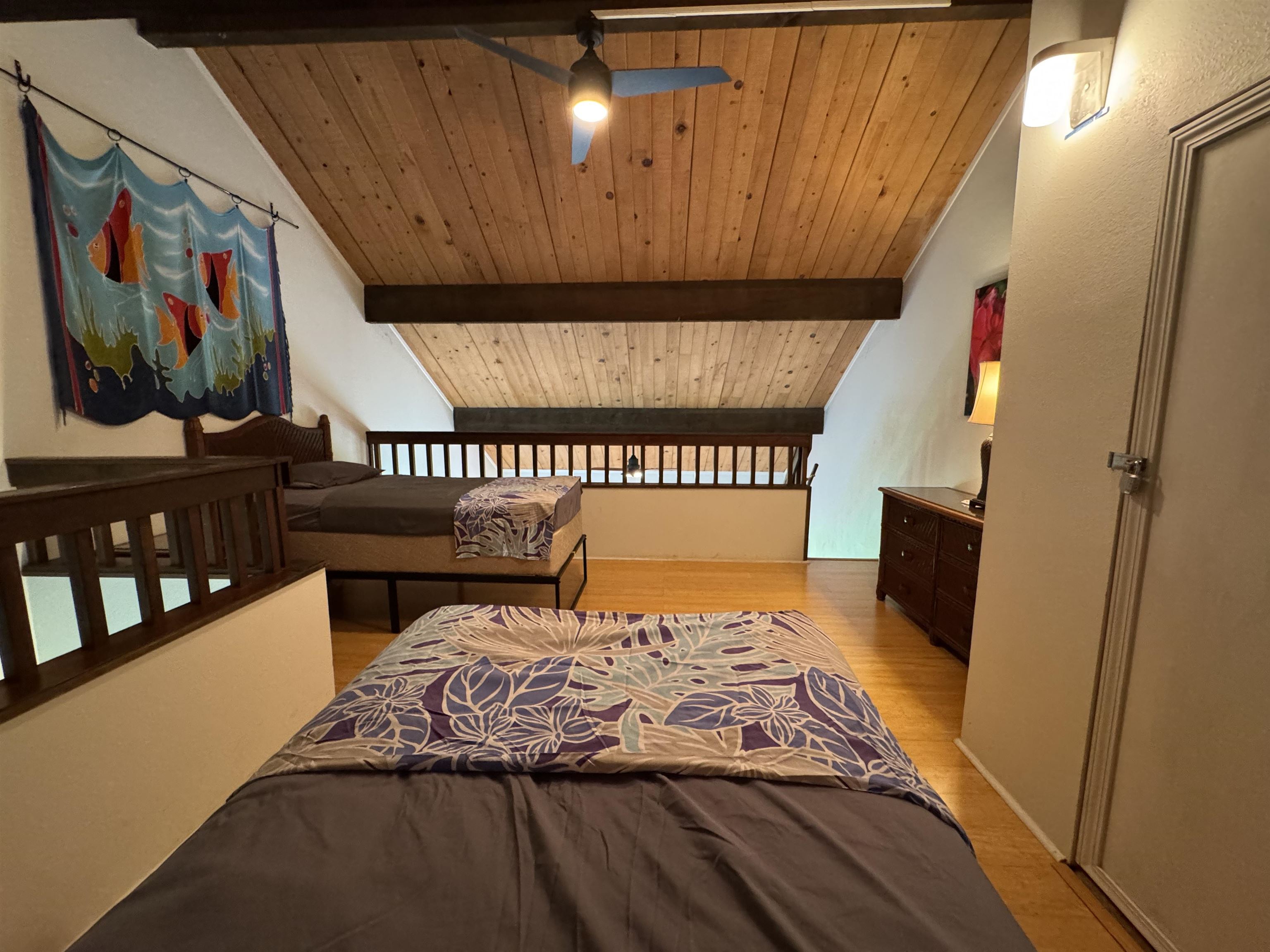 Welcome to Molokai Shores; a Beachfront, Hotel-Zoned complex with views and amenities to live for. This fee simple unit is located in the "A" building; coveted for tradewind breezes and the first cluster from the beach. Unit A303 is located on the top/third floor, which means this is no ordinary 1-bedroom, 1 bathroom unit; this condo also includes a loft currently serving as a second bed room. The unit comes completely furnished with inventory ready for you and your guests. It has been updated with bamboo flooring, kitchen countertops, beach-inspired paint and new fans. Soak in the views from the balcony of the ocean, kaloko'eli hawaiian fishpond and Lana'i island. Currently an active vacation rental, benefit from immediate rental income. The amenities include an in-ground pool, picnic tables, charcoal grills & gas grills, putting greens, kayak storage and easy beach access. The complex features a management office, common laundry room, a salon and a florist! The HOA dues cover common area maintenance, on-site management, internet, TV cable, garbage, water, and sewer. Conveniently located by Kaunakakai "town" with proximity to restaurants, banking, shops, etc.