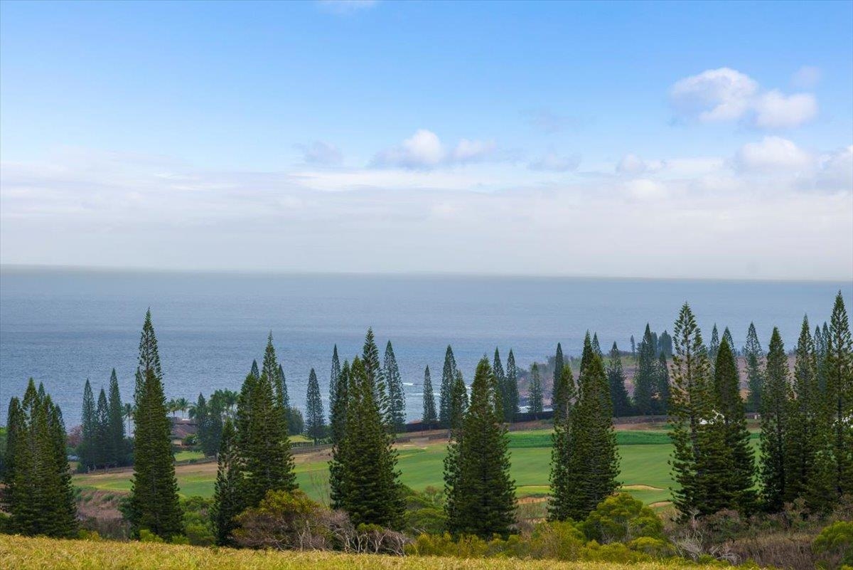 Located in one of Kapalua’s most sought-after gated communities, 265 Uki Uki Loop at Mahana Estates is a rare approximately 32,409 square foot ocean view homesite offering a true build-ready opportunity in a quiet golf course setting. Positioned along the 6th hole of the world-famous Kapalua Plantation Course, the property enjoys sweeping ocean views across Kapalua Bay toward Molokai, complemented by expansive views of the West Maui Mountains. The gently sloping lot has been cleared and graded, creating an ideal building envelope that supports efficient construction and optimal home placement. Offered shovel ready, the property includes completed building plans for a 3,716 square foot custom residence with an additional 1,203 square feet of covered lanai space designed for seamless indoor outdoor living. The planned layout features 4 bedrooms, 4.5 bathrooms, a dedicated office, and a separate guest wing with lock off flexibility. Outdoor living is enhanced with a 27.6 x 18 foot swimming pool, elevated spa, Baja shelf, and a 538 square foot garage. Mahana Estates offers private water, underground utilities, completed infrastructure, and protective height restrictions that preserve long term ocean and mountain view corridors. Just minutes from Kapalua Resort amenities including Kapalua Bay, the Plantation and Bay Golf Courses, Spa Montage, scenic hiking trails, and Fleming’s Beach, this homesite presents an exceptional opportunity to build a custom estate in one of Maui’s premier resort communities.
