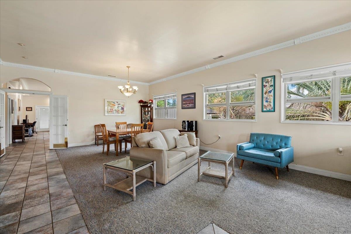 Hard to find, expansive, multi-family residence on the Pukalani Country Club golf course. This 4-bed, 3-bath 2476 square foot home boasts panoramic backyard mountain, ocean and golf course views, a tropical garden with pink ginger, bird of paradise, meyer lemon and mandarin orange trees. Property includes an attached studio with private entry. Nestled in a tranquil cul-de-sac, this designer's dream has an extra wide 3 car driveway and is sold partially furnished. Amenities include 2 ovens, 2 refrigerators, washer, dryer, dishwasher, multiple overhead fans and 2 central air-conditioner systems. Renovated in 2025, this home is one of the lowest priced per square foot on Maui. Conveniently located to elementary, middle and high schools, shopping, dining, gas stations, banks and just minutes away from the community swimming pool. No HOA and sold as is.