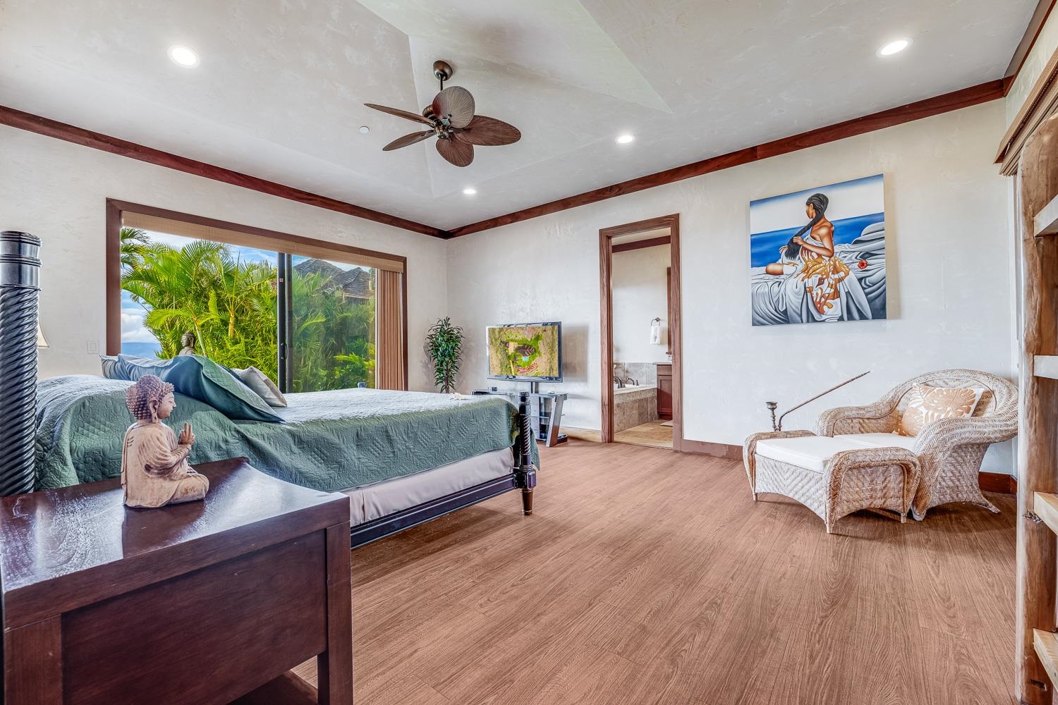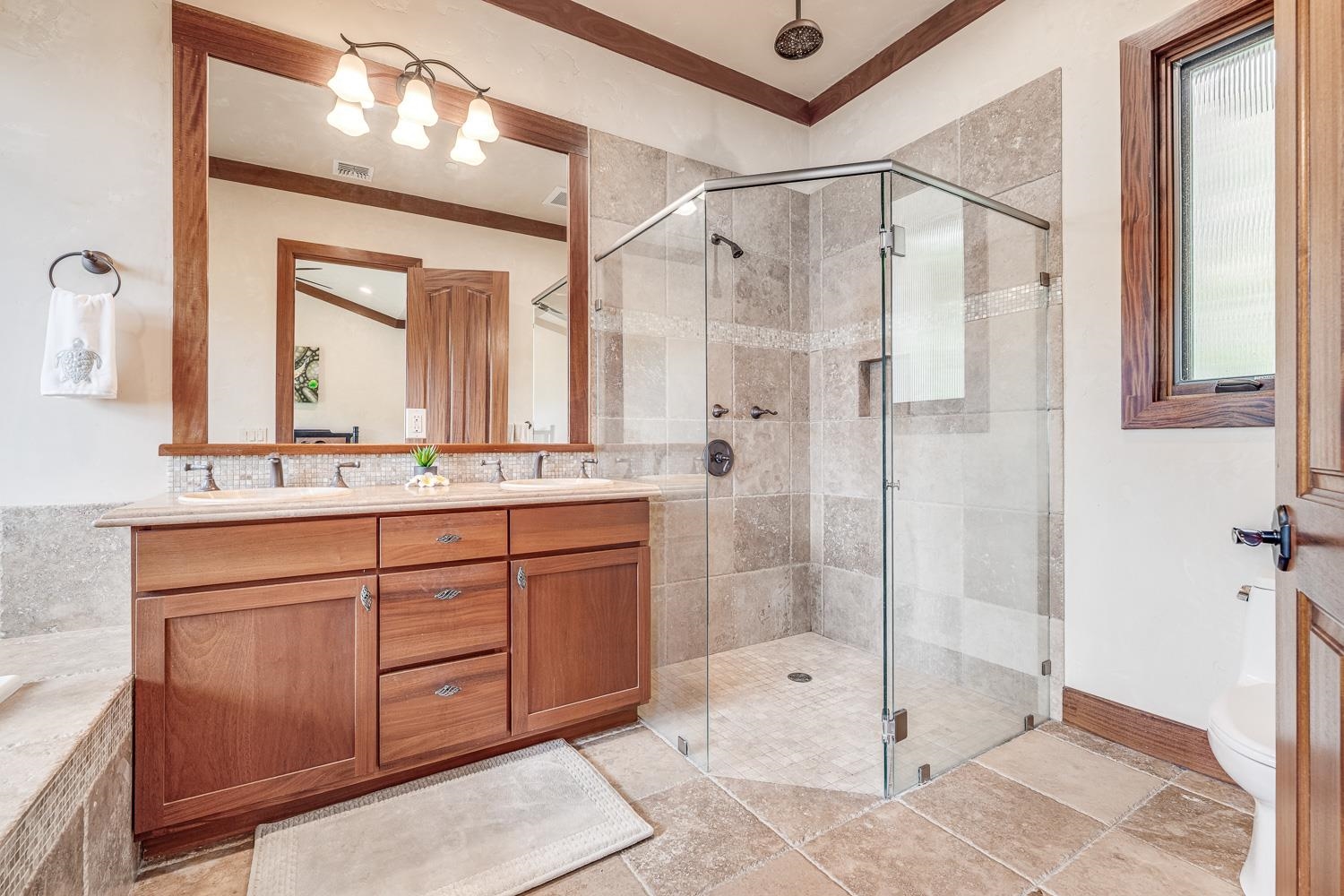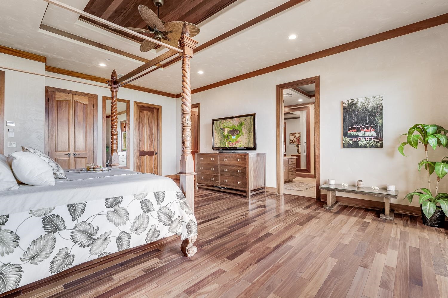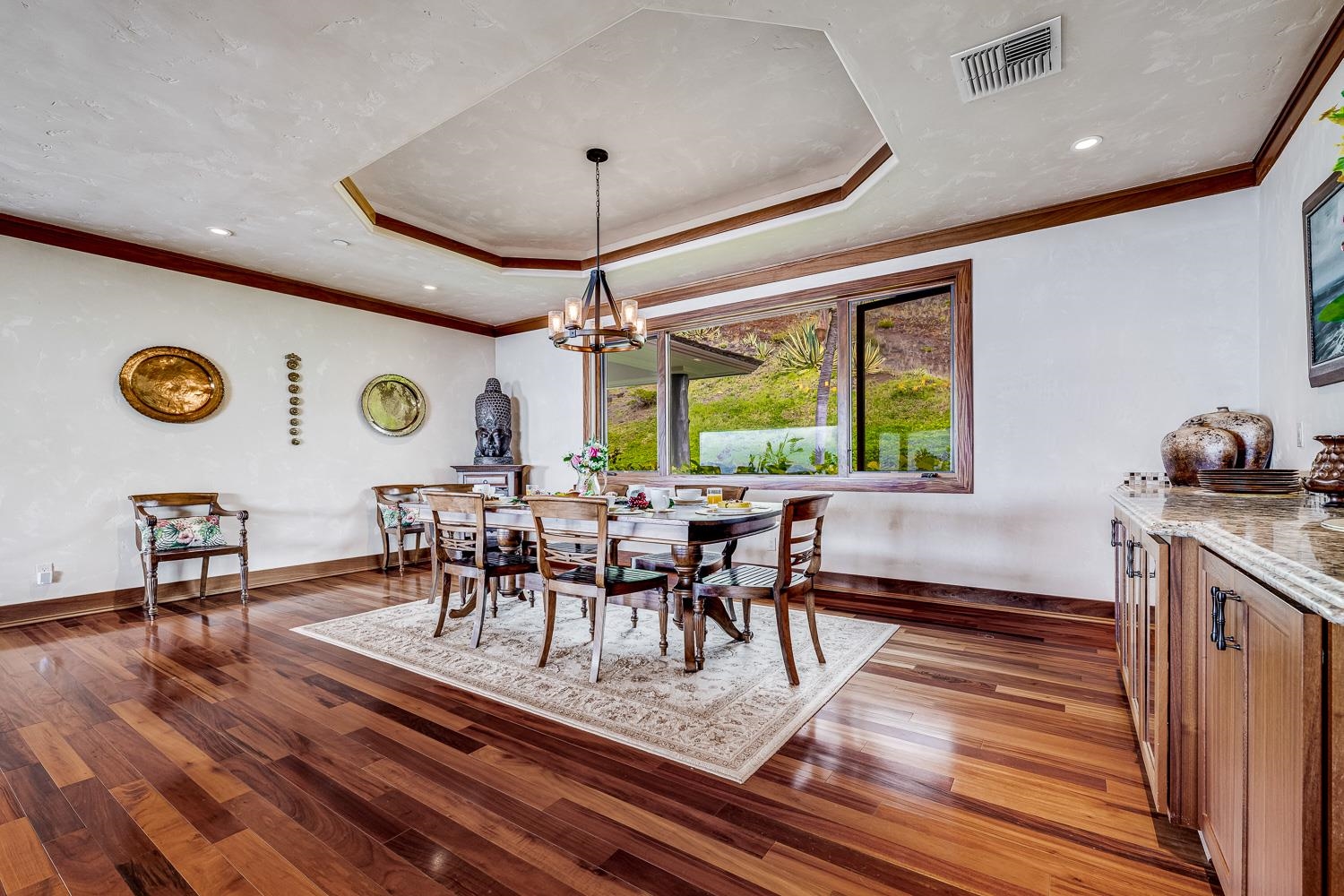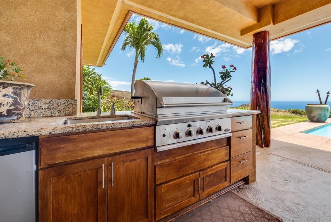 Perched at the top of tranquil Launiupoko, 81 Iliahi remains a landmark residence, now refreshed with thoughtful updates that elevate its already captivating design. The exterior has been newly painted, including the fascia, trim, and exterior doors. Inside, carpeting in the guest bedrooms and bonus room has been replaced with new laminate flooring, and all sliding-door glass has also been replaced. At nearly 1,000 feet above sea level, the home enjoys its own gentle microclimate and unobstructed 180-degree views of the Pacific, with Lanai and Molokai stretching across the horizon. The architecture continues to blend Balinese inspiration with luxurious functionality, expressed through four spacious bedrooms, a large dedicated office, and five beautifully finished bathrooms, each enriched with African Mahogany, Monkeypod, Venetian Plaster, and premium fixtures. The Great Room remains one of the home’s most unforgettable features. Folding pocket doors, with new glass, open wide to the covered lanai, creating a sweeping indoor–outdoor living experience and framing the panorama of the island of Lanai floating in the distance. The kitchen is equipped with top-tier appliances, custom wood cabinetry, and a large bay window positioned to capture the dramatic vista. A substantial center island offers both workspace and a relaxed gathering spot. Two serene Primary Bedroom Suites enjoy direct lanai access, spa-like baths with soaking tubs, and generous walk-in closets, while two additional Guest Suites provide comfort and privacy for family or visitors. Outdoors, the heated infinity pool remains a showpiece, warmed by an efficient solar system and set to overlook the rolling acreage below. Nearby, a separate, furnished guest house/ohana with a discreet outdoor shower offers an inviting retreat. The property is further supported by three 5,000-gallon water tanks with an independent delivery system, ensuring consistent access to both potable and agricultural water. Secluded, expansive, and newly renewed, this 35.7-acre Residential CPR estate blends elevated island style with natural beauty. 81 Iliahi remains a standout, both figuratively and literally, offering a private Maui sanctuary ready for its next steward. Don't miss the chance to make this fabulous property your own. Note this listing is a Residential CPR.