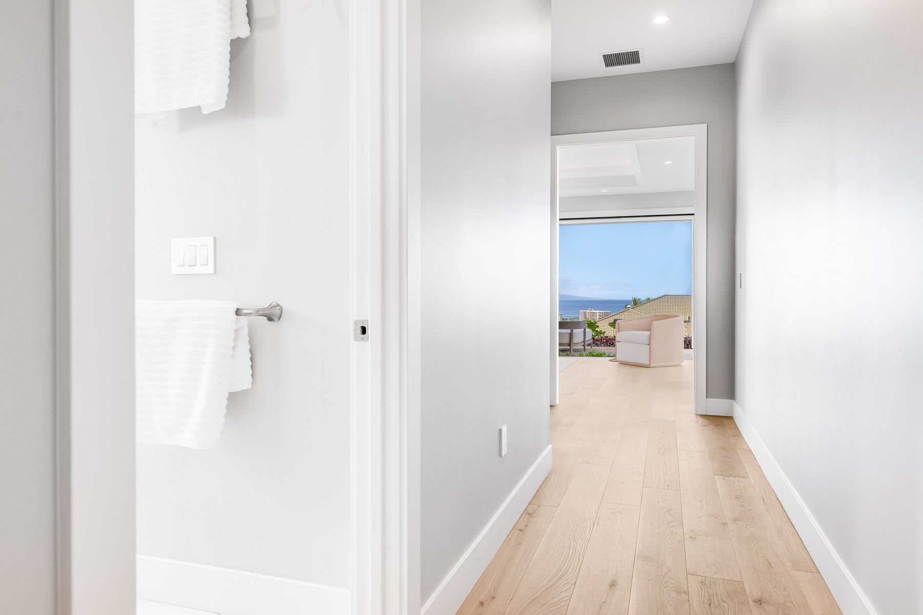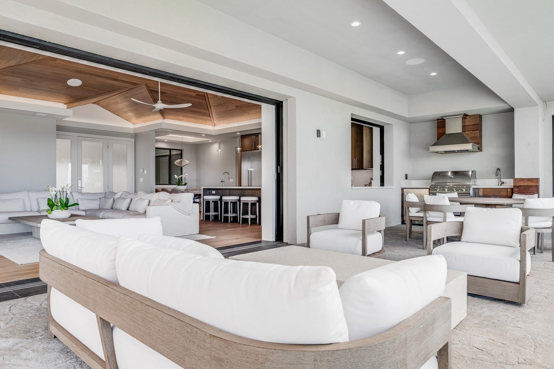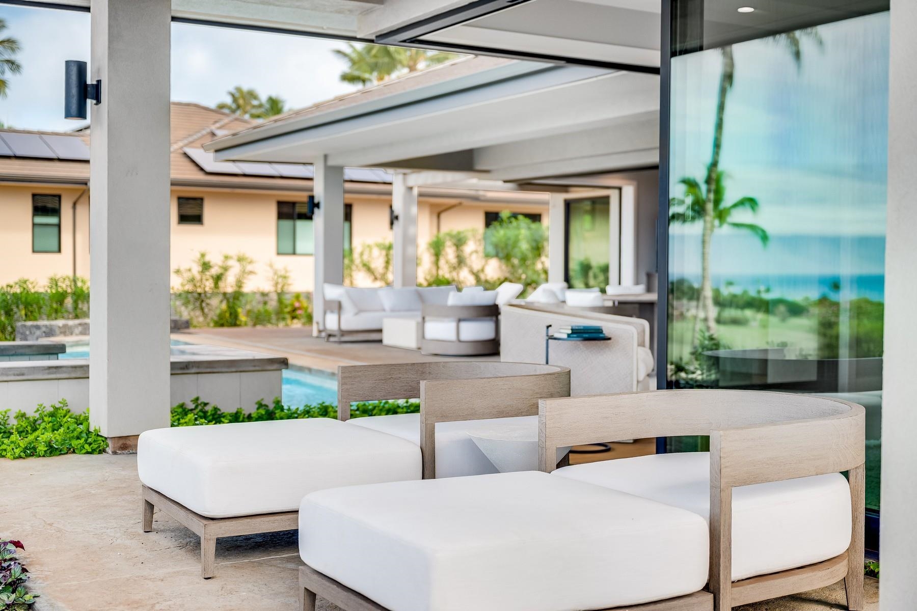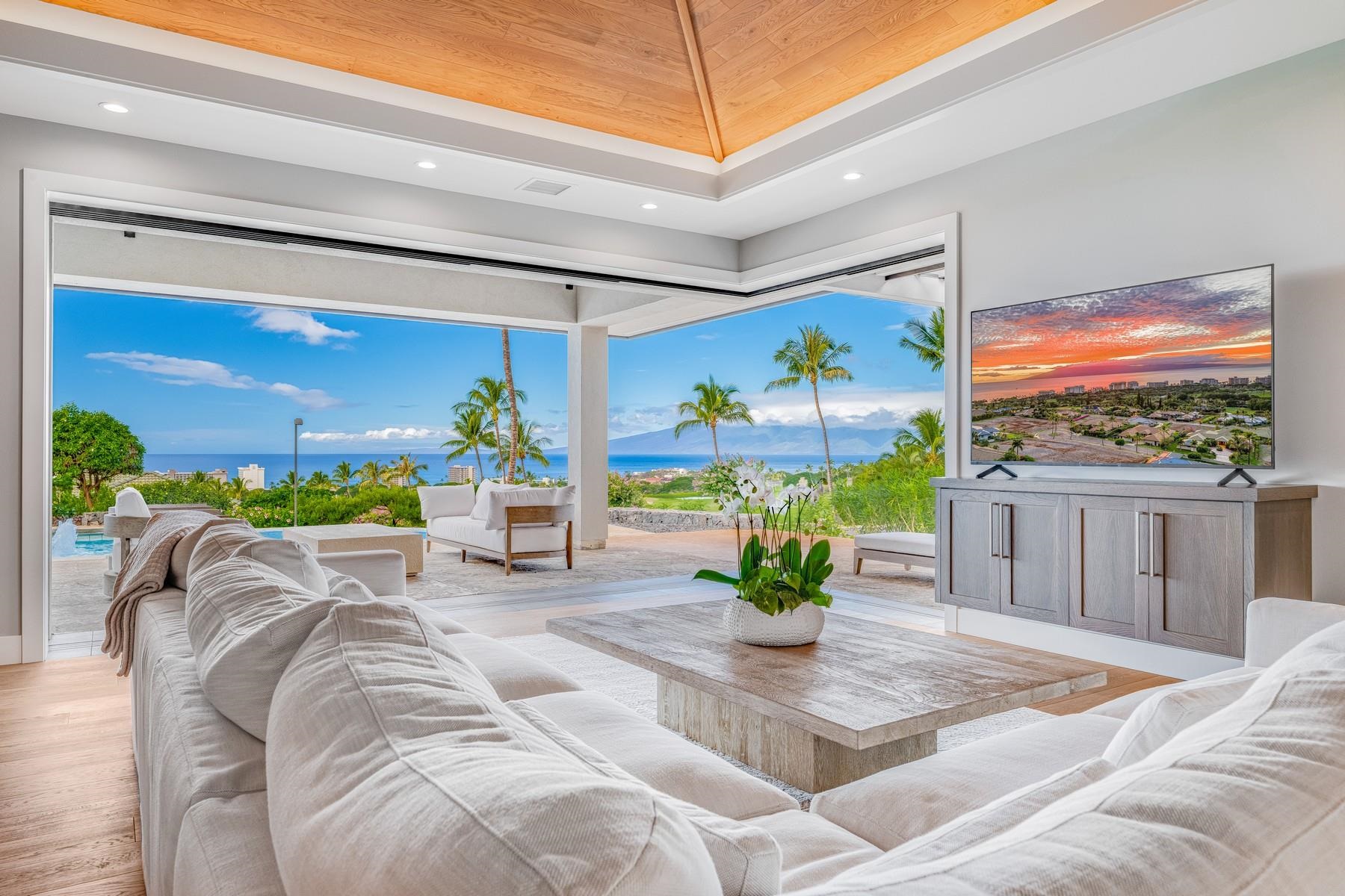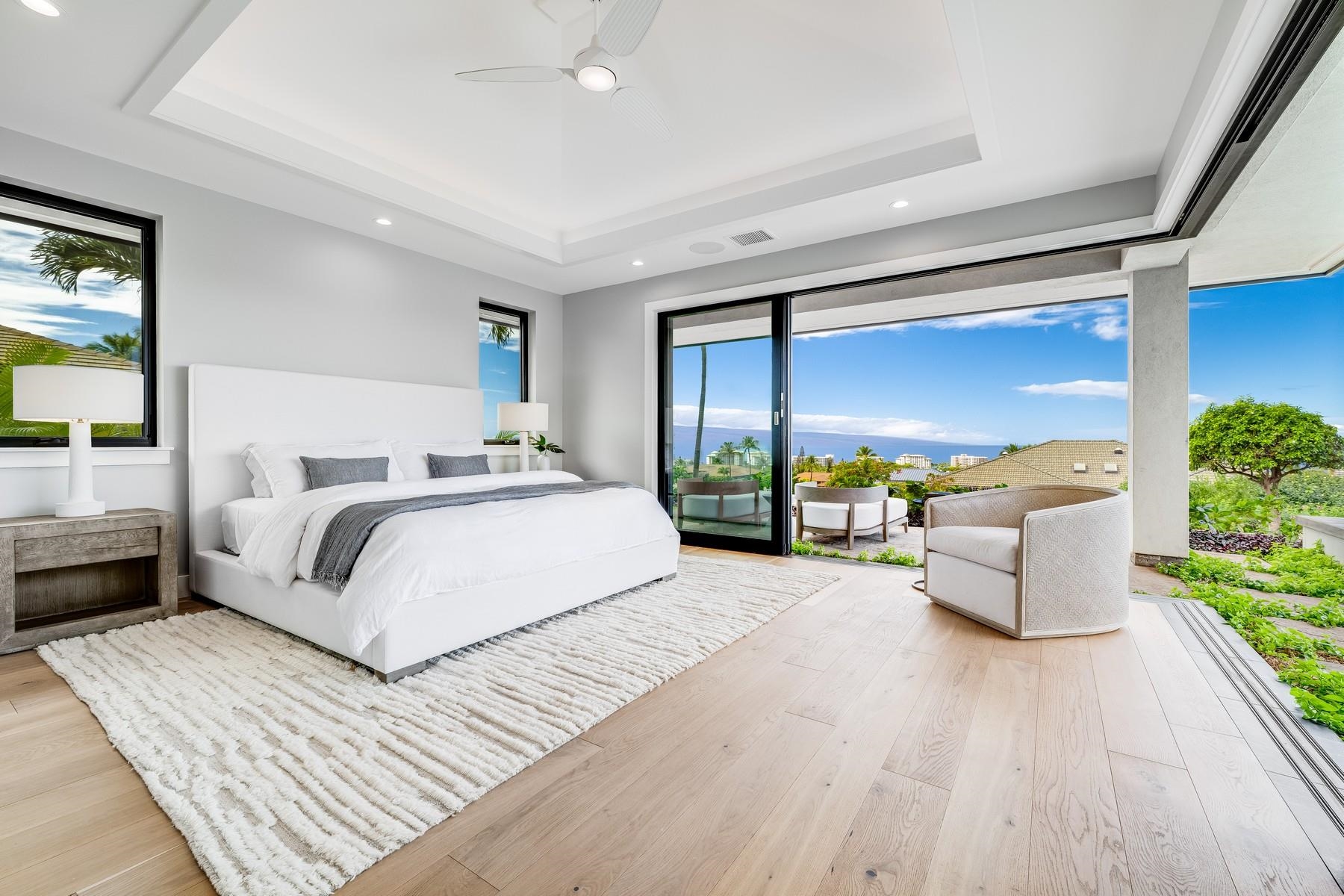 Discover elevated island living in one of Maui’s most desirable gated communities—Lanikeha at the Kaanapali Golf Estates. This exceptional single-level, newly built 4-bedroom custom residence offers refined craftsmanship, contemporary island design, and panoramic ocean views of the Pacific, Molokai, and Lanai, with breathtaking sunsets and seasonal whale watching. Designed for seamless indoor-outdoor living, the open-concept floor plan connects the living, dining, and kitchen areas, creating an ideal setting for entertaining. High-end finishes include French-cut, live-sawn wide-plank European White Oak wood floors, quartz countertops, custom cabinetry, and abundant natural light throughout. The gourmet chef’s kitchen features top-of-the-line Thermador appliances, a gas range, and a spacious quartz center island, complemented by an outdoor kitchen and BBQ area. Expansive covered lanais capture sweeping ocean and outer-island views. The home includes two luxurious primary suites, including a main retreat with a spa-inspired en-suite bath, private lanai access, and serene ocean vistas. Additional guest bedrooms offer comfort and privacy. A resort-style infinity-edge pool completes the outdoor experience, perfectly positioned to enjoy the stunning views. Lanikeha amenities include a Community Recreation Center with pool, fitness center, kitchen, and game room. Located minutes from Kaanapali Beach, championship golf courses, Whalers Village shopping and dining, luxury spas, and iconic Black Rock, this home offers an exceptional blend of luxury, comfort, and convenience.