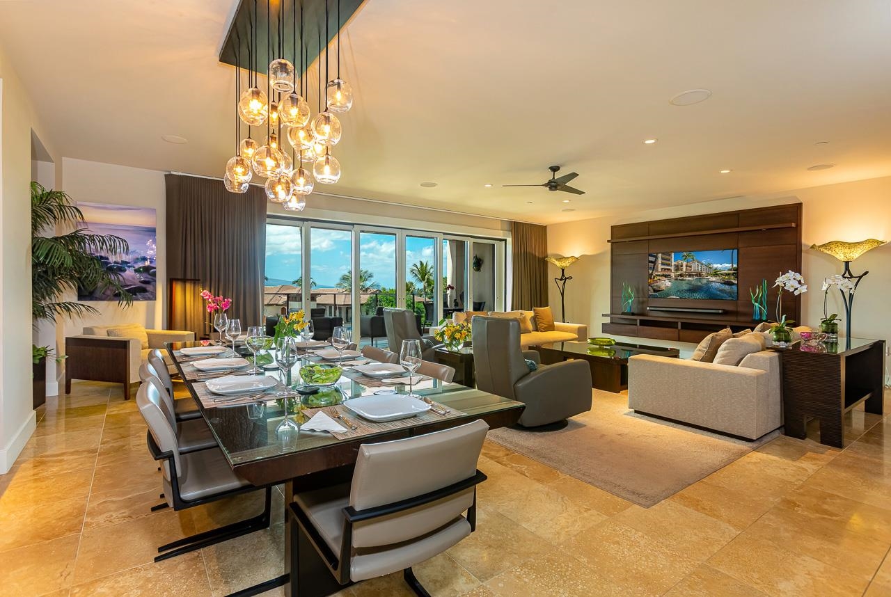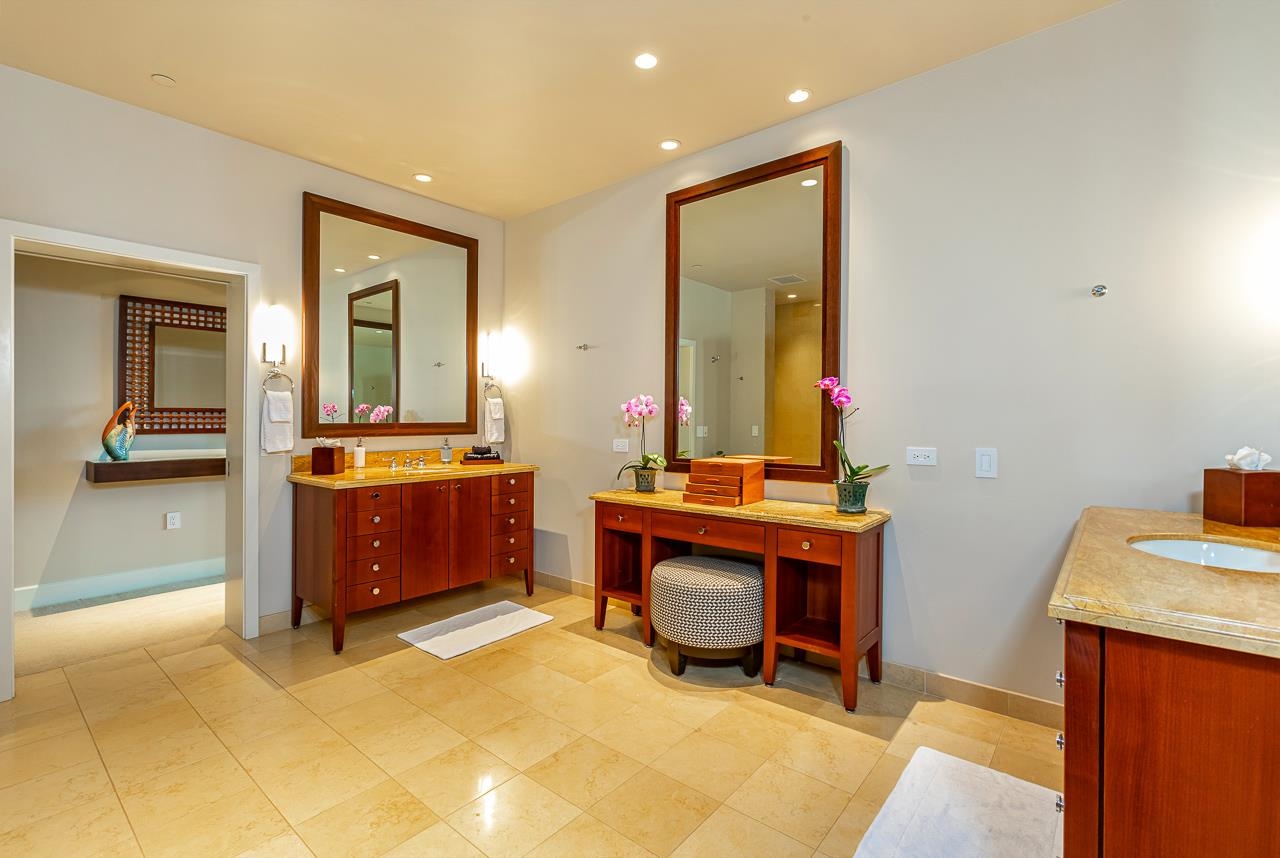 Where the ocean whispers at your doorstep & refined luxury defines every detail, Wailea Beach Villas K-208 presents a rare chance to own a Premier Beachfront retreat with Legal Hotel-Resort Zoning. Framed by the golden sands of Wailea Beach & steps from the Four Seasons Maui & The Grand Wailea, this luxurious villa is a front-row seat to the best of Maui, where sunrise coffee carries the scent of plumeria & sunset cocktails are paired with sweeping views of the Pacific & outer islands. Spanning approximately 2,892 s.f. of refined interiors & an additional 700 s.f. of covered lanai space, this 3-bd, 3-ba., Plus Spacious Den [Set up as a 4th Bedroom] penthouse residence lives as gracefully as it entertains. Seamless secure elevator access delivers you into a world of curated design & coastal elegance, where open-concept living spaces flow effortlessly between indoors & out. The great room is a sanctuary of style, anchored by fine custom furnishings from Holly Hunt, LA, including a built-in OLED media system that blends modern luxury with the tranquil tones of island life. Caesar-stone countertops in slate gray & a full-height glass tile backsplash create a clean, contemporary aesthetic in the gourmet kitchen, where a Bosch induction cooktop, Wolf oven & microwave, & dual 27-inch Sub-Zero refrigerators cater to the culinary enthusiast. Four thoughtfully appointed sleeping areas offer flexibility & privacy, each adorned with high-end Kravet & Schumacher fabrics, Sonos sound, & electronic shades for complete ambiance control. The primary suite features a custom leather & exotic-wood platform bed, spa-inspired bath, & custom hardwood dressing room cabinetry that transforms daily routines into rituals of serenity. A fourth bedroom/den offers built-in storage & a queen-plus sleeper, ideal for additional guests or a work-from-paradise setup. Beyond the interiors, the main ocean view lanai invites alfresco dining with a Viking built-in BBQ, while the rear lanai offers a more intimate outdoor retreat; each designed to capture Maui’s legendary sunsets & warm breezes. Two updatedv central air conditioning systems provide zoned climate control. As part of a low-density, gated community of just 98 oceanfront residences, Wailea Beach Villas owners enjoy exclusive amenities including 24-hour security, concierge service, a beachfront infinity pool & spa, a serenity pool, & a state-of-the-art fitness center. Immediately adjacent, the revered Shops at Wailea offer fine dining, world-class shopping & an inspiring collection of Maui’s finest art galleries. Whether you envision it as a full-time residence, luxury vacation home, or excellent historical rental, K-208 is more than a property, it is a rare TURN KEY offering that encapsulates the spirit of Wailea: effortless, elegant, & unforgettable.