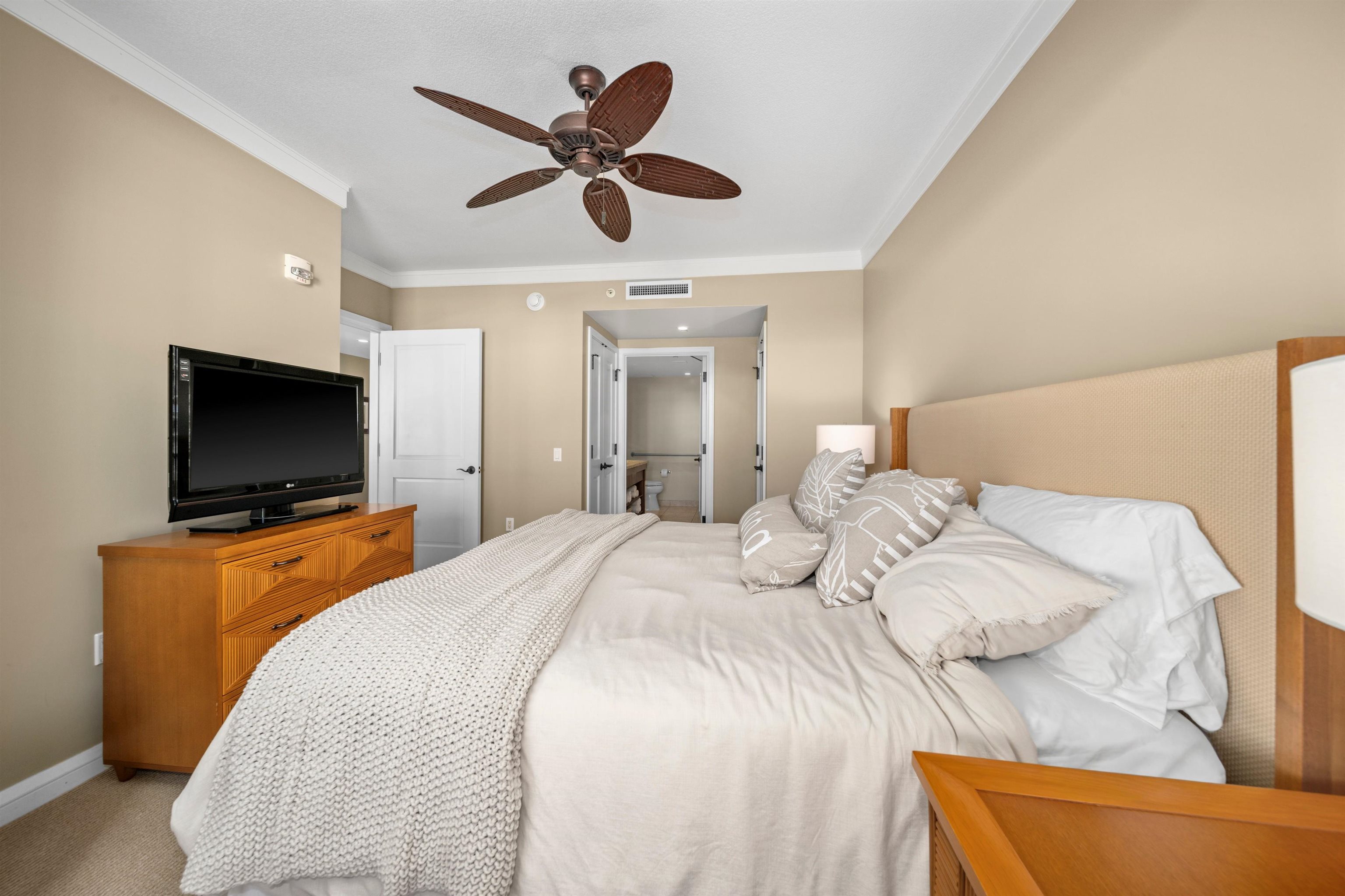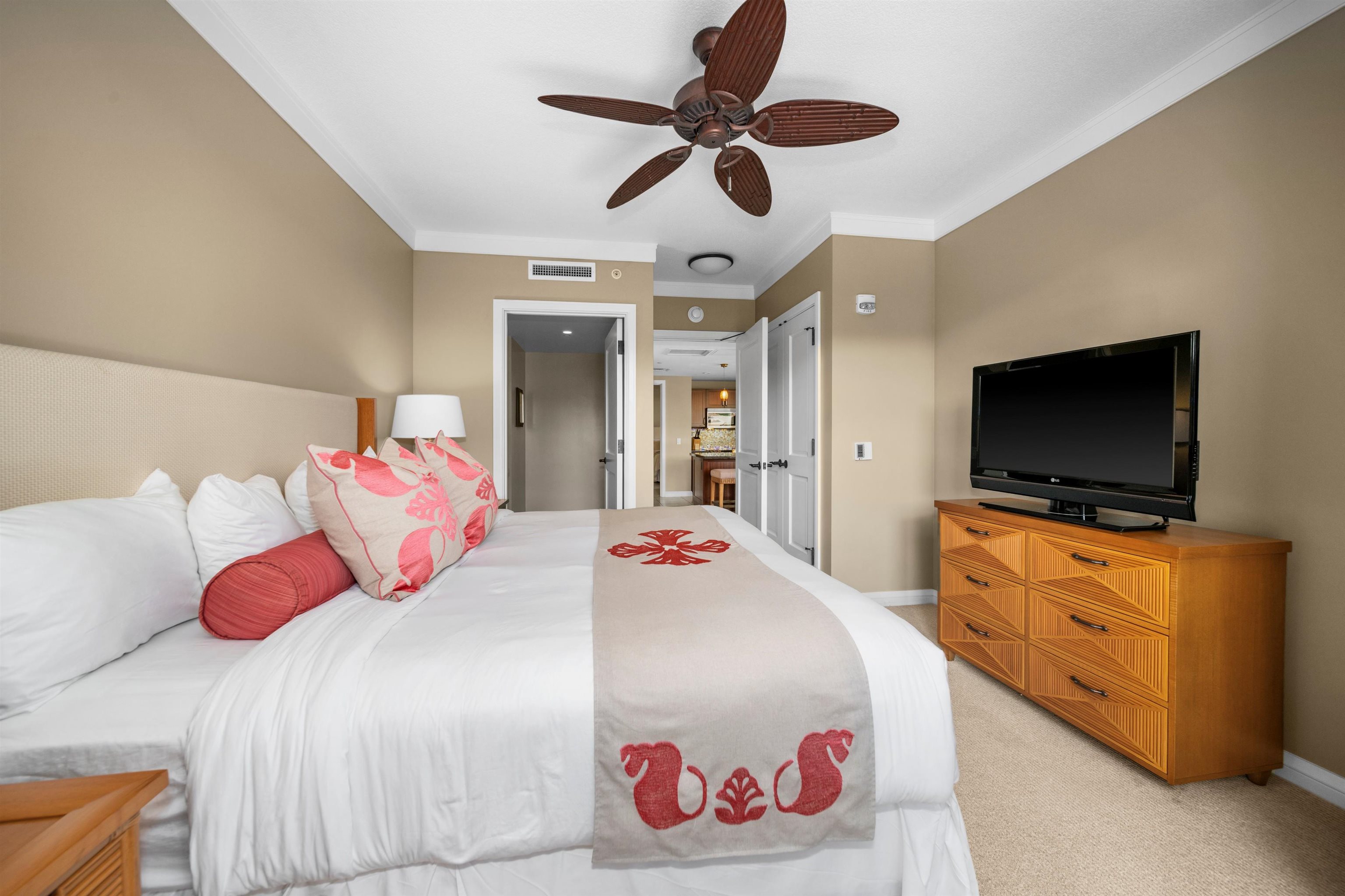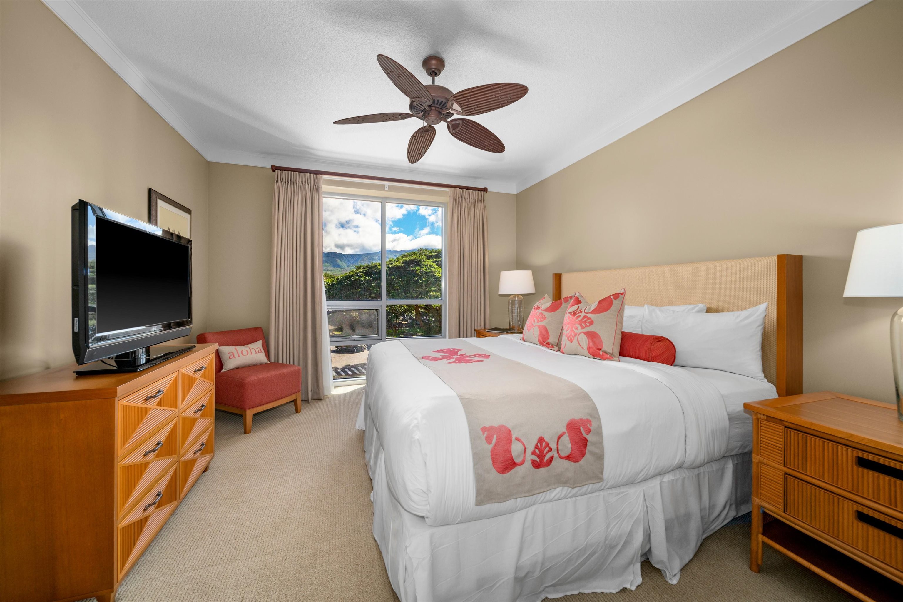 Honua Kai Hokulani 336 presents a rare opportunity to own a never-rented, impeccably maintained 2-bedroom, 2-bath corner residence in one of North Kaanapali's most sought-after resort communities. Located on the third floor, this desirable corner unit enjoys enhanced natural light, with bifold doors that open to a generously sized covered lanai ideal for indoor–outdoor island living. The open -concept floor plan features a well-appointed kitchen with granite countertops, stainless steel appliances, and bar seating that flows seamlessly into the living and dining areas. Both bedrooms are thoughtfully positioned for privacy, with the primary suite offering lanai access and an en-suite bath with dual vanities and a soaking tub. The residence has been owner-occupied only and shows pride of ownership throughout. Situated within the Hokulani tower at Honua Kai Resort, this condominium is part of a full-service beachfront community featuring multiple resort-style pools, hot tubs, a fitness center, landscaped grounds, and direct access to the beach. Enjoy close proximity to walking paths, dining, shopping, and all that West Maui has to offer. Honua Kai Hokulani 336 is offered fully furnished and move-in ready, providing an exceptional opportunity for those seeking a primary residence, second home or a hotel zoned vacation rental within a premier West Maui condominium resort.