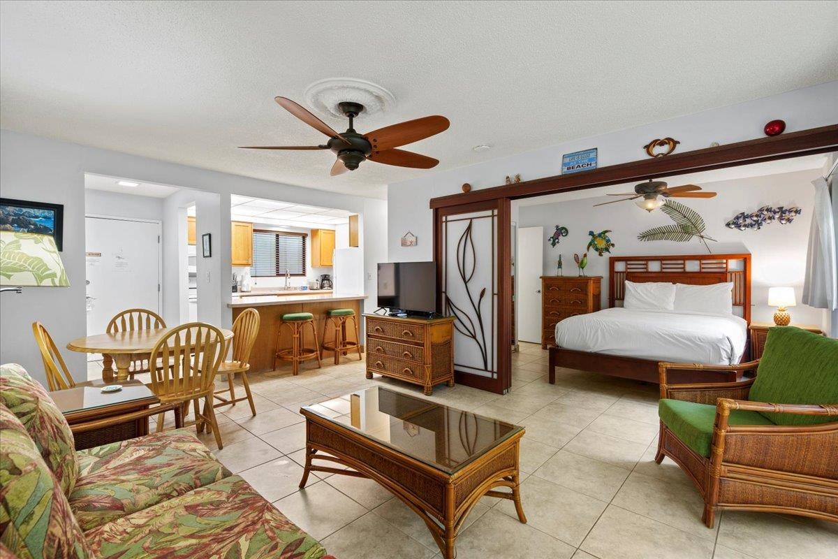 Hono Kai B15 is a beautifully furnished and well-appointed second-floor 1-bedroom, 1-bath condo offering tropical views from a private lanai. Recent upgrades include fresh interior paint, new ceiling fans, and custom mahogany shoji doors. Hono Kai is a quaint beachfront property just steps from a six-mile stretch of sandy beach. Enjoy ocean and outer-island views from the oceanfront pool and barbecue area. Located in Maalaea Bay near shops, restaurants, and attractions—walk to the Maui Ocean Center, Maalaea Harbor, and nearby activities including mini golf. Convenient access to Lahaina, Kihei, and Kahului Airport makes this an excellent full-time residence, second home, or investment opportunity.