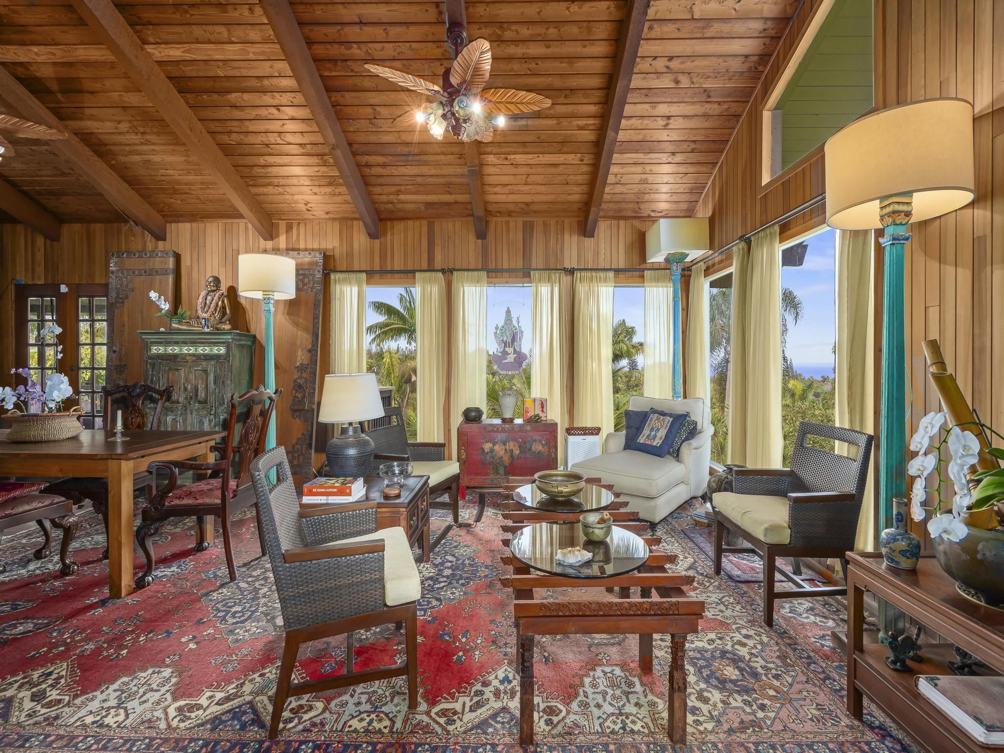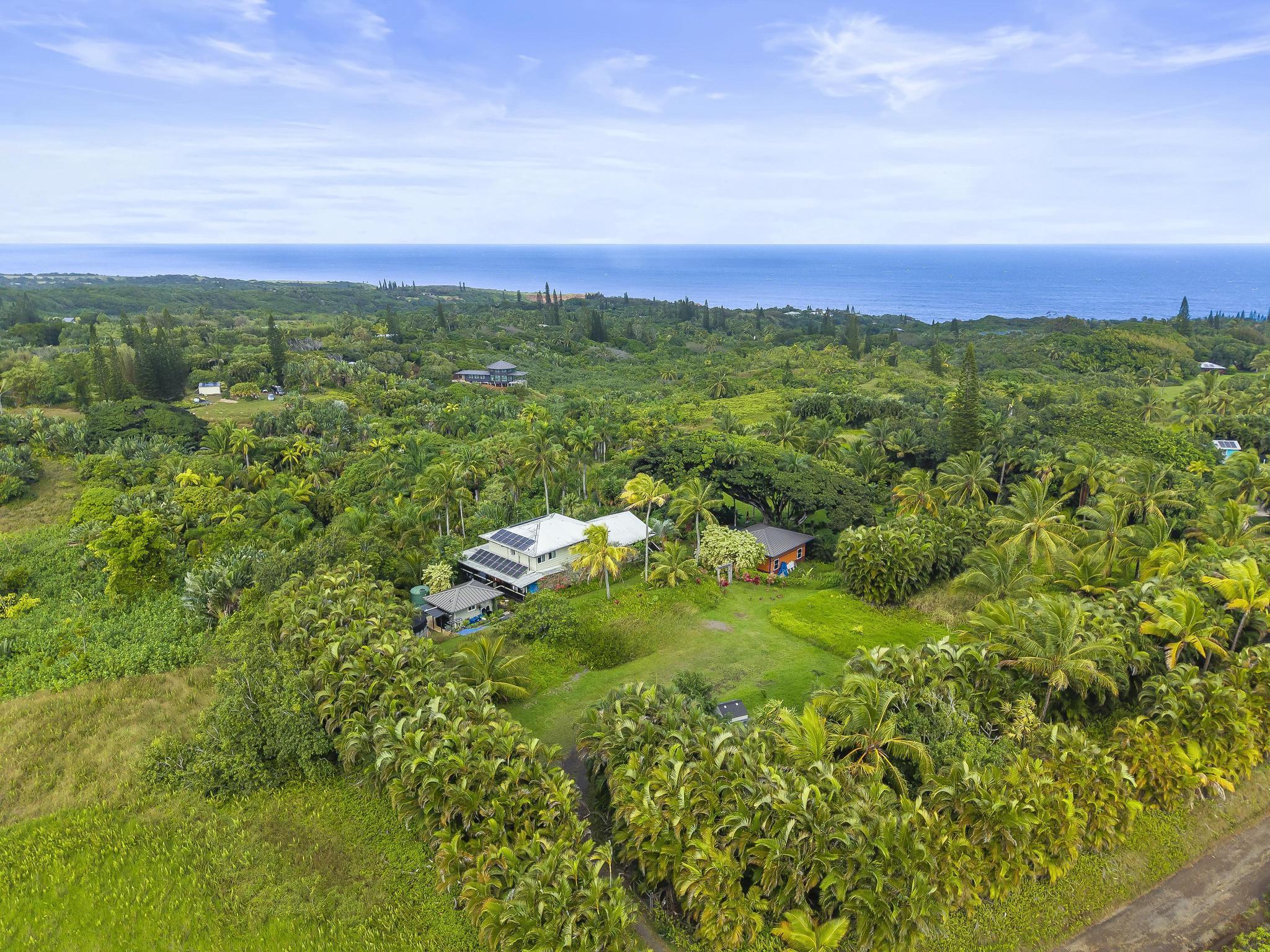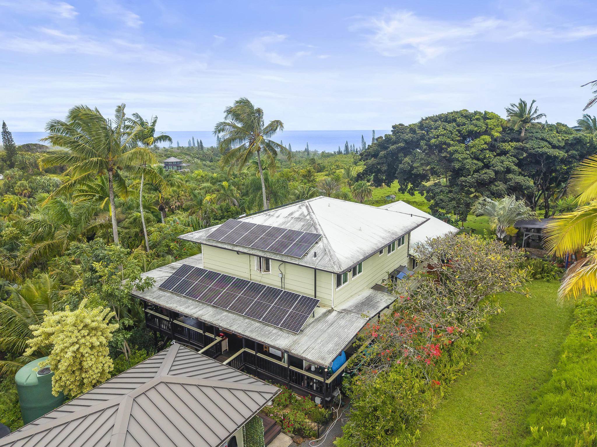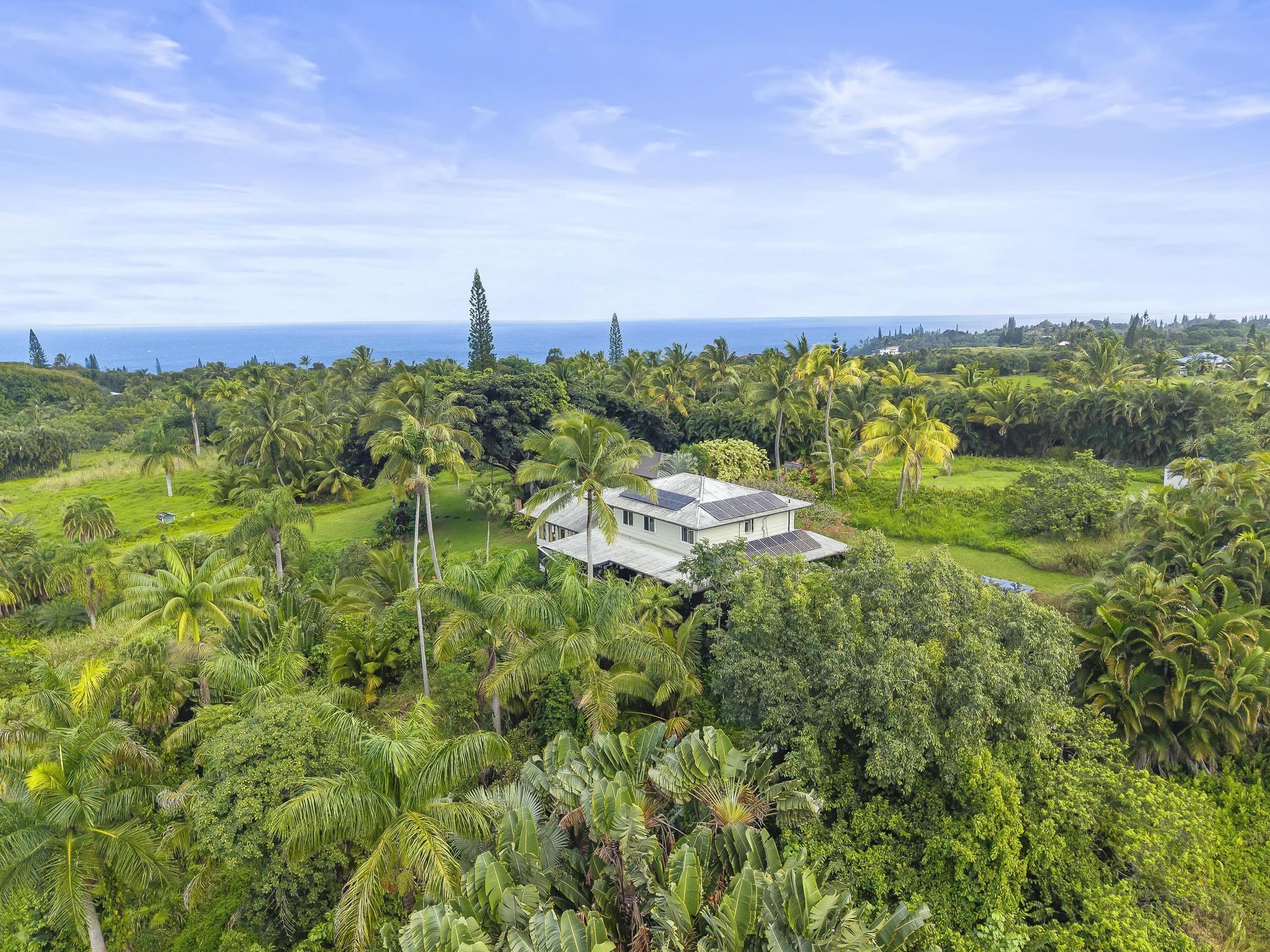 Serene estate set on 3.7 lush, tropical acres with sweeping ocean views, located just past Twin Falls in one of Maui’s most established off-grid communities. This peaceful and private property offers a retreat-like atmosphere, featuring an extensive collection of mature palms, a perennial stream, and gentle ponds that invite reflection and creative expression. Meandering paths encourage slow walks and quiet moments of connection with the land, with endless potential for expanded tropical gardens. The property invites you to grow your own food and live a self-sustaining lifestyle. At night, it feels as though you could reach out and touch the stars. Nestled within the grounds is a tranquil meditation temple designed to calm the heart and center the mind, along with a thoughtfully curated meditation garden adorned with beautiful sculptures that add an artistic, soulful presence to the landscape. The land feels intentional, grounded, and naturally inspiring—ideal for those drawn to mindful, creative living. The two-story residence features 5 bedrooms and 6.5 baths, complemented by a dedicated library and an additional computer room—well-suited for study, remote work, or creative pursuits. An expansive covered deck capturing panoramic ocean and garden views. An opportunity for those seeking privacy, tranquility. Seller financing is offered.