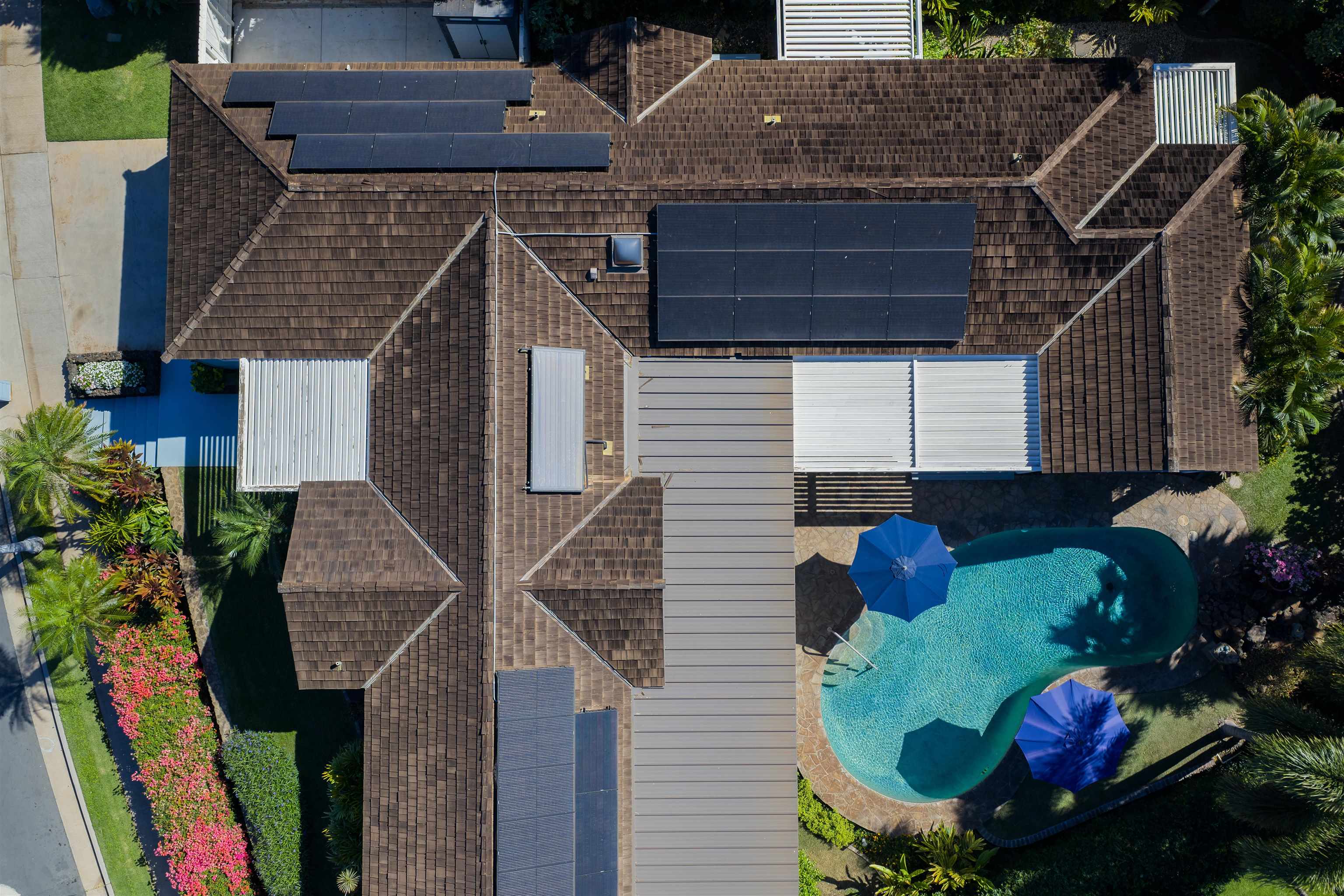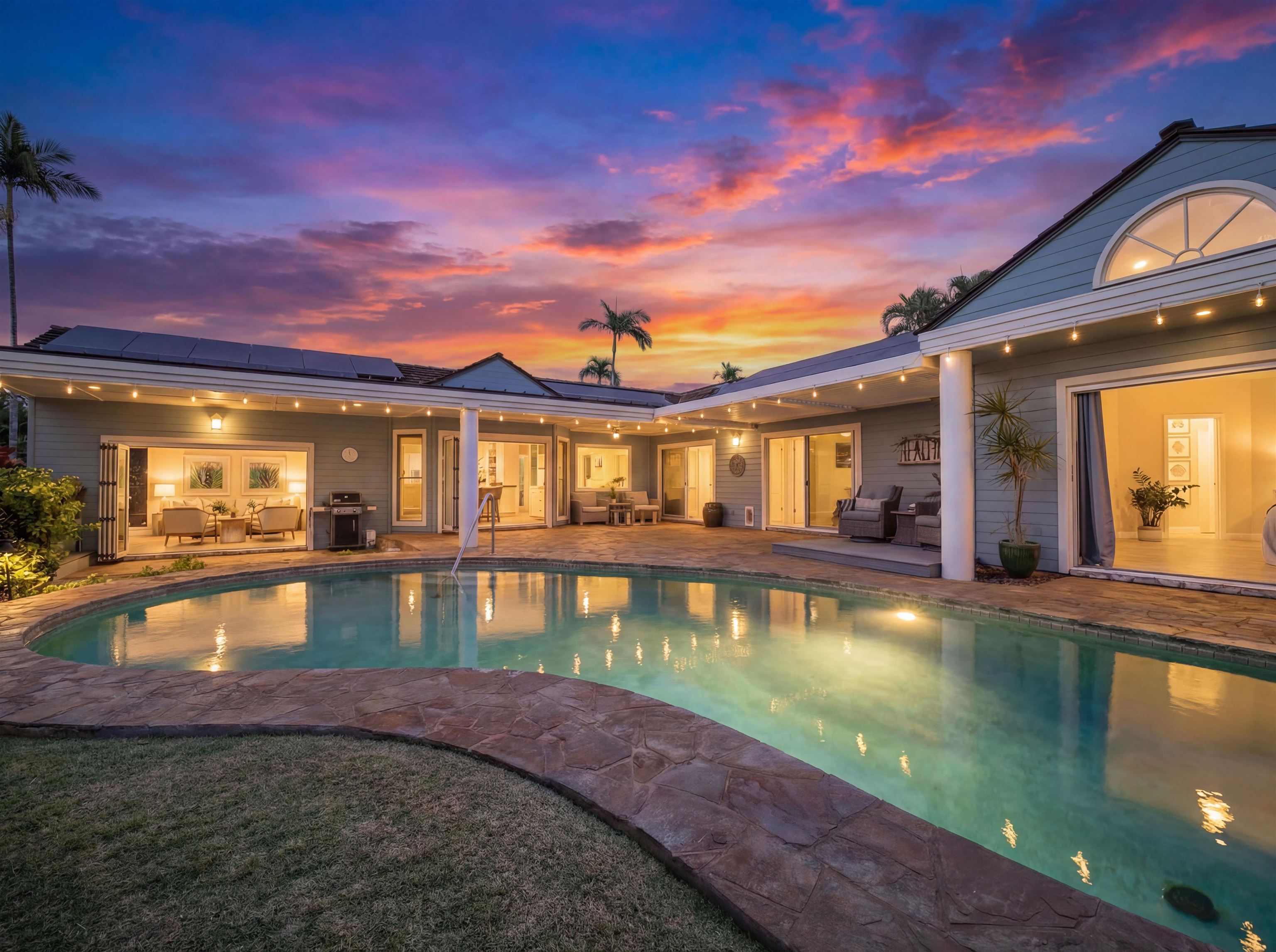 This beautiful Gem in the desirable Wailea Kialoa neighborhood is aptly named "Hale Maluhia Ke Ola", which is Hawaiian for "House of Peace and Safety". Step inside this single level Wailea home and you won't want to leave it's peaceful, private, outdoor courtyard with a luxurious heated swimming pool and plenty of room to relax on lounge chairs or dine poolside on your expansive covered lanai. Newer glass accordion doors allow for true indoor outdoor living with ample sunlight and gentle breezes, all while enjoying views to the exquisite courtyard. There is also a beautiful ocean view from the living room, kitchen and an outdoor sitting area that is the perfect place to take in the views and the breathtaking Maui sunsets. Home Chef's will appreciate cooking with the gas stove. There are energy efficient split A/C's in every room to keep you cool and owned photovoltaic panels on the roof with two Tesla Power wall batteries to keep your energy costs down. There are 3 spacious bedrooms and 2 bathrooms, all remodeled with every detail in mind. Also, to note, Wailea Kialoa is one of the Wailea Communities with Golf Privileges at the Wailea Golf Club. Call your favorite REALTORĀ® for a private showing of this one of a kind property!