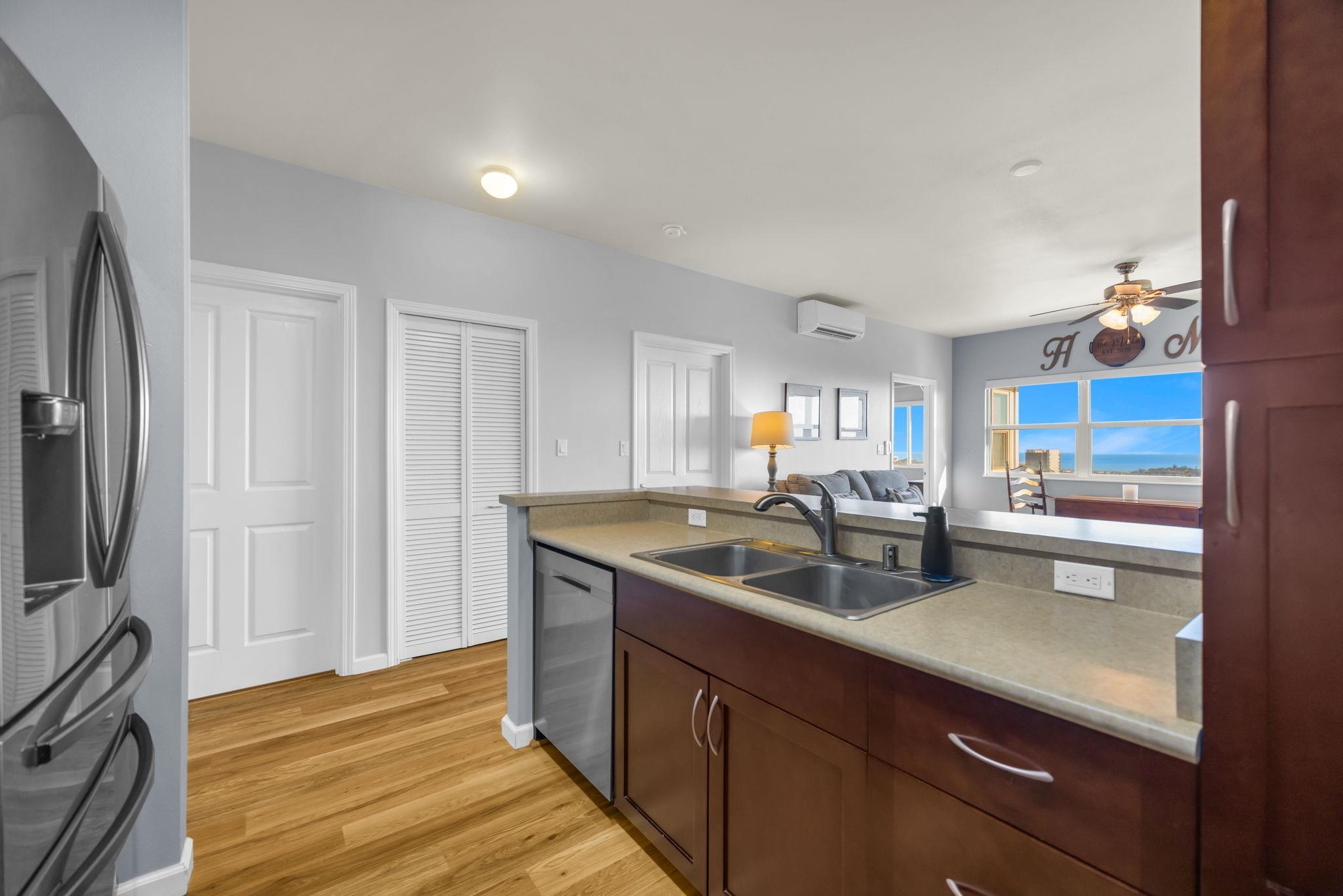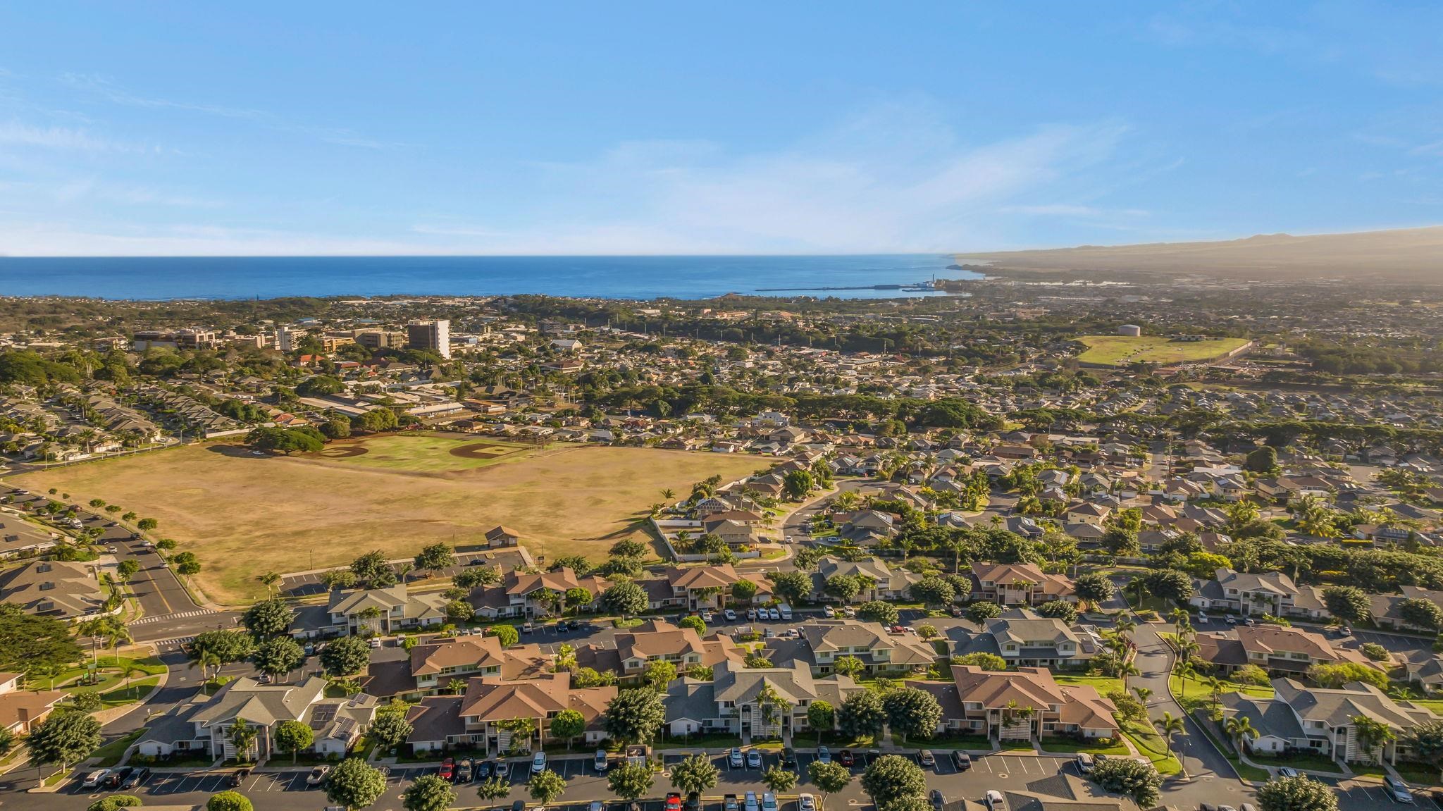 Welcome to unit 1605 in the highly sought-after Ho'olea Terrace community, where stunning ocean and mountain views await you. This beautifully maintained 2-bedroom, 1.5-bathroom condo is situated on the top floor, offering the sweeping vistas of the Pacific Ocean and Haleakala. Inside, you'll find thoughtful upgrades throughout, starting with the gorgeous laminate floors, new split air system, appliances and more. The open-concept living area is perfect for relaxing or entertaining, with large windows framing the breathtaking views. Additional perks include two close proximity deeded parking stalls (#314 and #216), designed walking paths and a pet-friendly complex. Located in the vibrant Kehalani Community, you'll be just minutes from shops, dining, schools,—including Pu'ukui Elementary School—Foodland, Longs, Walgreens, Starbucks and more. Don’t miss your chance to own this move-in ready condo with upgrades, views, and a fantastic location on Maui.