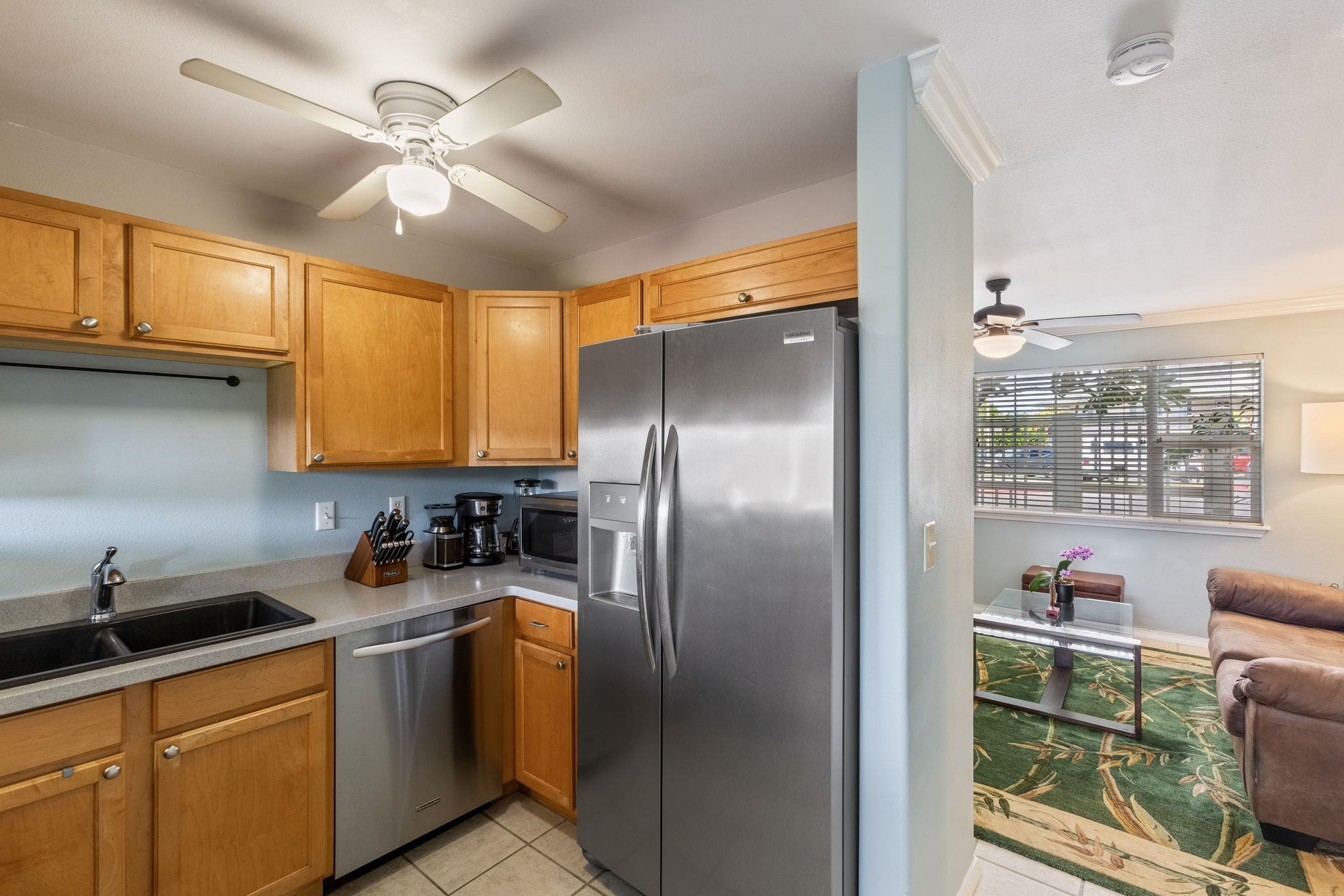 Welcome to Villas at Kenolio 3D, a rare opportunity to own a beautifully upgraded, partially furnished 2-bedroom, 2-bath ground-floor condo in one of North Kihei’s most desirable, pet-friendly communities. Located in the highly coveted Building 3, the only four-unit building in the complex, this residence offers exceptional privacy, tranquility, and a premier interior location away from the road. Enjoy seamless indoor-outdoor living with a covered lanai overlooking expansive, lush green space, perfect for morning coffee, evening relaxation, and taking in Maui’s gentle island breezes. Just one block from Kalepolepo Beach Park, you’re ideally positioned for beach walks, paddling, or catching Maui’s unforgettable sunsets, all while remaining tucked into a quiet residential setting. Inside, the condo is thoughtfully appointed and truly turnkey, featuring stylish furnishings, upgraded stainless steel appliances, a stacked washer and dryer, a newer water heater, and four split A/C units for year-round comfort. The ground-floor layout provides easy access with no stairs, making this an ideal primary residence, second home, or long-term investment property. Villas at Kenolio offers resort-style amenities including a large saline swimming pool, spa, fitness center, BBQ areas, picnic tables, and a playground, all surrounded by beautifully maintained tropical landscaping. Two tandem, deeded parking stalls are conveniently located just outside the front door. Peaceful, private, and perfectly positioned near the beach, this is Maui living at its best.