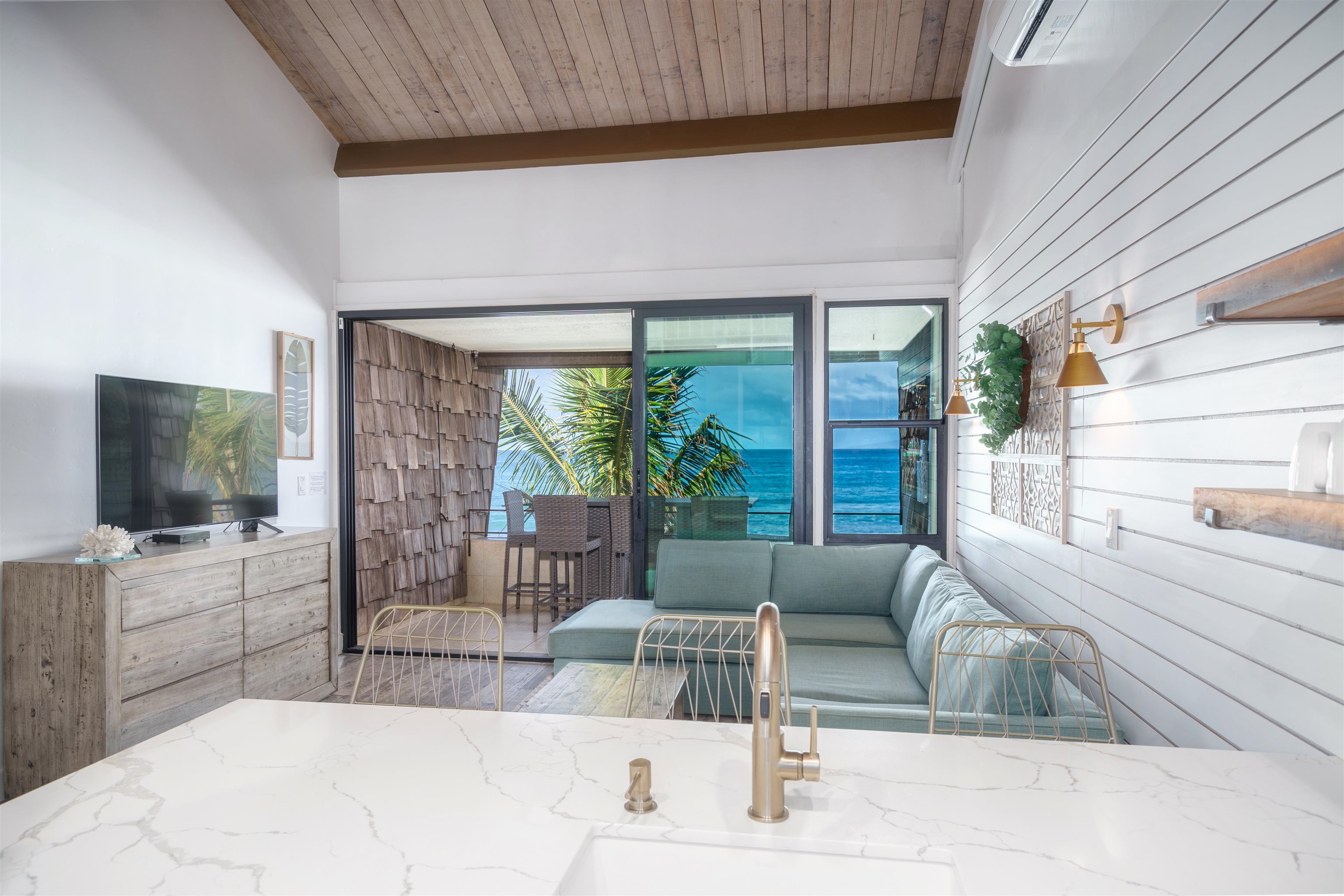 Exceptionally successful, BUSINESS-ZONED vacation rental. Positioned at the edge of the ocean, this rare offering delivers sweeping, unobstructed ocean views, dramatic sunsets, whale watching, and daily sightings of sea turtles. Renovated with a refined coastal aesthetic—clean, modern, and timeless. Custom design and furnishings create a turnkey investment that feels brand new. An expanded floor plan with vaulted ceilings sets this unit apart, giving it an open, airy feel. The custom, redesigned kitchen is equipped with upgraded finishes and high-end features, perfect for entertaining or cooking family meals while the sun sets over the water. A dedicated bar and wine storage area adds both function and sophistication, while the lanai becomes a natural extension of the living space—ideal for dining while overlooking the ocean. Unlike large resort-style complexes, this boutique oceanfront building offers a rare sense of privacy and calm —an understated luxury increasingly difficult to find on Maui. Direct ocean access is available via steps along the seawall for snorkeling and turtle encounters, while sandy beach access is immediately next door. All comments, data is provided by seller or seller's representatives. Buyer to confirm all & hold all parties harmless from any discrepancy data in the mls and advertising. Limited Service–Data Entry Addendum signed by seller/s must be signed by buyer/s with Purchase Contract.