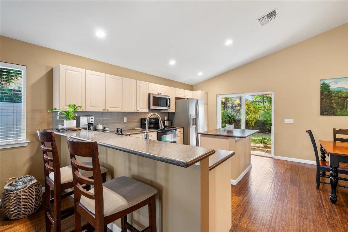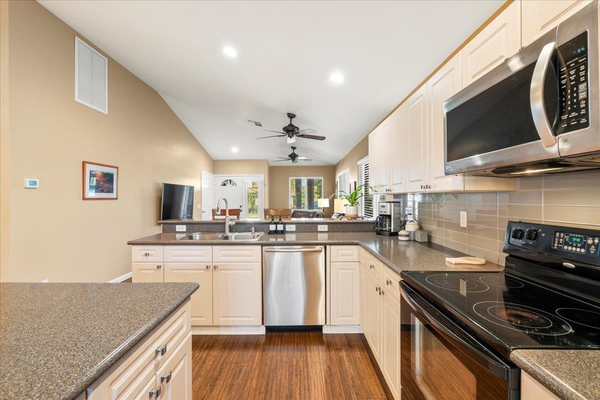 Located in The Legends at Maui Lani, this well-maintained 3-bedroom, 2-bath residence offers a clean, comfortable single-level living experience in one of Central Maui’s most desirable neighborhoods. The home features an owned photovoltaic system with LG battery backup, central air conditioning, and solar hot water for energy efficiency and year-round comfort. Durable Monier tile roofing and Hardie siding provide long-term value and low-maintenance appeal. Inside, the functional layout is highlighted by renovated flooring throughout and a recently updated primary bathroom with a refined, contemporary finish. The open living areas flow naturally, making the home equally suited for everyday living and entertaining. Conveniently located near parks, schools, golf, shopping, and medical facilities, this property combines thoughtful upgrades with the ease of Maui Lani living.