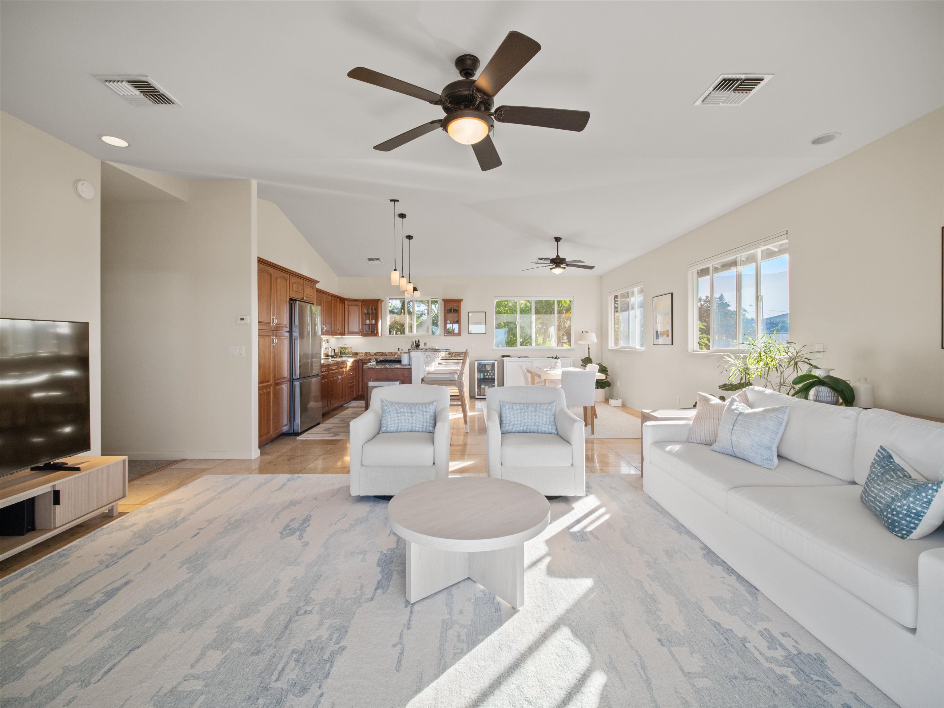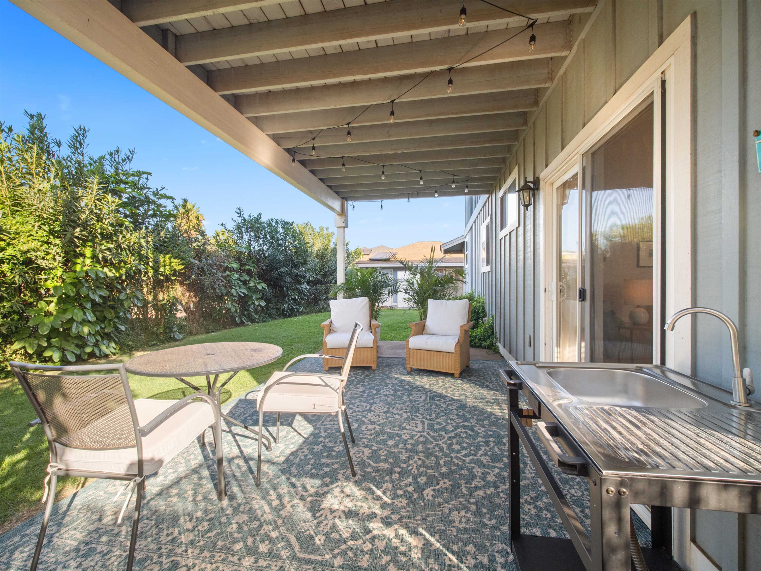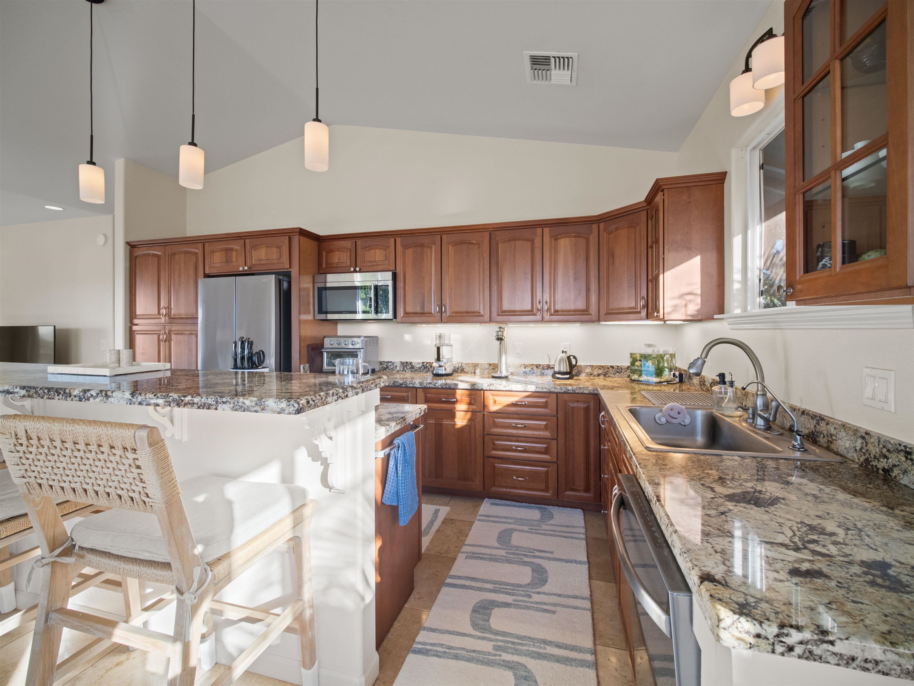 Home with Detached Cottage in highly sought after Honu Alahele neighborhood. Walking distance to the beach, dog park, ABC Store, bakery, Kihei Canoe Club and Kihei Farmers Market. The main house has ocean view from living room, dining room and kitchen. There are travertine floors and granite counter tops in the kitchen and both bathrooms. There is central A/C throughout the main house and cottage. Large master suite upstairs with ensuite bathroom and walk-in closet. There are 2 bedrooms with a den and laundry room downstairs. House and cottage are currently rented. Cottage lease expires 10/31/26 and Main House lease expires 11/15/26. Listor must be present for all showings. 48 Hour notice for all showings. Square footage to be confirmed by appraisal. All improvements may not conform to County records.