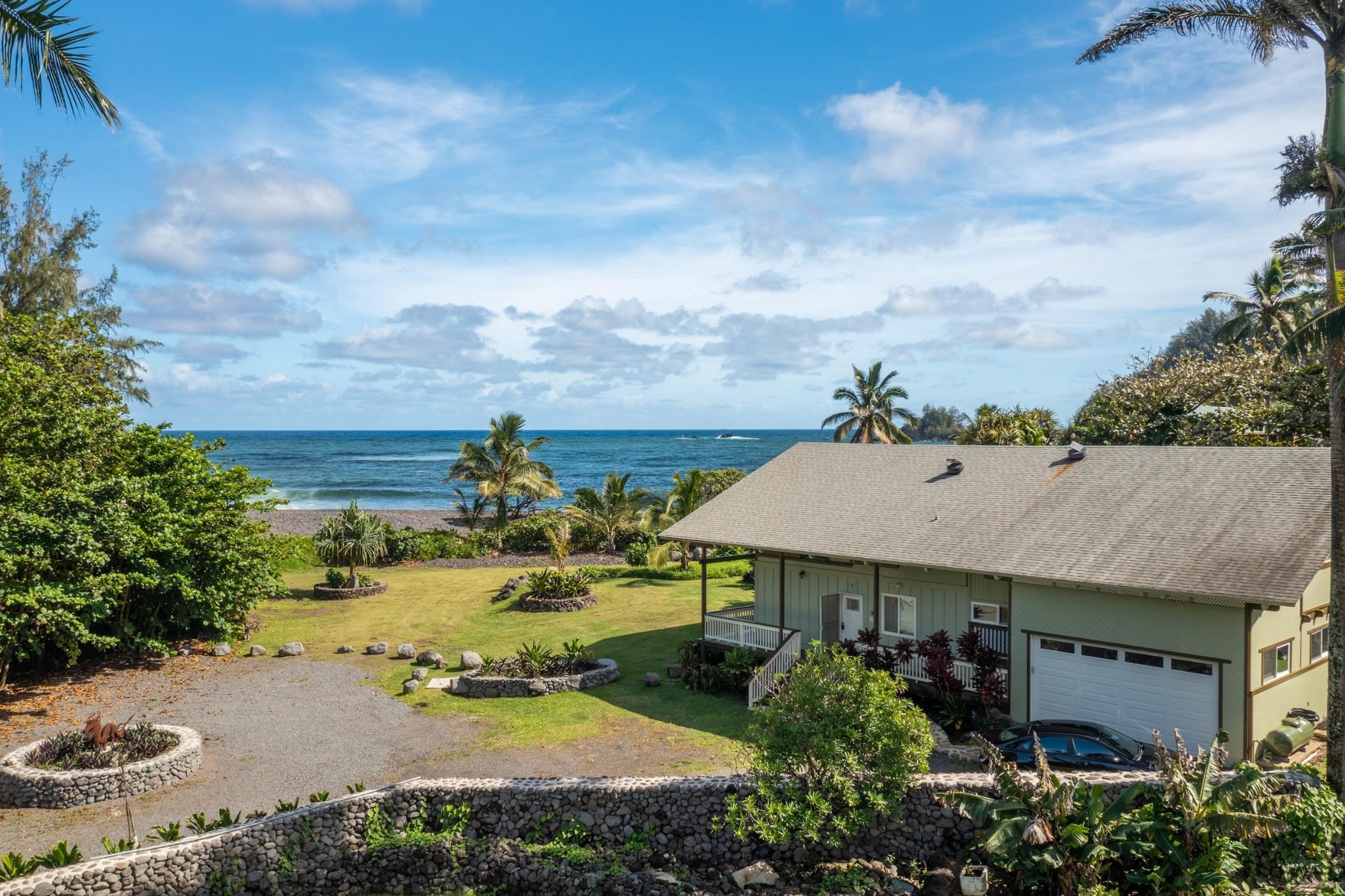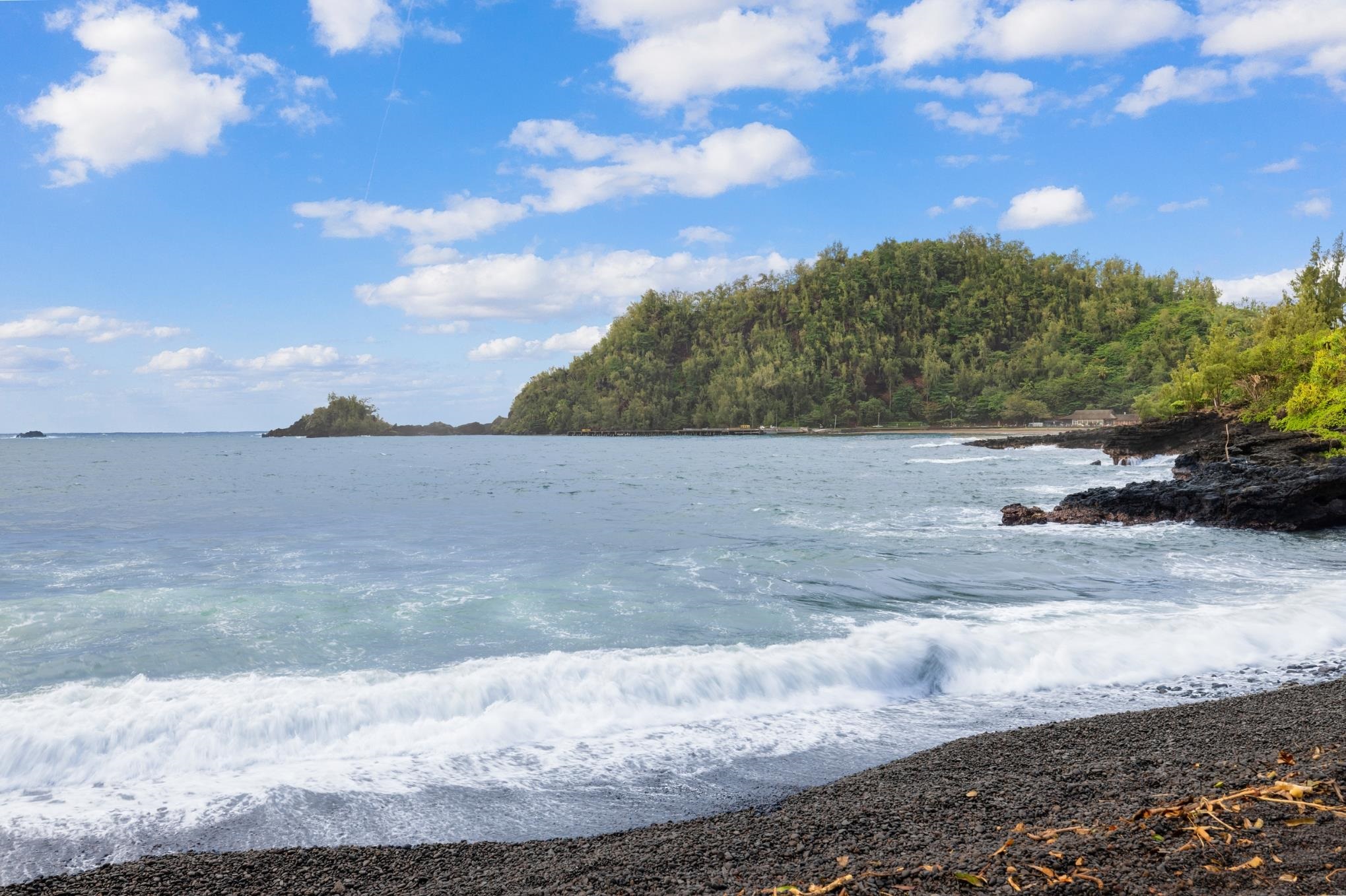 Beautiful Hana- ON THE BEACH. Walk out your front door right on to beautiful Waikoloa black sand beach. The only home for sale ON THE BEACH!!! Millions below homes on the beach in other parts of Hawaii. Here it is. Almost 3/4 acres! Hear the waves crash all day and night. This property is listed under its appraised 4/6/25 appraised value of $3,000,000! Are you interested? If you are read on.... It's pure serenity in Hana! This legacy property consists of a spacious lot. Charles Lindberg, George Harrison, Pat Benatar, Jim Nabors, Vincent Price and others have chosen Hana for its peace and beauty. This spacious remodeled home, caretaker area and workshop are a short bike ride to town! The 5 bedroom 5 bath home has high speed internet and has been lovingly remodeled. There are travertine tile floors, granite countertops, custom cabinets and stainless steel appliances and Koa accents. There is even a studio area off the garage which may be perfect for a caretaker or visitors! This property overlooks a restored Hawaiian fishpond. There is a new lava rock wall surrounding the property. The 448 square foot workshop area is plumbed and wired. The home boasts a solar array. It even has a 22k generator with a 500 gallon propane tank. Hana is the perfect escape. Live an idyllic life -- walk the bay or bike to Hana town. Appreciate the cultural significance of the heiau and fishpond. Discover why Hana is Hawaii’s best secret.