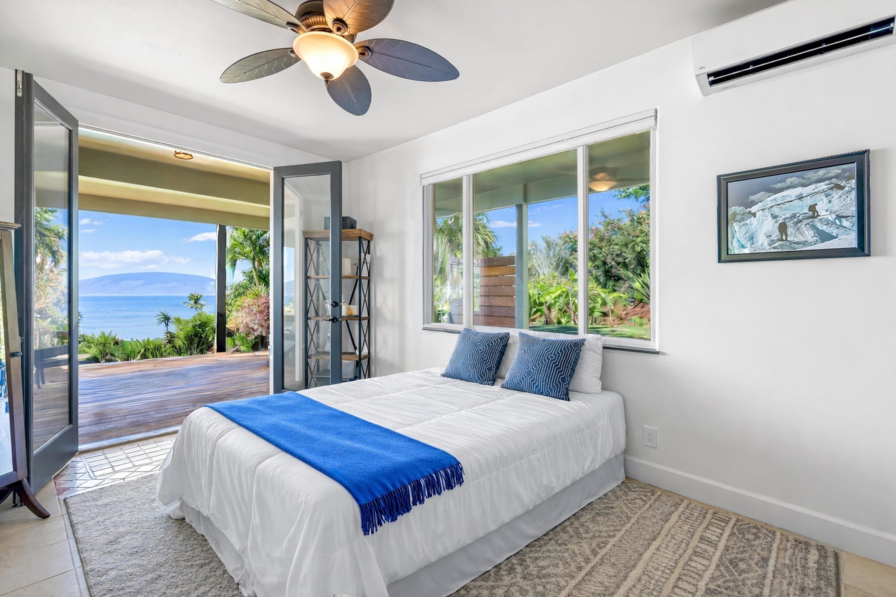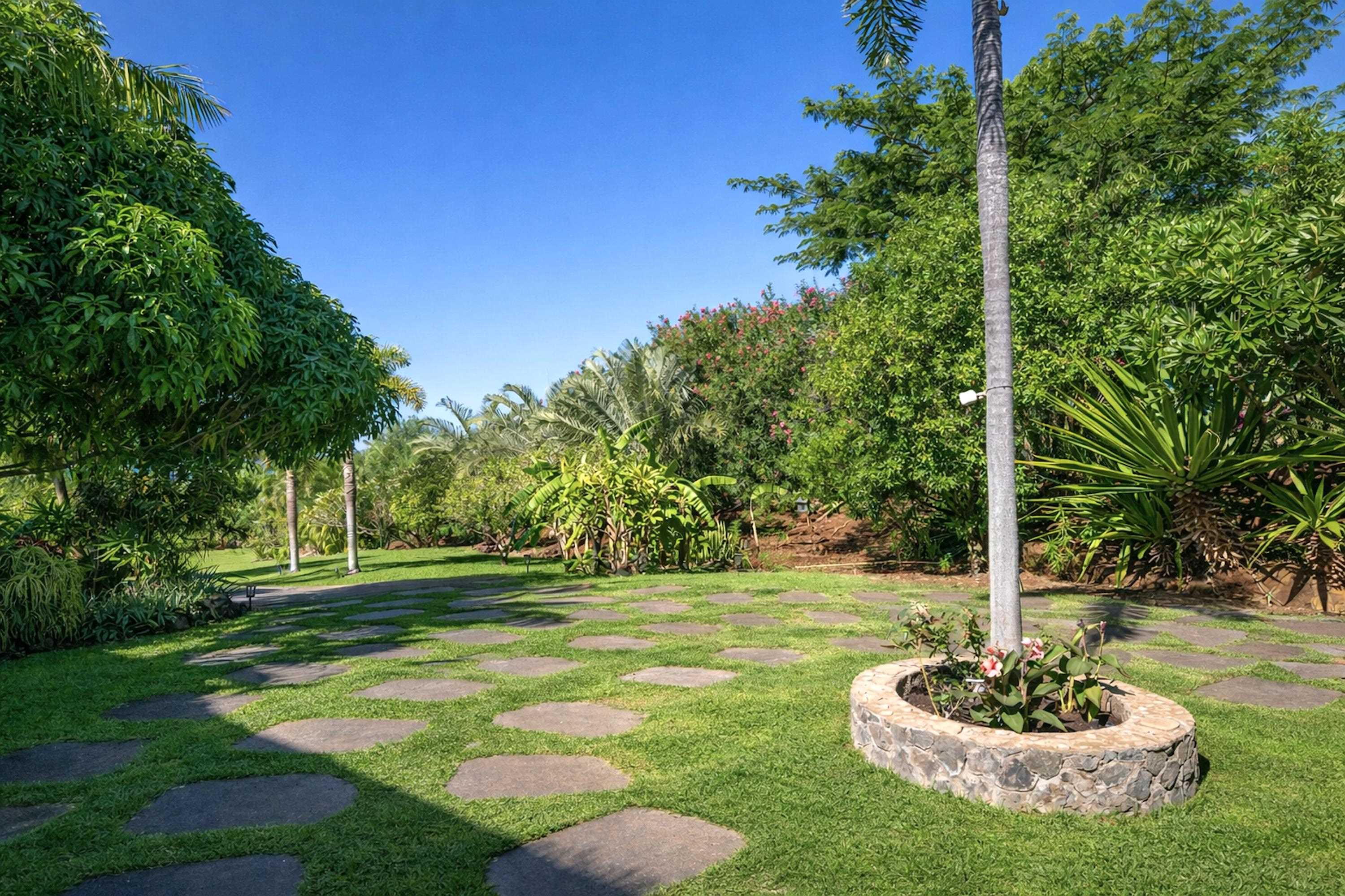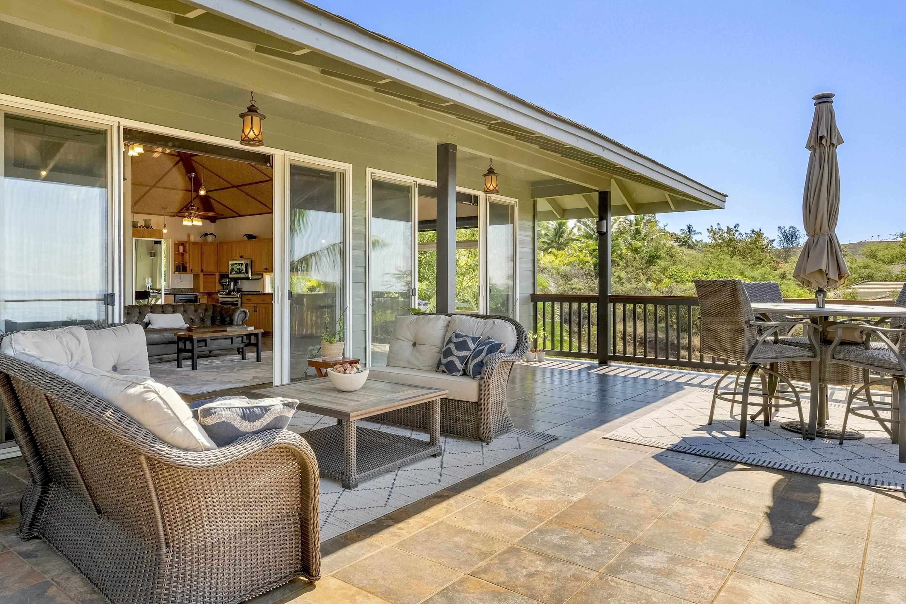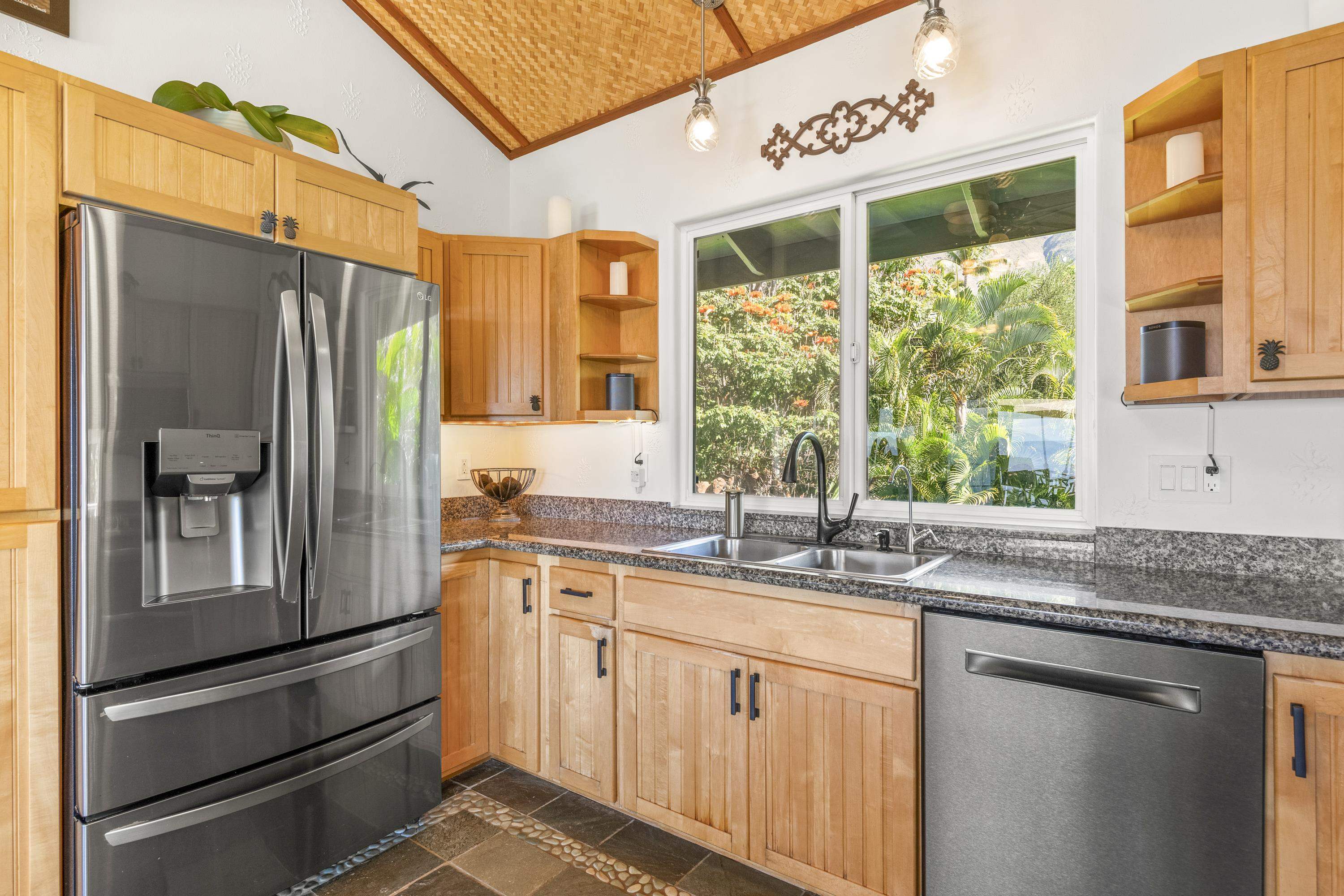Set on 1.5 acres in desirable Launiupoko, this artistic residence offers expansive ocean views from nearly every room and throughout the property, framed by the dramatic backdrop of the West Maui Mountains. Enjoy ever-changing ocean vistas, nightly sunsets, and seasonal whale activity from home. Designed for Maui’s indoor-outdoor lifestyle, the home features generous lanais on two levels. The kitchen and main living area open seamlessly to a spacious lanai, ideal for both entertaining and everyday island living. The lower-level lanai provides direct access to the infinity-edge pool and outdoor living area. The primary suite features an en-suite bathroom and opens to the lanai and pool, while the second bedroom also enjoys outdoor access and ocean views. Distinct Hawaiian design elements include stamped plaster walls, bamboo ceilings, custom cabinet hardware, and detailed stone floorwork. Additional features include split AC units in each bedroom and upstairs, whole-house water filtration, reverse osmosis drinking water, solar water heating, mature tropical landscaping with irrigation and solar lighting, an established fruit orchard, carport parking, two storage sheds with electricity, EV charging outlet, and specialty window coverings. As the designated main home within a two-unit CPR, the property may offer additional flexibility for future expansion/garage, subject to applicable approvals.