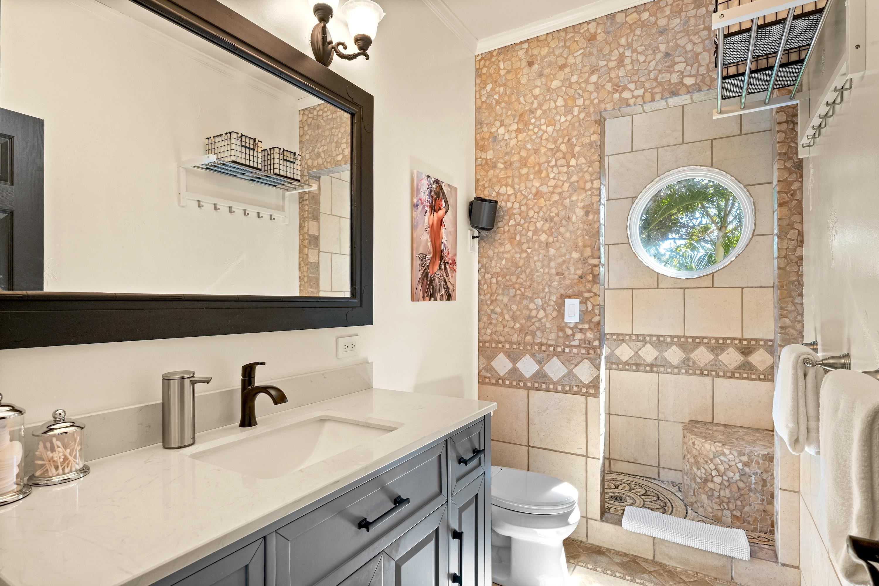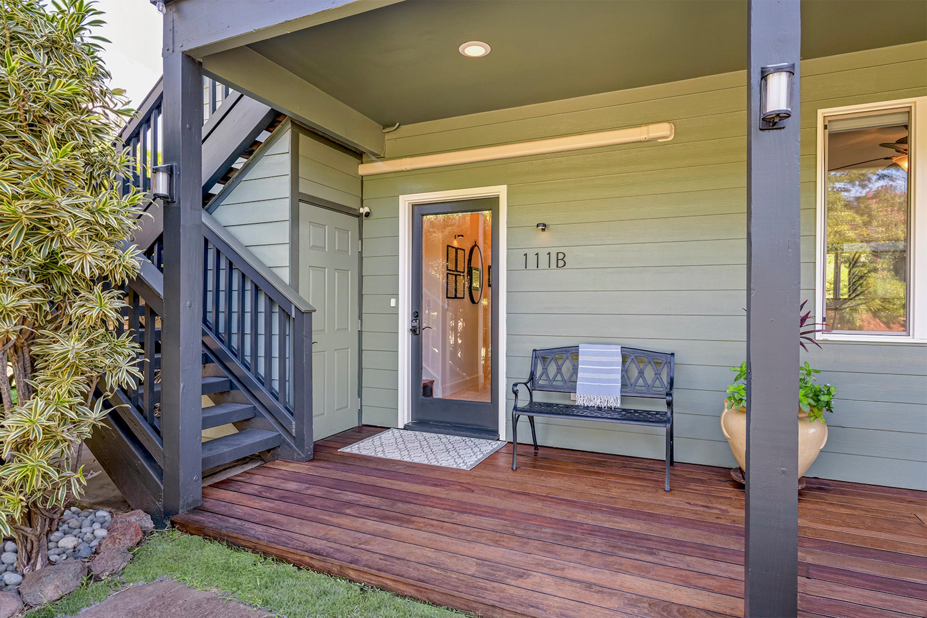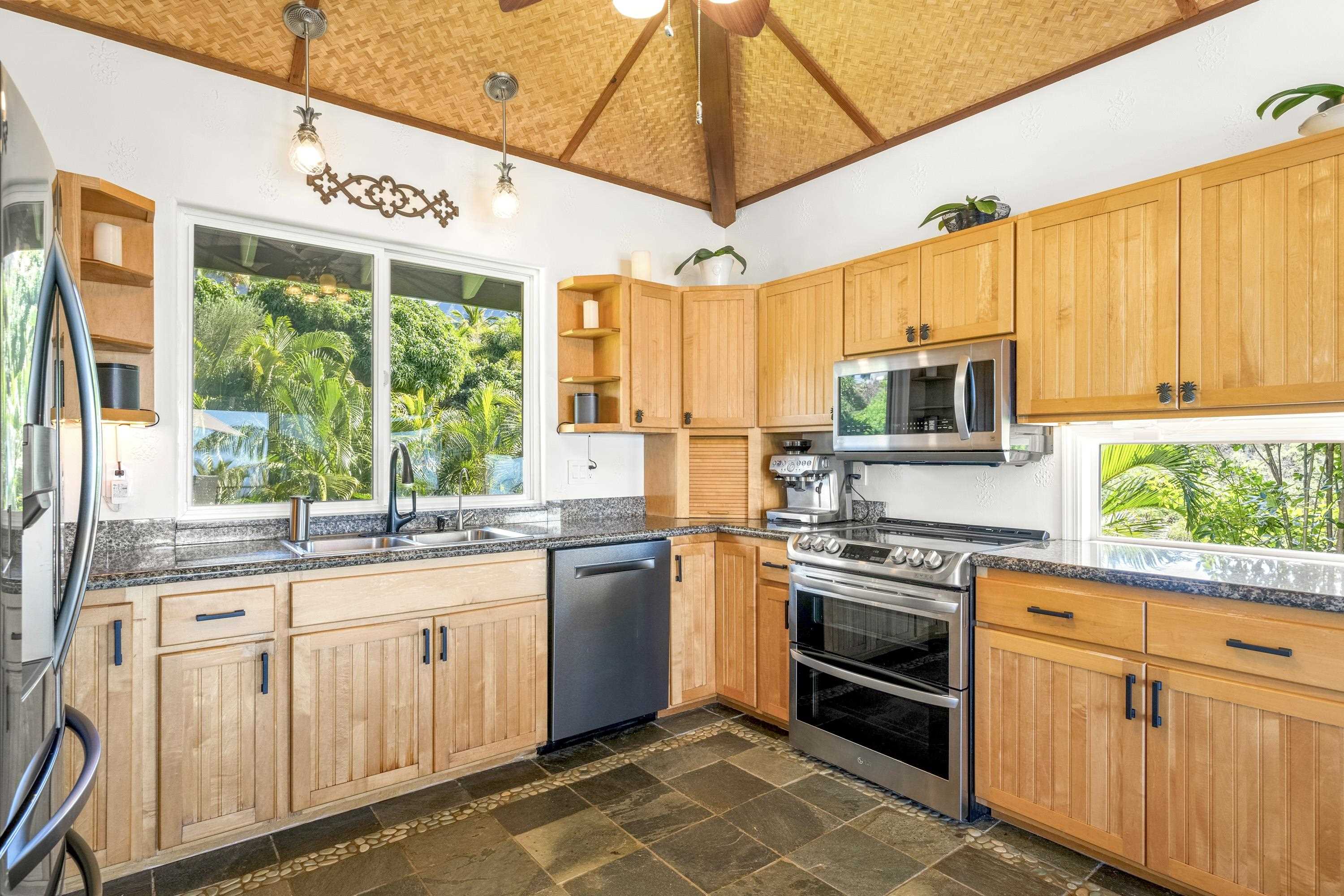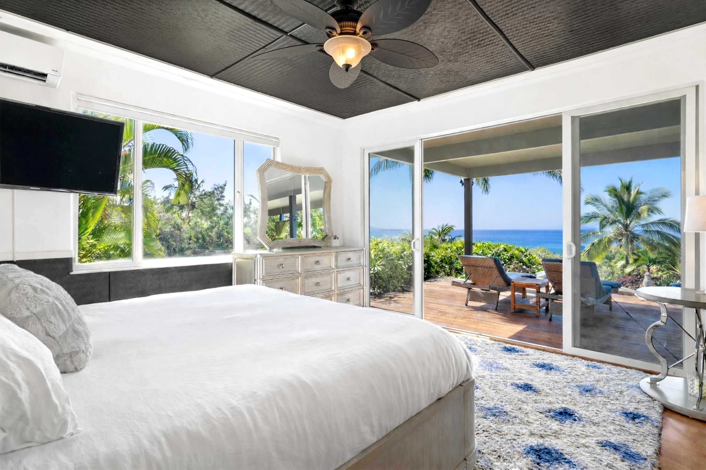 Set on 1.5 acres in desirable Launiupoko, this artistic residence offers expansive ocean views from nearly every room and throughout the property, framed by the dramatic backdrop of the West Maui Mountains. Enjoy ever-changing ocean vistas, nightly sunsets, and seasonal whale activity from home. Designed for Maui’s indoor-outdoor lifestyle, the home features generous lanais on two levels. The kitchen and main living area open seamlessly to a spacious lanai, ideal for both entertaining and everyday island living. The lower-level lanai provides direct access to the infinity-edge pool and outdoor living area. The primary suite features an en-suite bathroom and opens to the lanai and pool, while the second bedroom also enjoys outdoor access and ocean views. Distinct Hawaiian design elements include stamped plaster walls, bamboo ceilings, custom cabinet hardware, and detailed stone floorwork. Additional features include split AC units in each bedroom and upstairs, whole-house water filtration, reverse osmosis drinking water, solar water heating, mature tropical landscaping with irrigation and solar lighting, an established fruit orchard, carport parking, two storage sheds with electricity, EV charging outlet, and specialty window coverings. As the designated main home within a two-unit CPR, the property may offer additional flexibility for future expansion/garage, subject to applicable approvals.