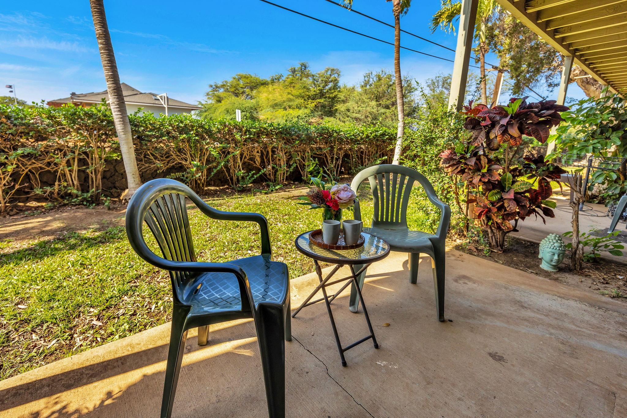 Ground floor Kihei Bay Surf studio with ocean views from the lanai, located directly across the street from Kalepolepo Beach Park. This nicely updated offering with custom tile walk in shower and updated finishes throughout presents a rare and unique opportunity to own two side-by-side ground floor units (106 also available), ideal for flexible use, extended living space, or dual rental potential. Enjoy easy access with a few stairs, a private lanai that captures ocean views, and the convenience of a central Kihei location close to beaches, dining, shopping, and outdoor activities. Kihei Bay Surf is a popular complex featuring a pool, hot tub, BBQ area, and on-site laundry, making it well suited for both personal enjoyment and investment. A distinctive opportunity in one of Kihei's most accessible beachfront neighborhoods and monthly maintenance fees INCLUDE electricity! Listed well below county assessed value. Schedule your private showing today!