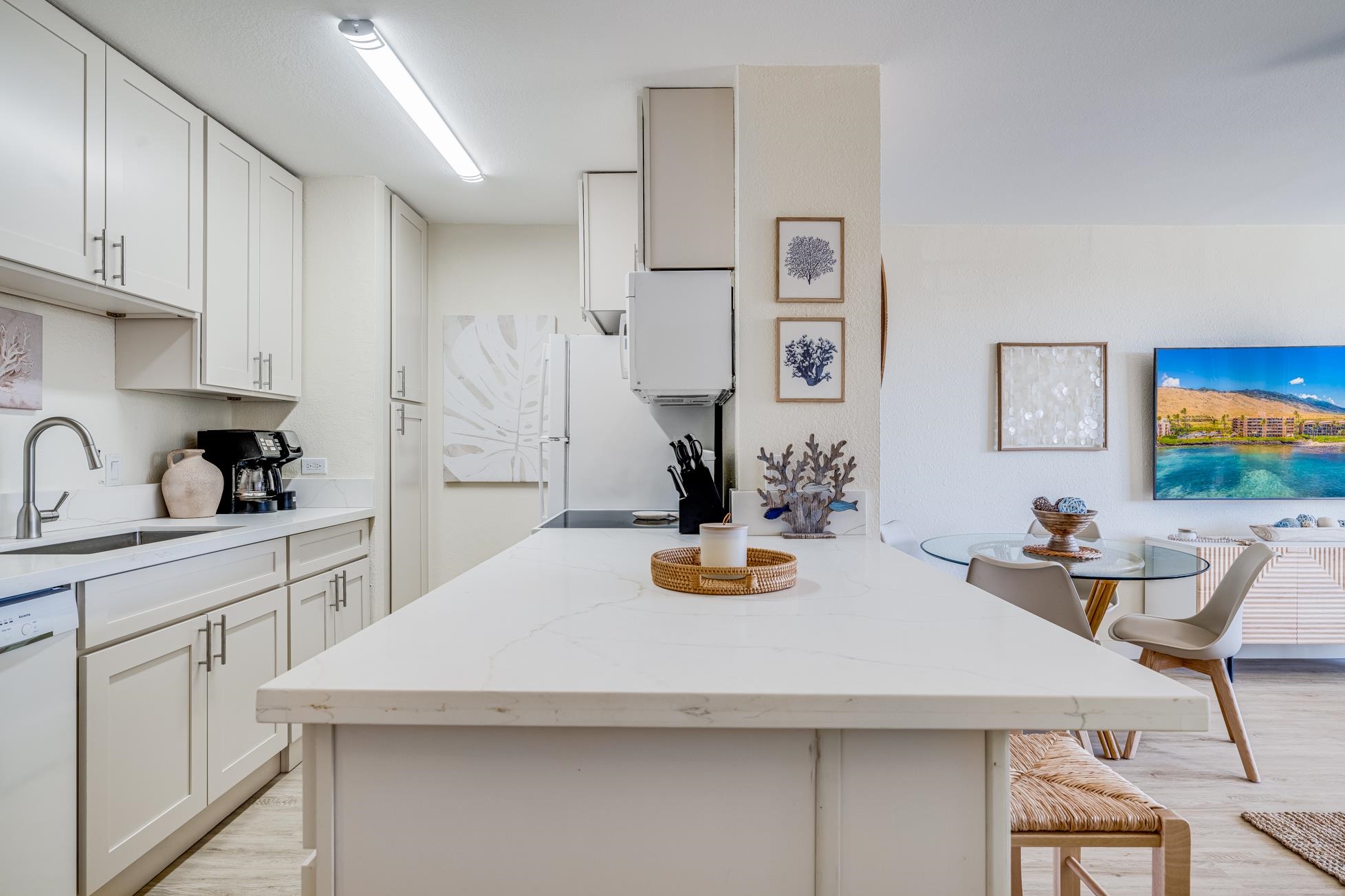 Enjoy island living in the heart of Maalaea in this beautifully renovated 2-bedroom, 2-bathroom condo with stunning ocean views. The living room, kitchen, main lanai, and primary bedroom all capture expansive views of the Pacific, with the primary suite also featuring its own private lanai. Located in a direct oceanfront complex, this property offers front-row seats to turtle activity along the shoreline and seasonal whale watching. The unit has been fully remodeled, including a brand-new kitchen and updated bathrooms, fresh interior paint, and tasteful furnishings throughout. The open and functional floor plan is complemented by air conditioning, in-unit washer and dryer, high-speed internet, and smart TVs. One assigned parking stall is included. Conveniently situated within walking distance to Maalaea Harbor, restaurants, and shops, this centrally located condo offers easy access to boating, dining, and island activities. Community amenities include an oceanfront swimming pool and BBQ area, ideal for enjoying Maui’s outdoor lifestyle.
