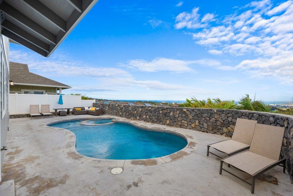 Beautiful home with in-ground pool and spa on spacious corner lot in the highly desirable Kealohilani neighborhood at Kehalani. Incredible views of the North Shore, Haleakala, and West Maui mountains from all throughout the house and pool area. 5 split system A/C units keep the entire 3 bedroom, 2.5 bathroom home comfortable. The photovoltaic system helps keep things affordable. This only seven year old home, just had the exterior professionally painted. Stamped cement walkway and pool deck, over 100' of tight joint rock wall, Privacy fence, and gates create an ideal outdoor sanctuary. Conveniently located, near shopping, hospital, airport, Iao Valley, golf, and ocean activities. Please check out the video link above.