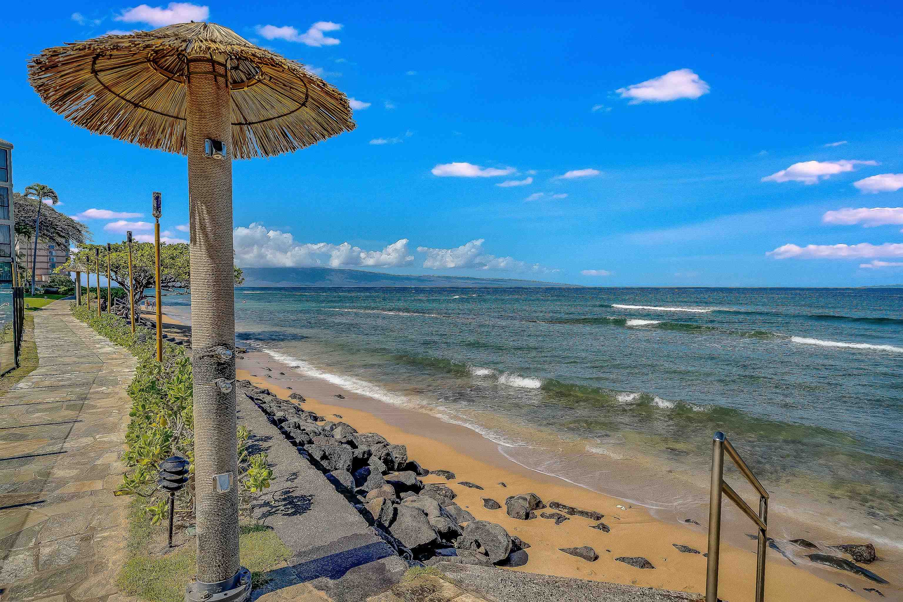 Discover the pinnacle of West Maui living in this stunning one-bedroom beach-inspired penthouse unit at Ka’anapali Shores…a premier oceanfront condominium complex resort. Unit 905 has been thoughtfully upgraded and decorated with a captivating island vibe. It sits on the top floor, it offers breathtaking ocean views from the living room, kitchen, bedroom and private lanai. Savor fresh ocean breezes on your secluded lanai while taking in gorgeous panoramic vistas, including seasonal whale watching. This hotel-zoned resort boasts an array of amenities, such as two pools, hot tubs, a beachfront restaurant and bar, and on-site activities including tennis and pickleball, a salon, shops and fitness center. Maintenance fees cover electricity (including central air conditioning), common insurance, water, sewer, refuse, WiFi and cable television access as well as the expenses related to common areas and capital reserve funds. This is a leasehold unit being sold furnished, with a couple of artwork pieces excluded.