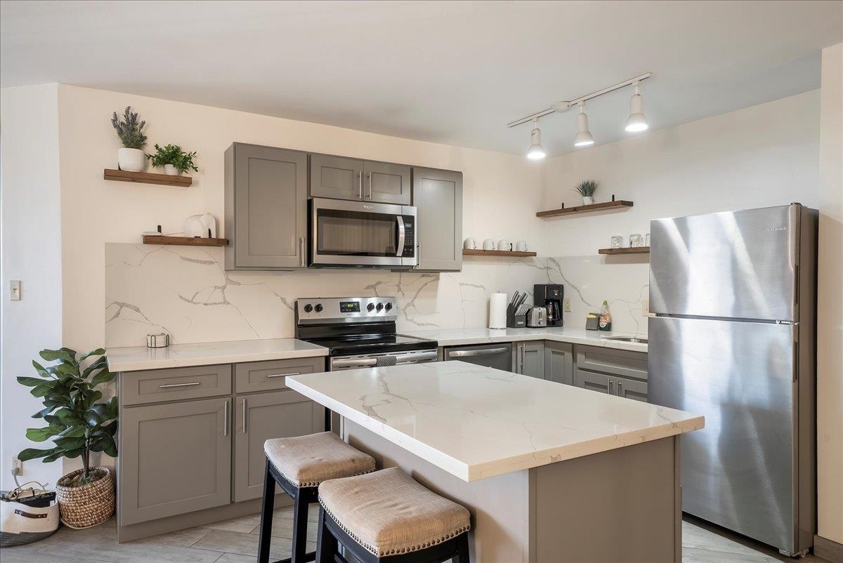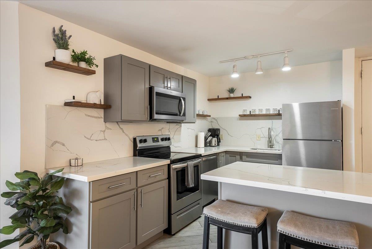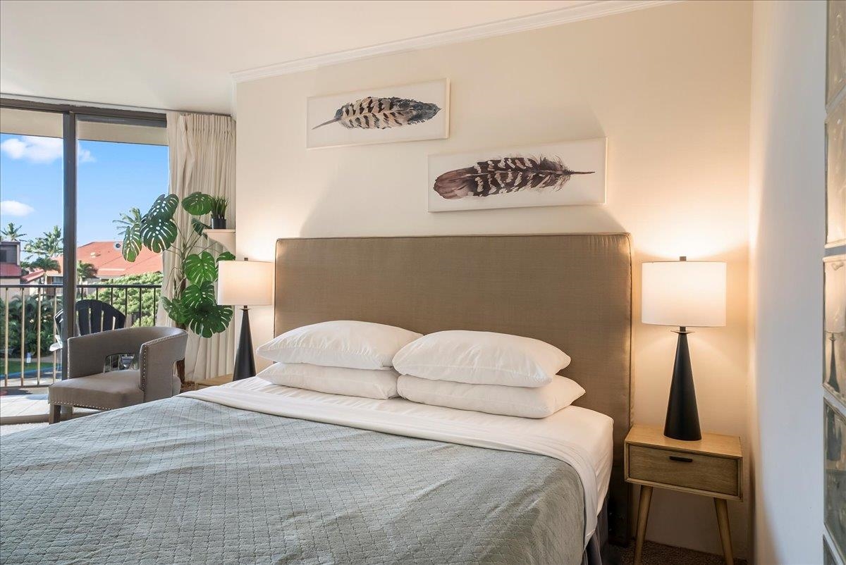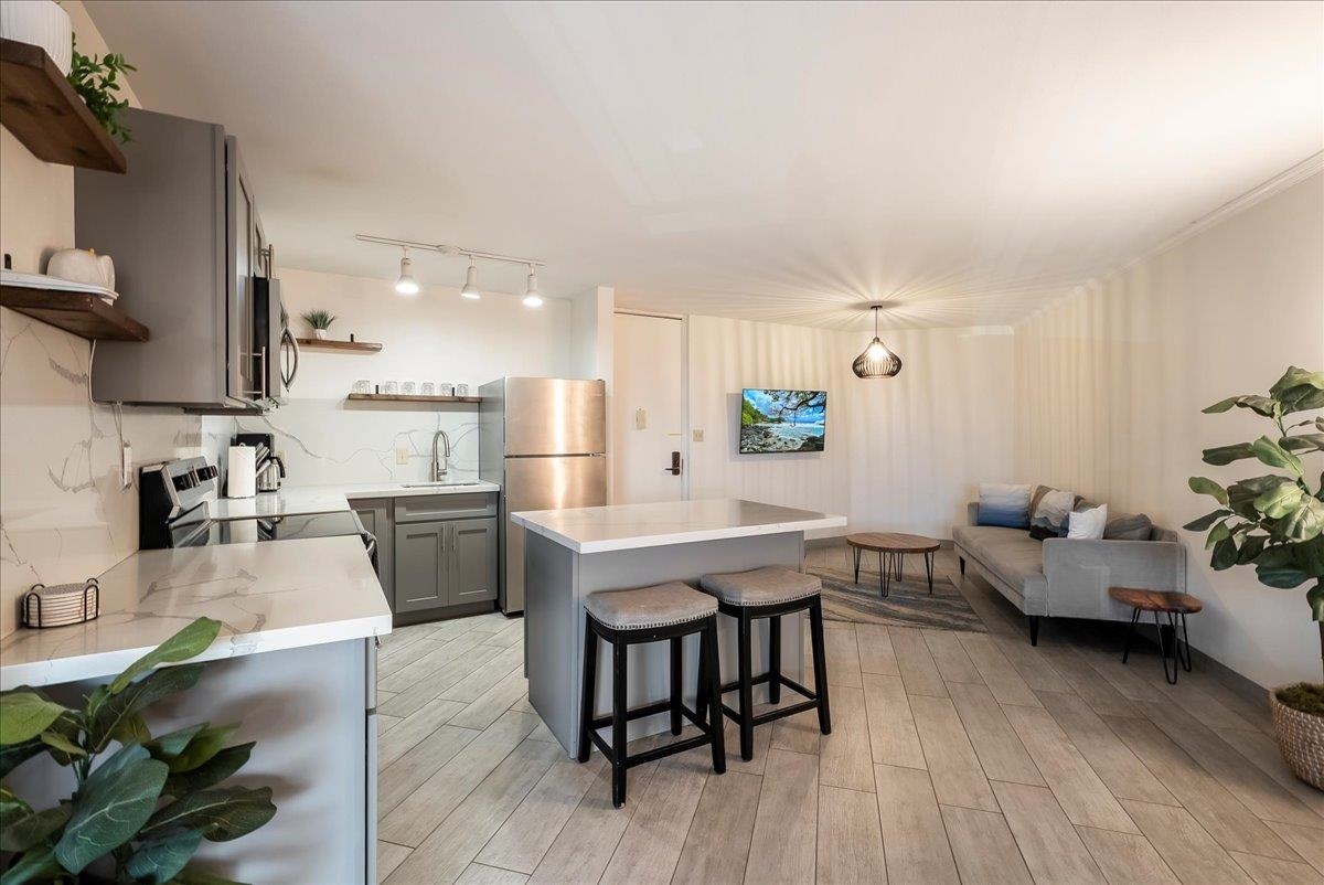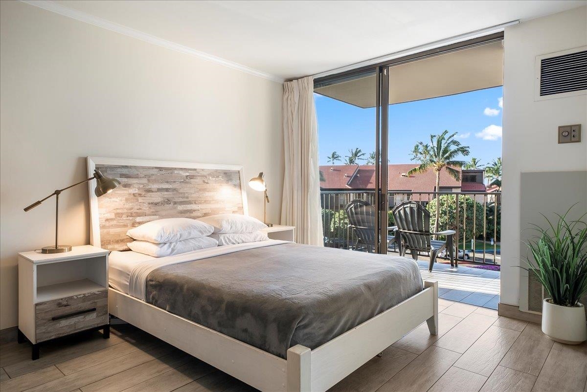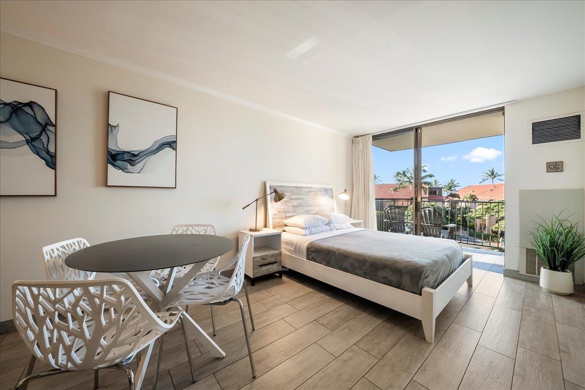 Luxurious Ocean View turnkey vacation rental condominium. The private lanai offers incredible ocean and sunset views and is ideally situated for wintertime whale watching. The upgraded modern kitchen includes sleek cabinetry, modern countertops, and stainless steel appliances. The contemporary tile floors and a walk-in tile shower complement the complex’s resort style amenities, which include an ocean side pool and spa, spacious BBQ area, shuffleboard, and putting green. There are eight public pickleball courts a few properties away. The open concept living and dining area flows seamlessly onto a private lanai, creating the perfect indoor-outdoor setting to relax, dine, whale watch, and enjoy the ocean breeze. The flexible floor plan allows for a second bed and sleeping area with plenty of room for a dining area and family space. The central air conditioning system keeps this spacious unit cool and comfortable. This updated modern unit comes fully stocked and furnished or unfurnished for the buyer’s convenience Kauhale Makai is a well-maintained oceanfront complex featuring resort-style amenities such as a beachfront pool, hot tub, barbecue area, putting green, guest check in desk, and direct access to a sandy beach ideal for morning walks and whale watching. Conveniently located near shopping, dining, and outdoor activities, this property places you at the heart of Maui’s vibrant lifestyle.