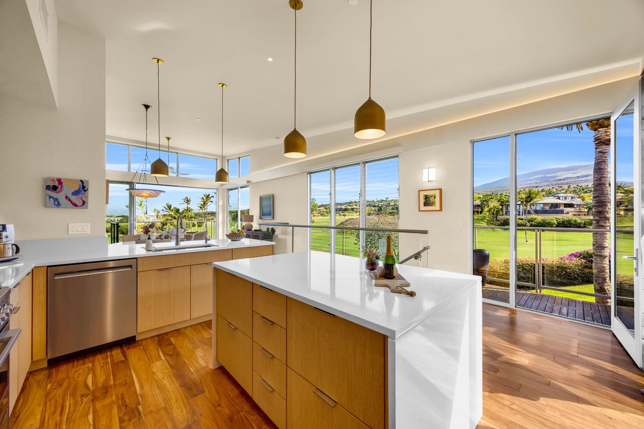 Welcome to Makalii 7D, located in one of Wailea newest developments where mid-century modern design meets contemporary coastal living in the sweet spot of the famed Wailea Resort. This small gated enclave of just 68 private residences perched on the hill just above the Fairmont Kealani and Polo beach yields all the benefits of resort living in a relaxed, private setting. You will enjoy immediate proximity to all of the top amenities Wailea has to offer such as the Shops at Wailea, three world class championship style golf courses and a multitude of top dining, resort and shopping options. Villa 7D is a unique offering where maximum privacy is the theme in this end āDā floor plan villa with with two car garage and a spacious 3/3 floor plan that feels like much like a residence in the only north facing cluster in the development. This positioning maximizes the 13 ft tall ceilings and glass wall design that yields unrivaled Haleakala and Wailea Blue golf course views perched above hole #16. Most importantly there is plenty of mid-day and afternoon shade which allows the outdoor spaces to be highly useable and comfortable year-round. Additionally, there is only green space neighboring this Villa on the entry side which creates a tremendous amount of privacy and great natural light throughout the day. Sold fully furnished and turn key, this thoughtfully equipped villa has custom acacia flooring throughout which really enhances this incredible space. Onsite amenities are sure to impress with a 75ā ft curved infinity pool boasting spectacular views, clubhouse, gym, spa, sauna, steam room, BBQ area and kitchen. Schedule your private showing today to see this quintessential Wailea lifestyle property!