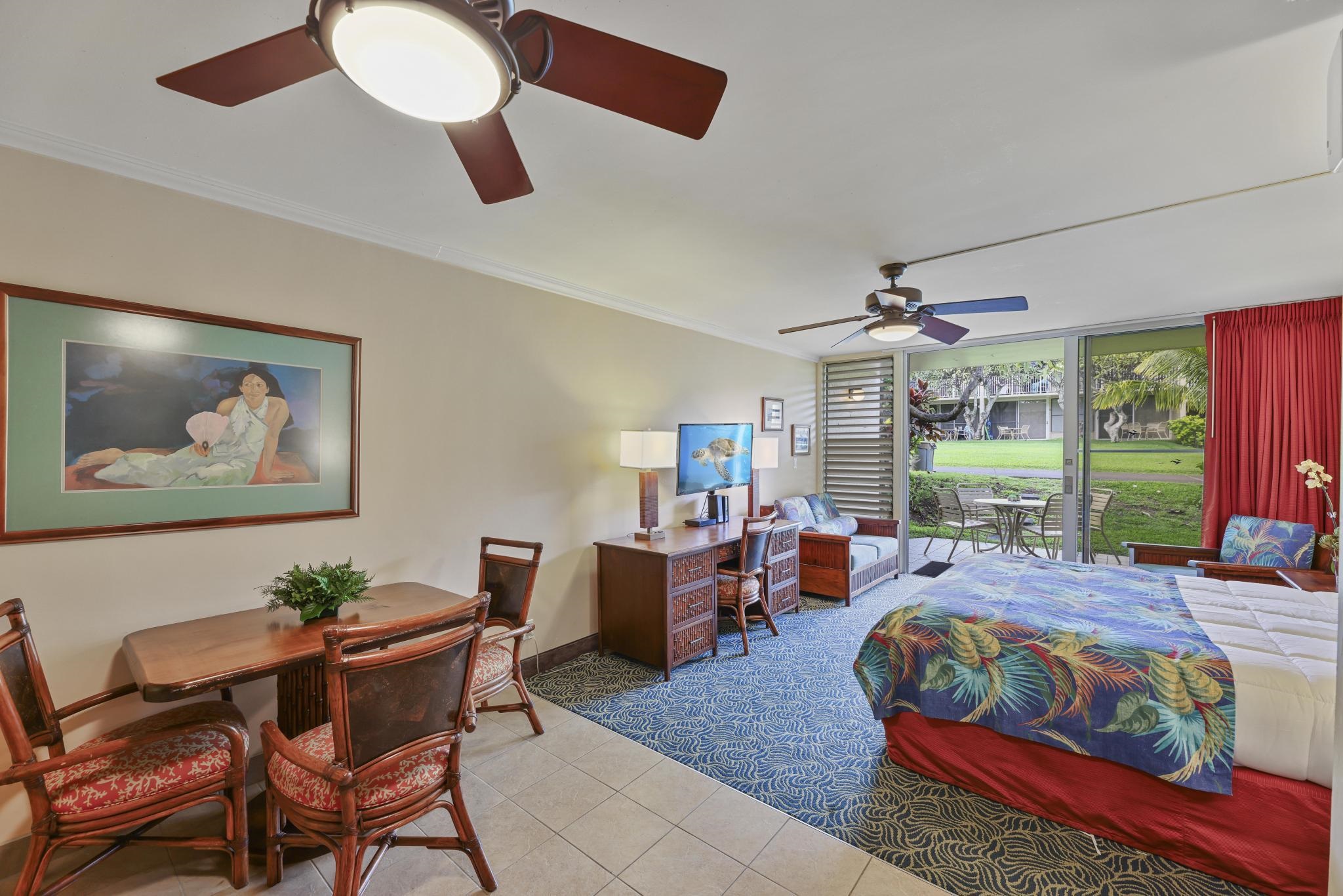 Located on world-renowned Napili Bay, Napili Shores remains one of West Maui's most desirable and enduring oceanfront destinations for both owners and guests. The resort's mature landscaping, classic lava-rock design, and direct beach access continue to attract repeat visitors year after year. Napili Shores C122 is a ground-floor studio centrally positioned within the resort, offering excellent accessibility and strong rental appeal. Guests enjoy immediate access to two pools, on-site dining at the Gazebo Restaurant and Kitchen 5315 Tiki Bar, and a direct pathway to Napili Bay. The unit features granite countertops, wood cabinetry, split A/C, and has been well maintained. Currently operating in a self-managed rental program, C122 benefits from a southern exposure, delivering consistent natural light and a desirable lanai setting-key factors for guest satisfaction and repeat bookings.