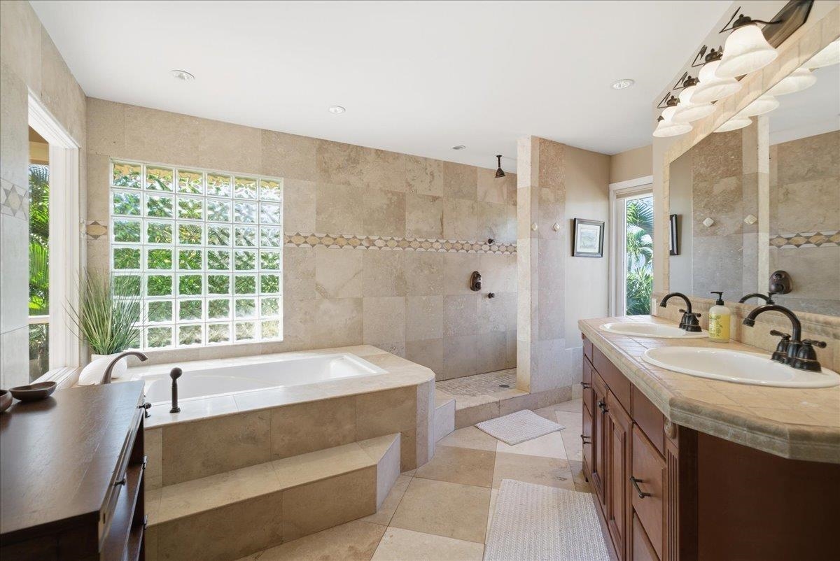 Wonderful Wailea home! This exceptional floor plan features two large master suites: one with a beautiful ocean view lanai and the other with a private office space and large storage closet. This great home also features a bright and airy main floor office and a the third bedroom. On the main level you will find an open spacious renovated kitchen with a great room concept with the living and dining room. opening up to the spacious hot tub & pool deck area and offers exceptional privacy Wailea Kialoa is a beautiful gated community that is close to the best beaches and great shopping.