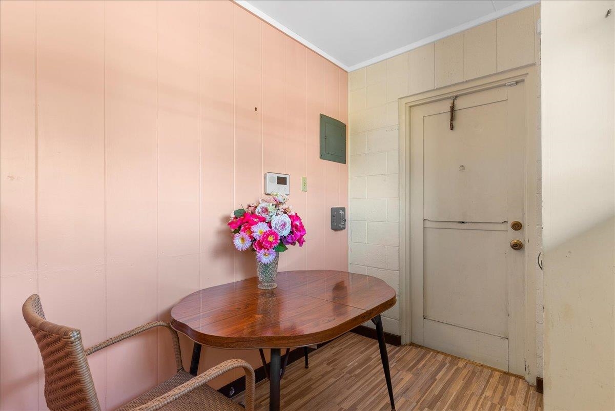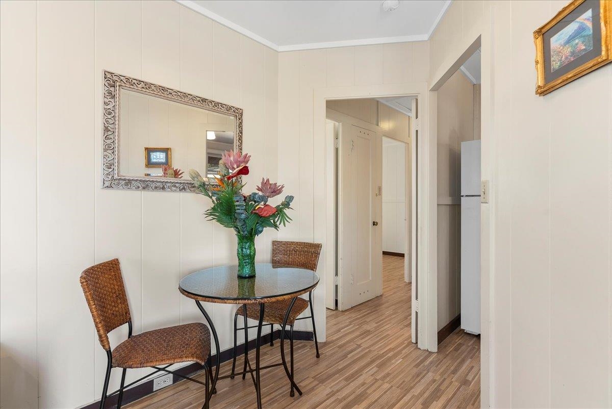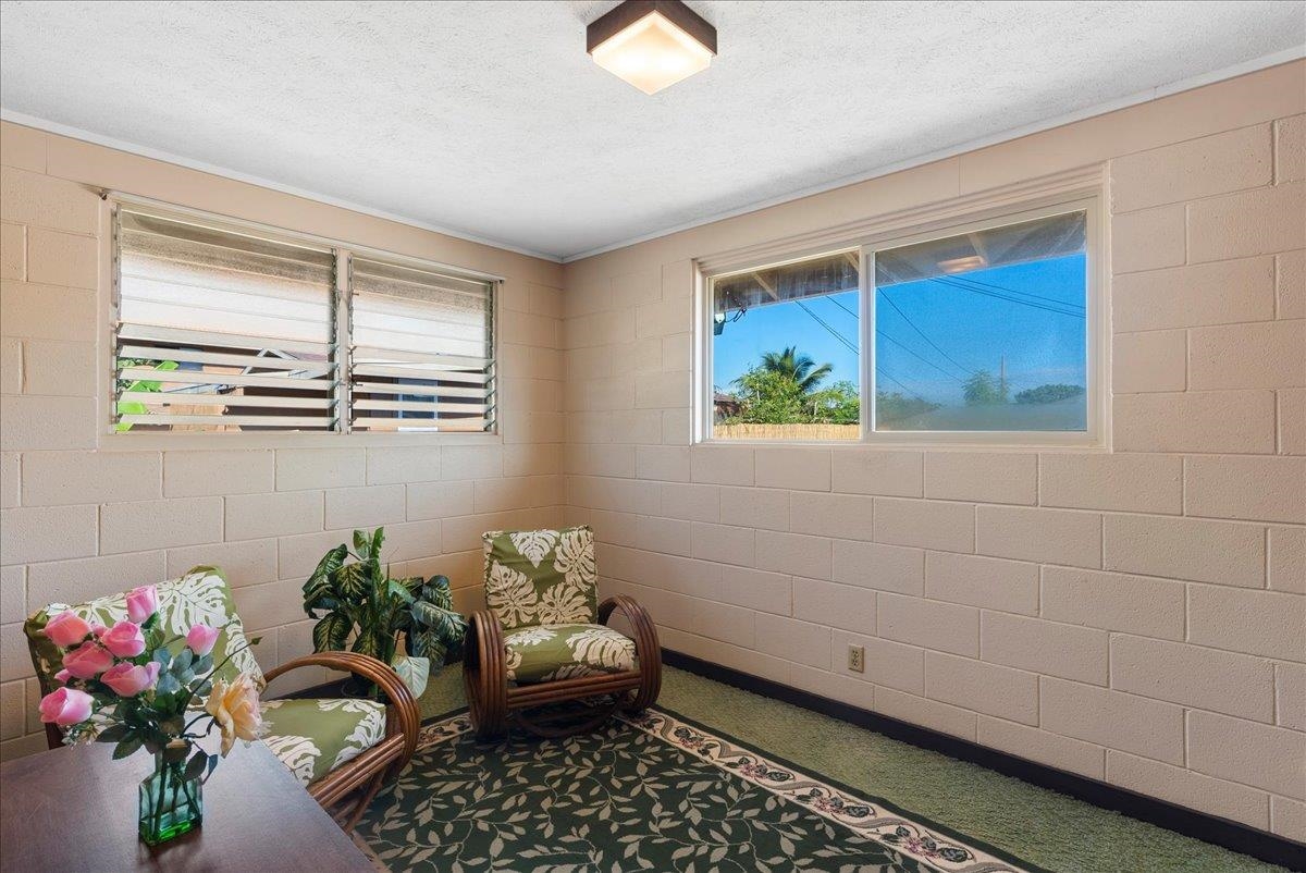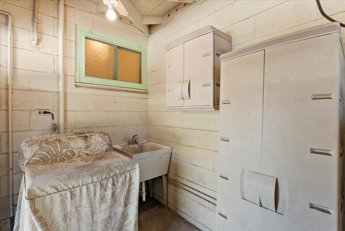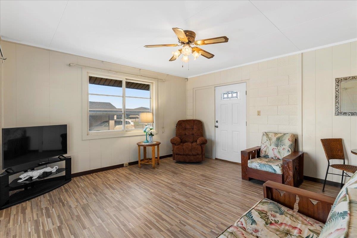 In a sought after location, in the heart of Kahului town is a property consisting of approximately 11,442 sq. ft. of land together with all improvements including 877 sq. ft. 3 bedroom, 1 bath main home with new laminate floor throughout the home except for the primary bedroom, which is newly carpeted. Main home includes a 405 sq.ft. attached single carport. A cozy, air conditioned 500 sq. ft. Ohana has its own private driveway and an attached 200 sq. ft. single carport. The interior walls of the Ohana is made of redwood along with redwood laminate cabinets in the kitchen. A detached 600 sq. ft. building includes a 380 sq. ft. 2 car garage and behind the sliding double doors is a 220 sq. ft. machinist's/mechanic's workshop fitted with a heavy duty (1 ton) overhead chain tackle (mechanical lifting device). The building can also be converted into an Ohana. The main home and cottage is partly furnished. NO HOA! A diamond in the rough, possibilities are endless for this property - so much potential! Conveniently located near schools, parks, shopping centers, restaurants, grocery stores, hardware stores, auto parts stores, and banks. Property sold in "AS IS" condition. Loan Pre-qualification Letter required with all offers. Property is viewed by appointments only. Please do not enter property without Listing Agent. Buyers and Buyers' Agent are encouraged to perform their own due diligence.