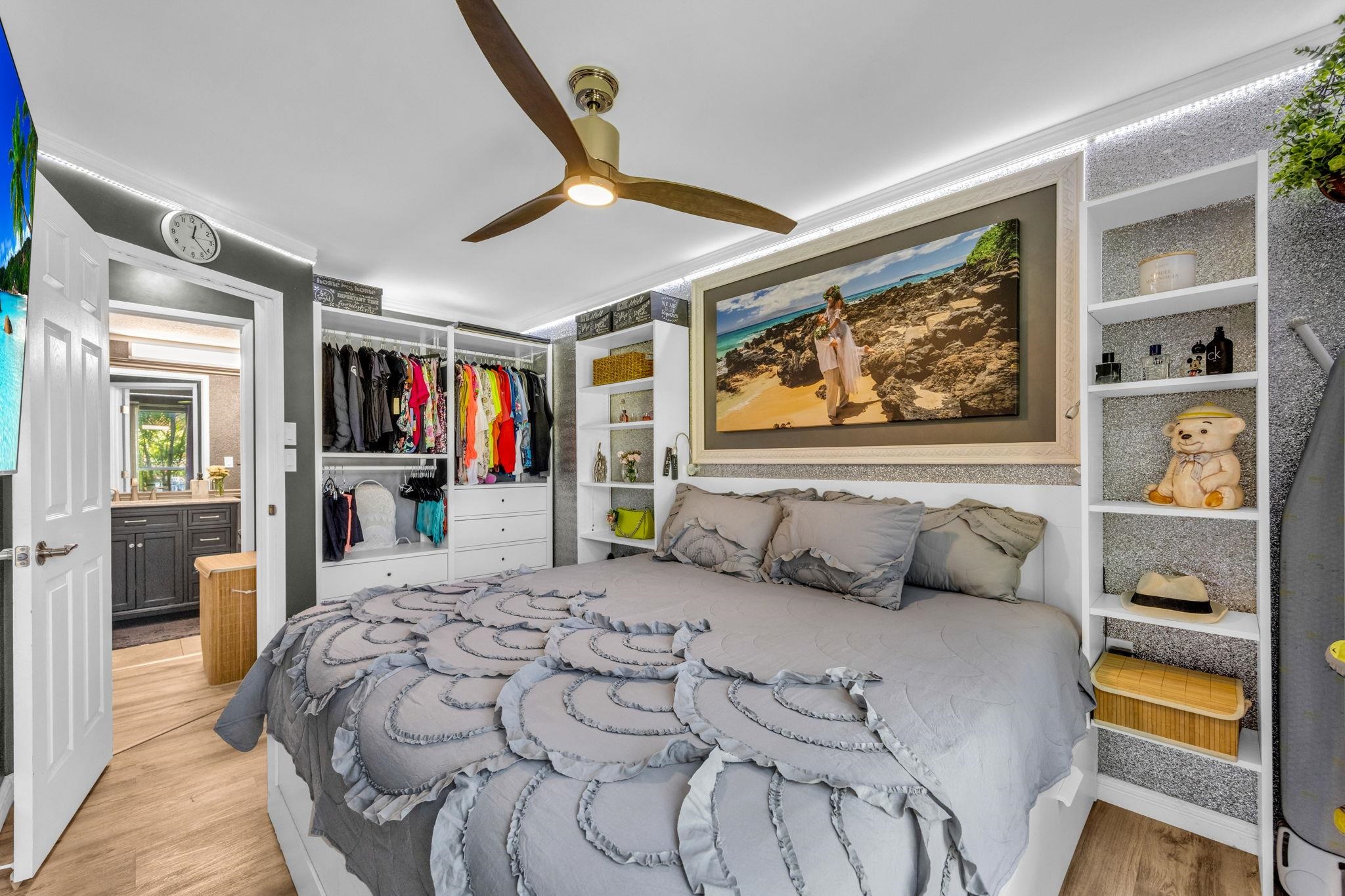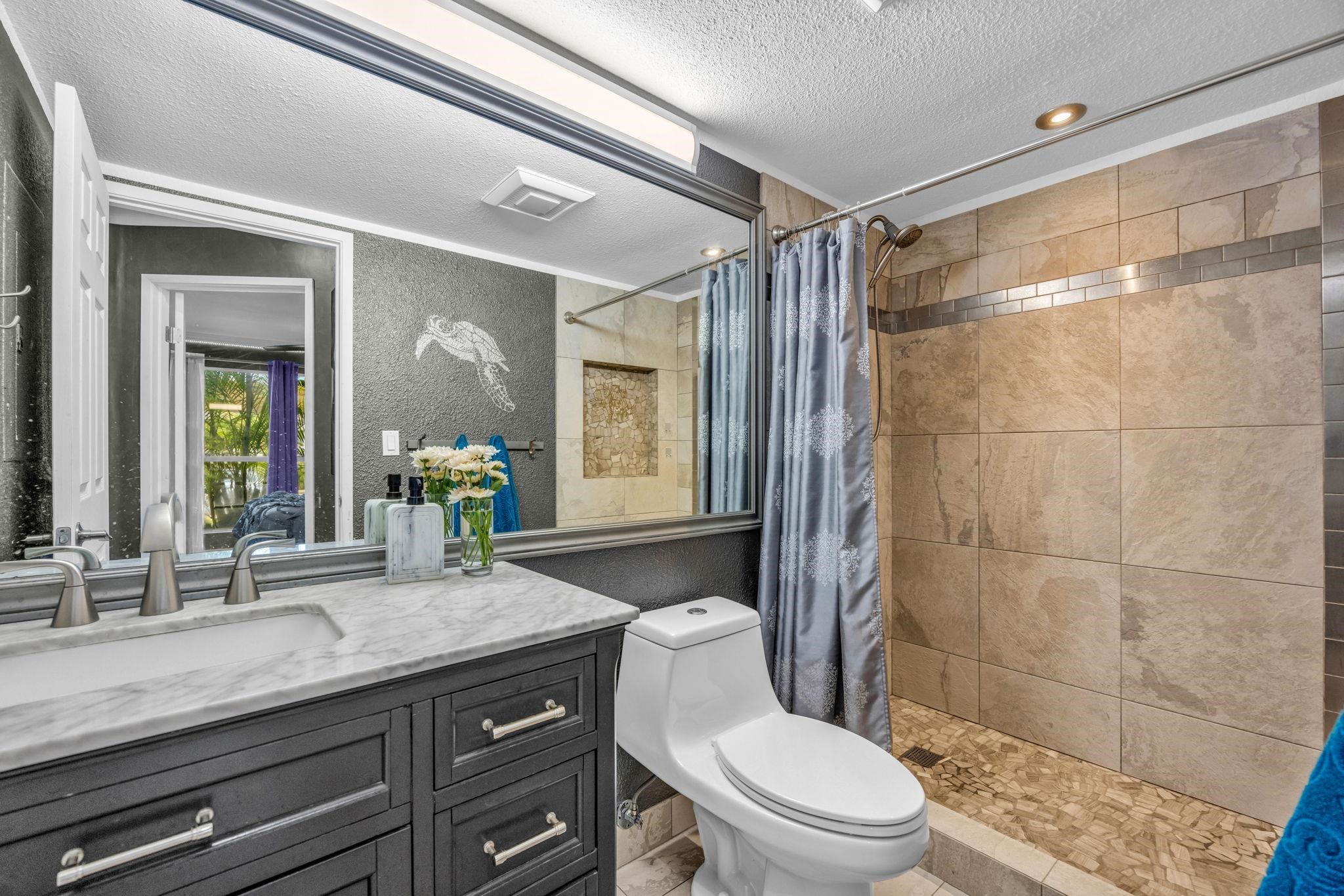 Welcome to Keonekai Villages Unit 13-102, a beautifully updated ground-floor condo just one block from Kamaole Beach Parks II and III. This sought-after South Maui location offers easy access to the beach, dining, and shopping, all while being part of a residential condo community. Please note that vacation rentals are not permitted. This 2BR/1BA unit has been thoughtfully renovated from top to bottom. The kitchen has been fully opened up, creating generous countertop space and a seamless connection to the living area, perfect for everyday living and entertaining. Features include granite countertops, white shaker cabinetry, a stone backsplash, and the rare addition of an in-unit washer and dryer, a standout upgrade for this floor plan. Luxury vinyl plank flooring flows throughout the living space and bedrooms, while higher-end wallpaper adds texture and character and custom lighting helps illuminate the space and set the perfect mood. The primary bedroom includes custom built-in shelving and closets for smart, stylish storage. The bathroom has been tastefully updated with tile flooring, a walk-in shower, and a stone-top vanity. Enjoy the ease of ground-floor living with no stairs, a pet-friendly complex, and two tandem parking spaces. The unit can be sold furnished, making this a truly move-in-ready opportunity. This is an ideal home base for those looking to enjoy everything South Maui has to offer, from beach life to everyday convenience.
